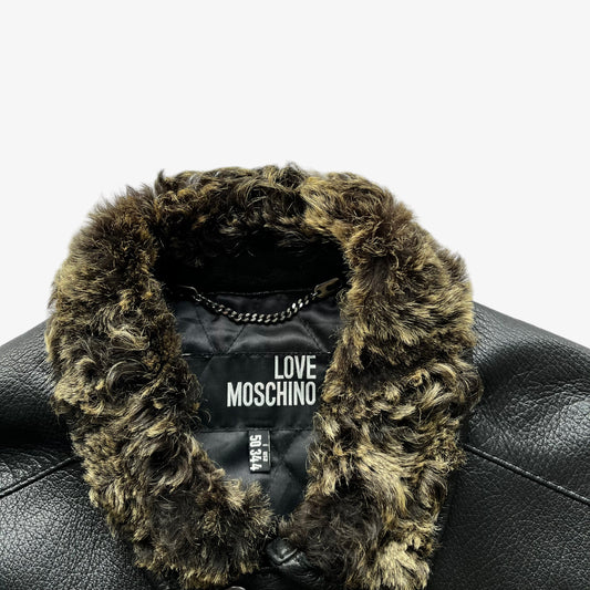Women's Love Moschino Leather Jacket With Rabbit Fur Collar