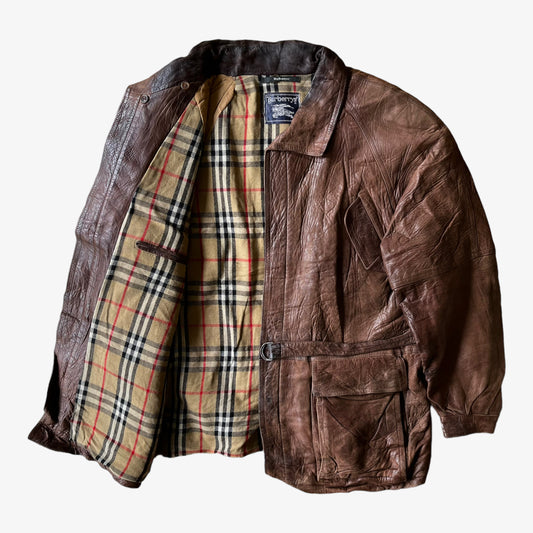 Burberry Leather Utility Jacket With Nova Check Wool Blend Lining