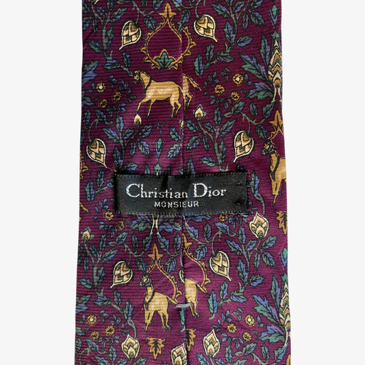 Christian Dior Horse And Floral Print Silk Tie