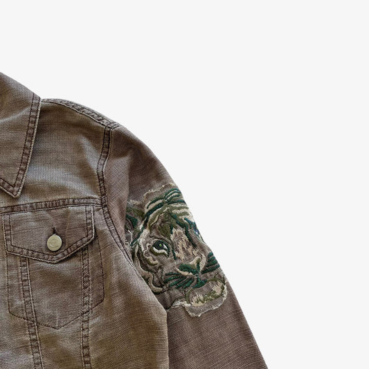 Women's Just Cavalli Denim Jacket With Embroidered Sleeve Lion Face