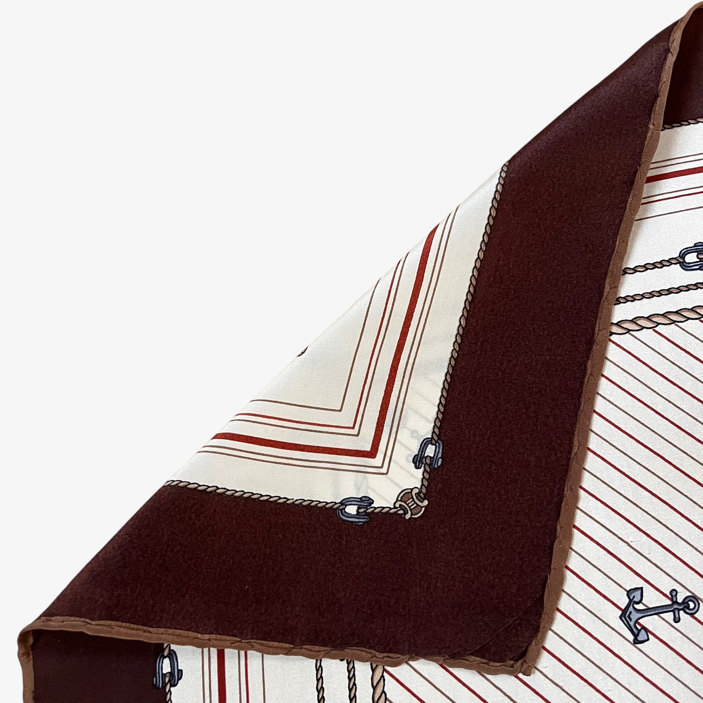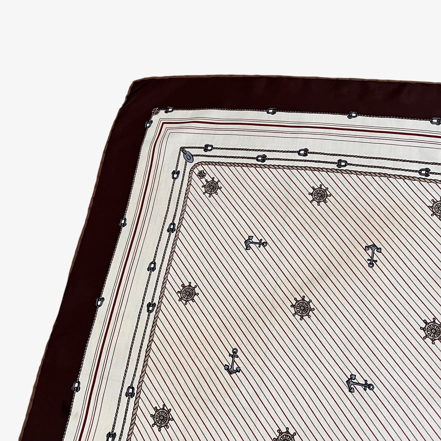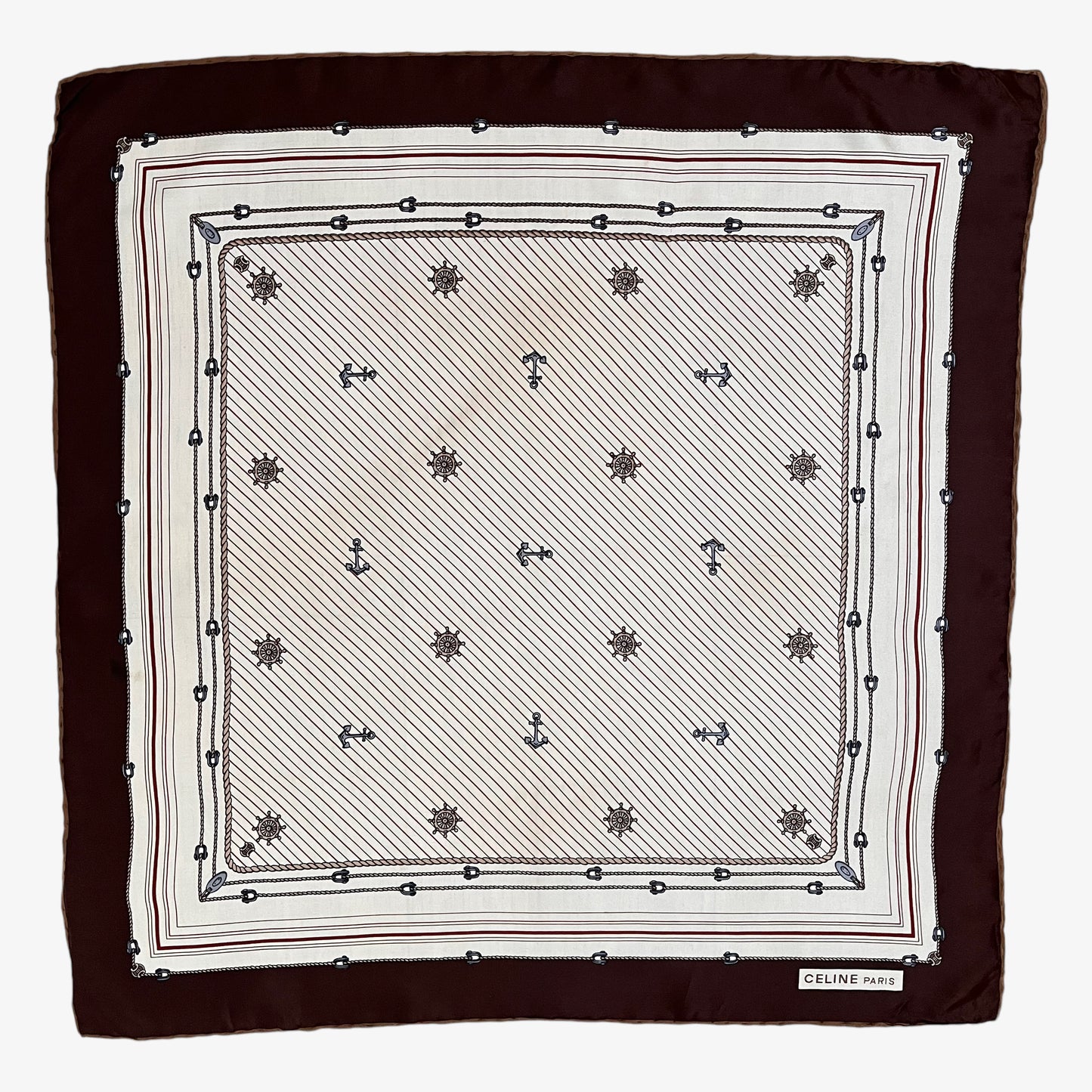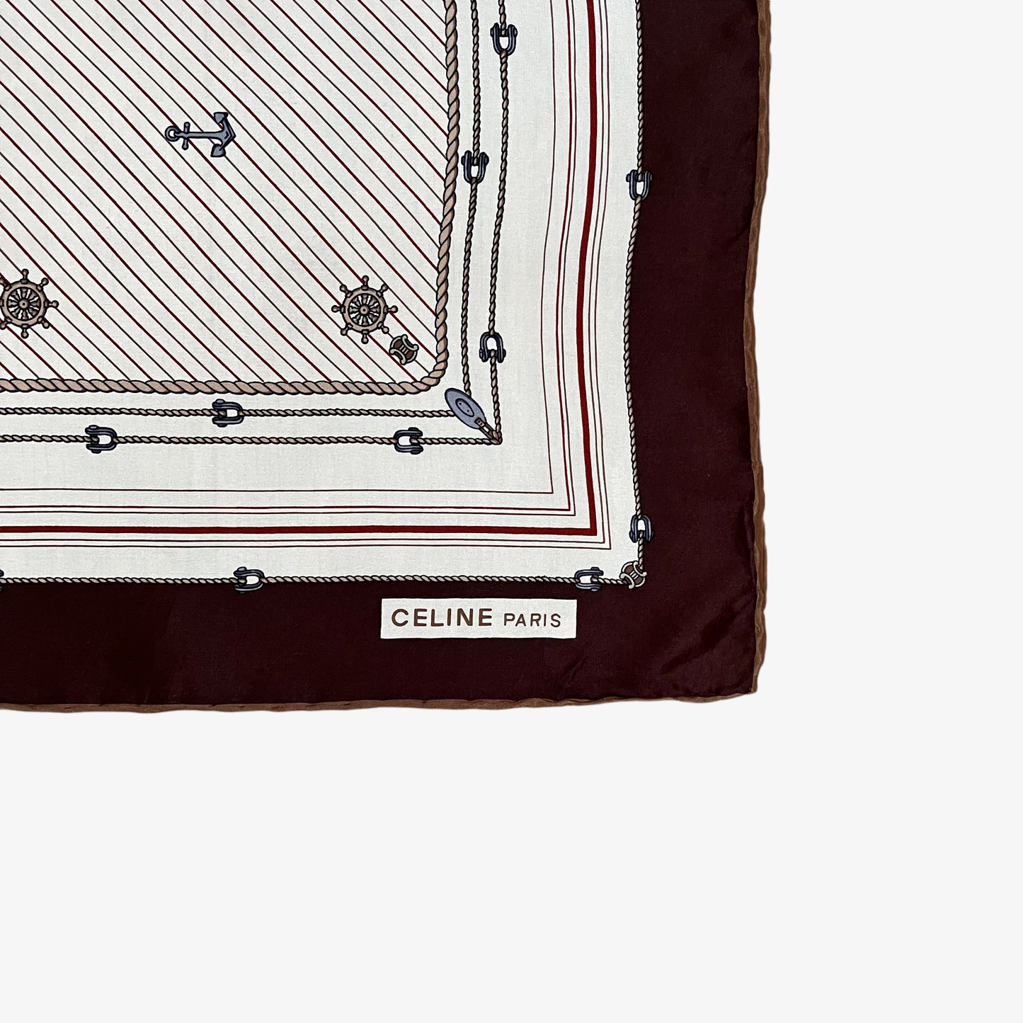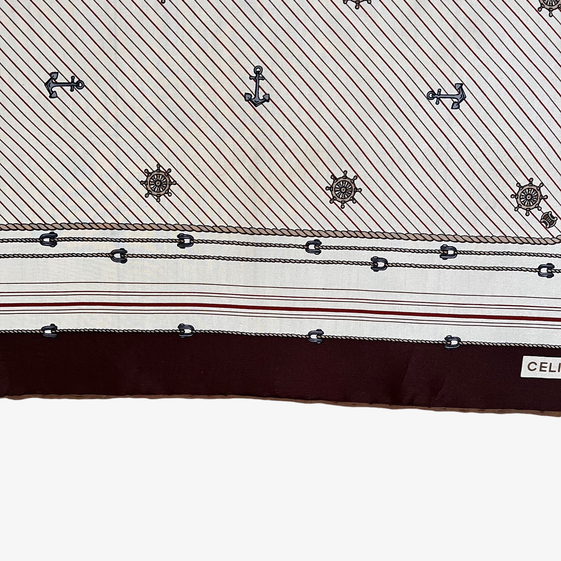 Vintage 80s Celine Paris Nautical Print Silk Scarf.