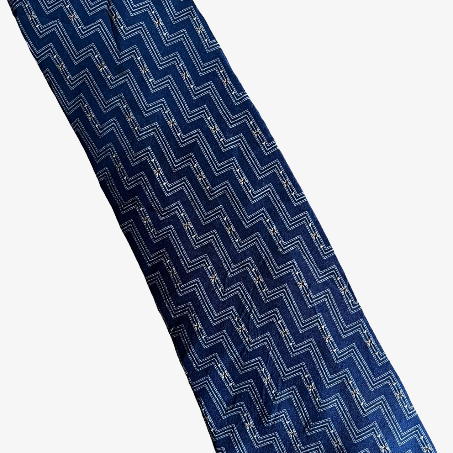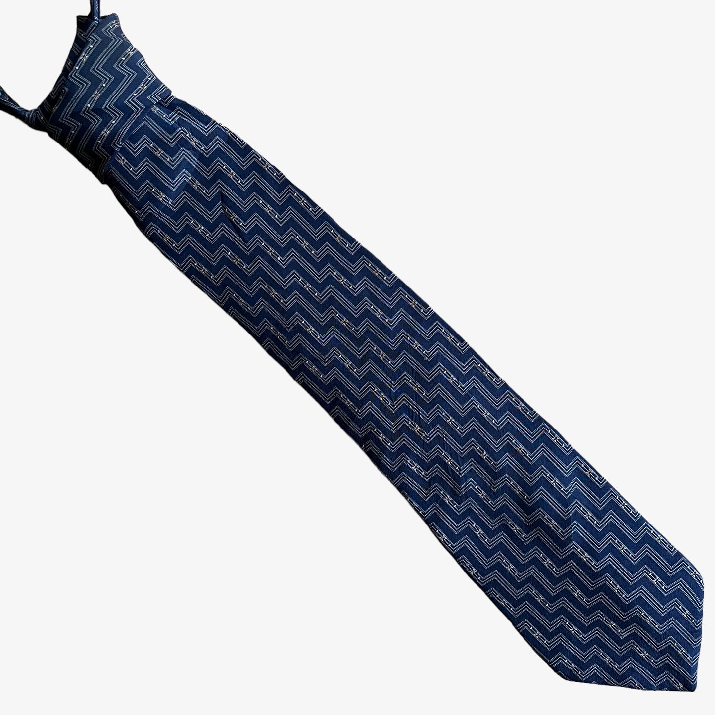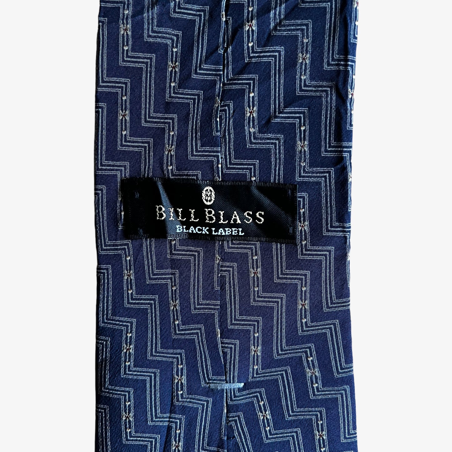 Vintage 90s Bill Blass Black Label Abstract Striped Navy Silk Tie.