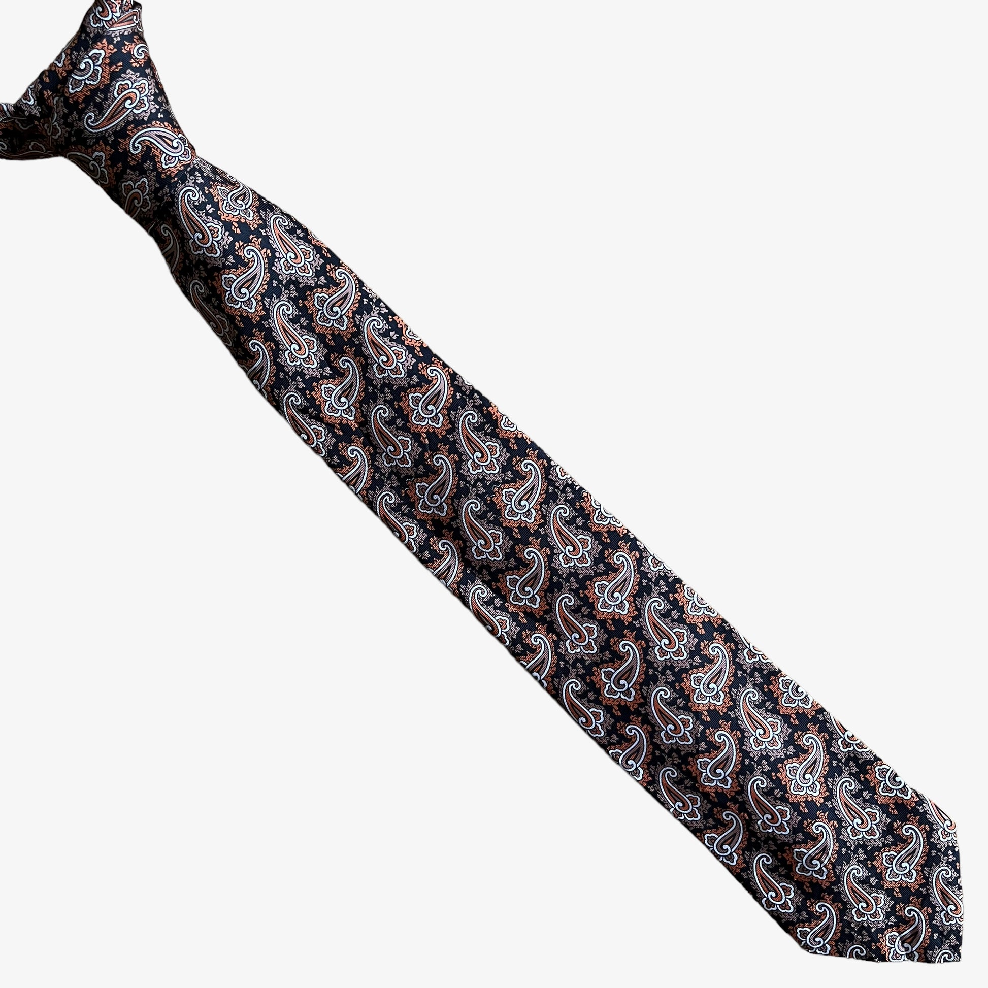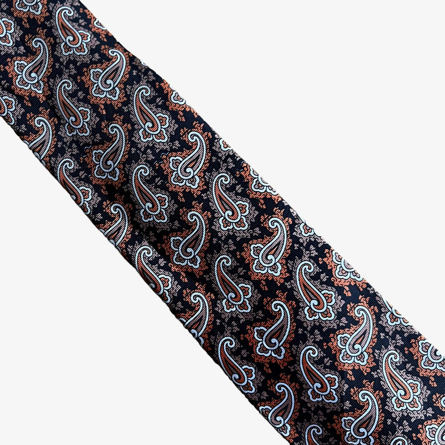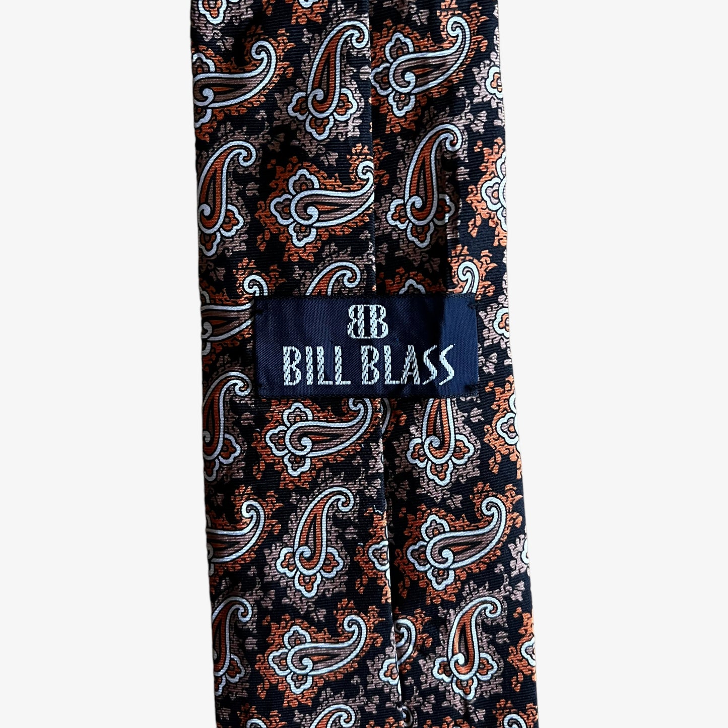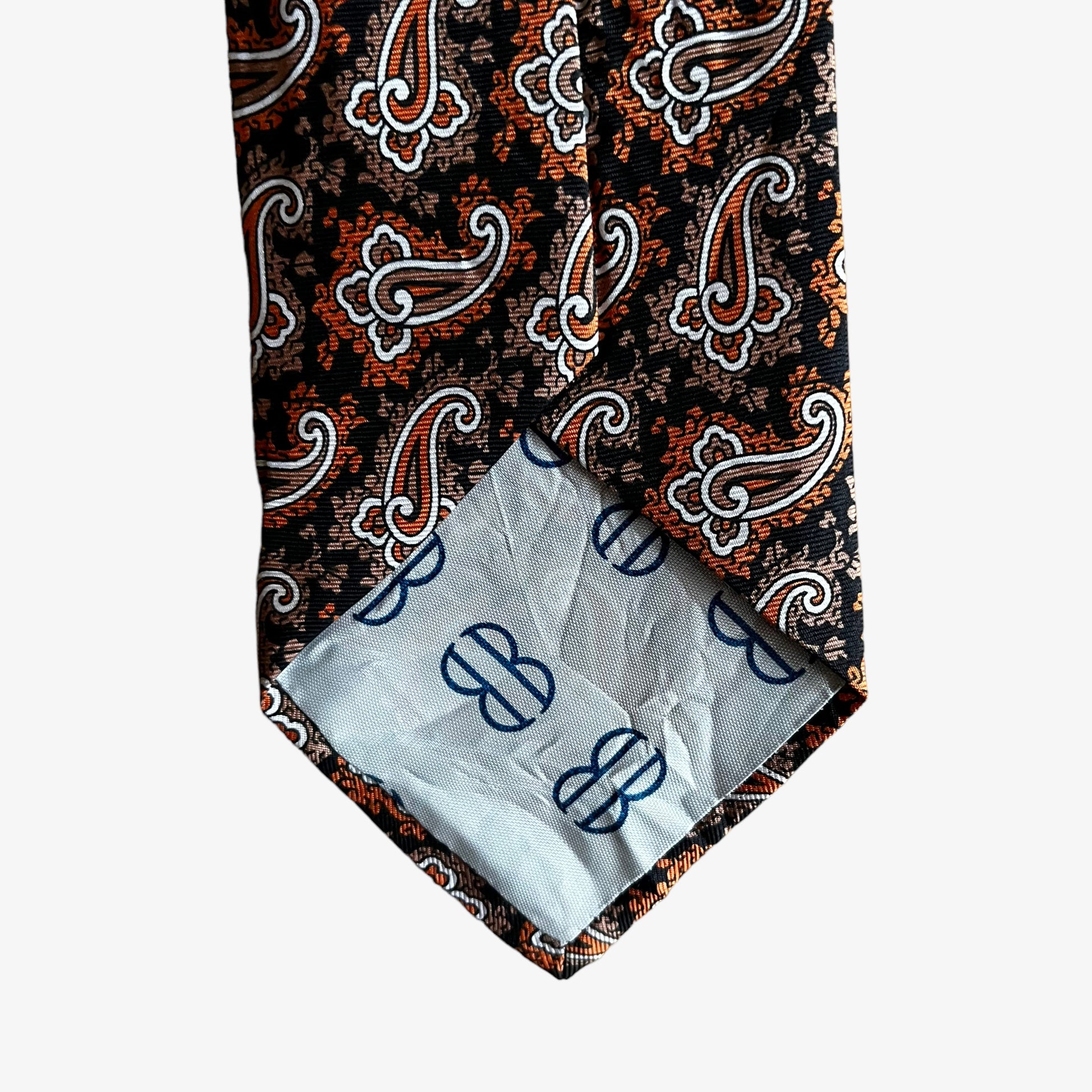 Vintage 90s Bill Blass Orange & Black Paisley Print Silk Tie.