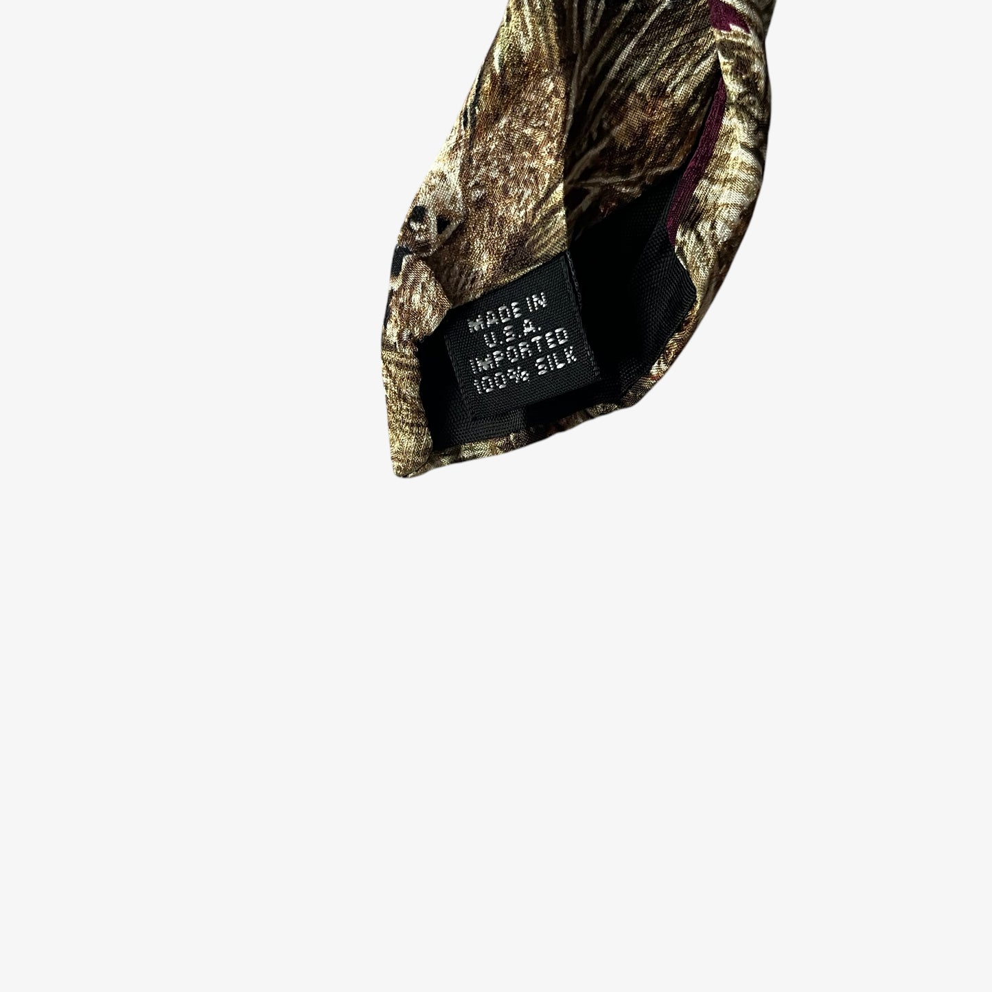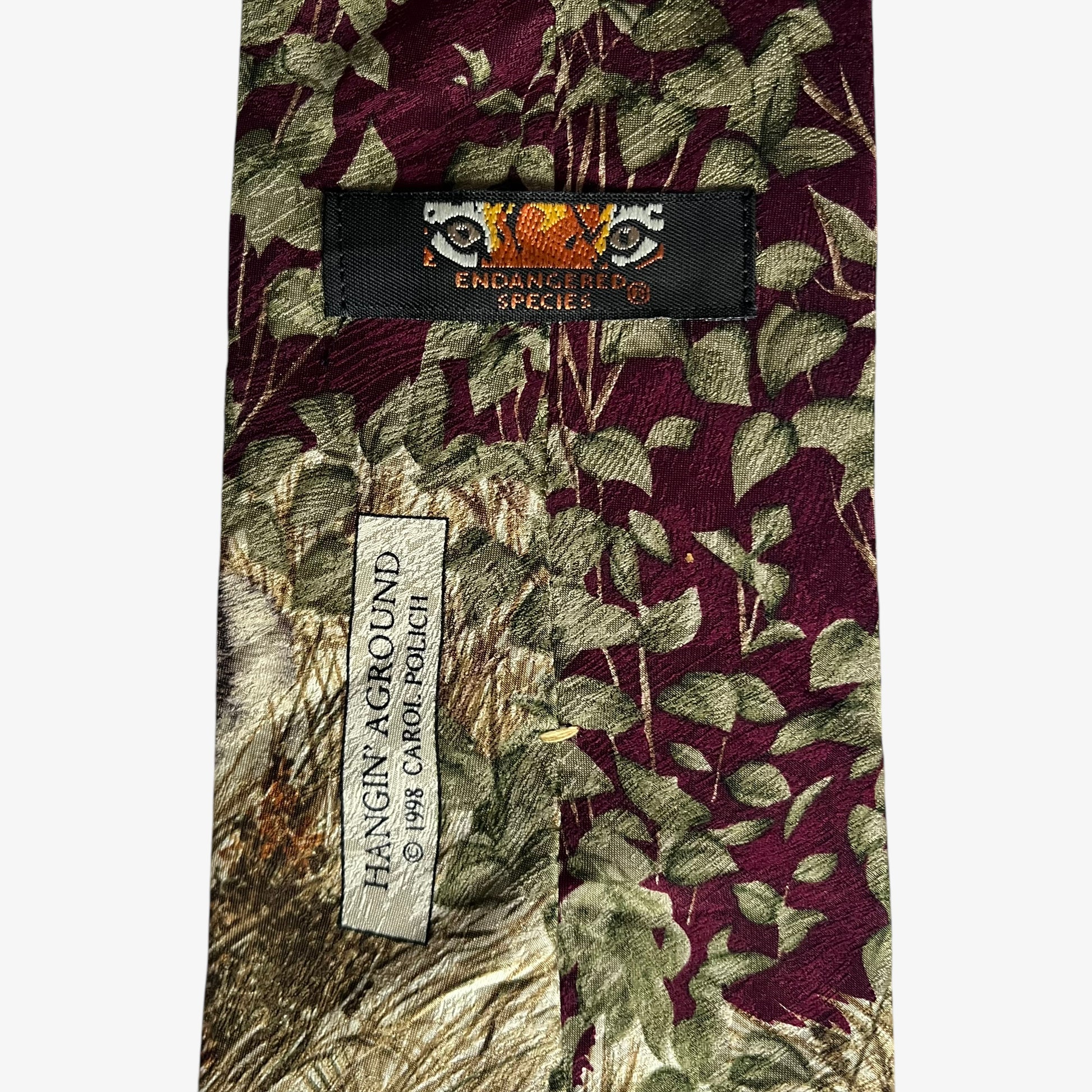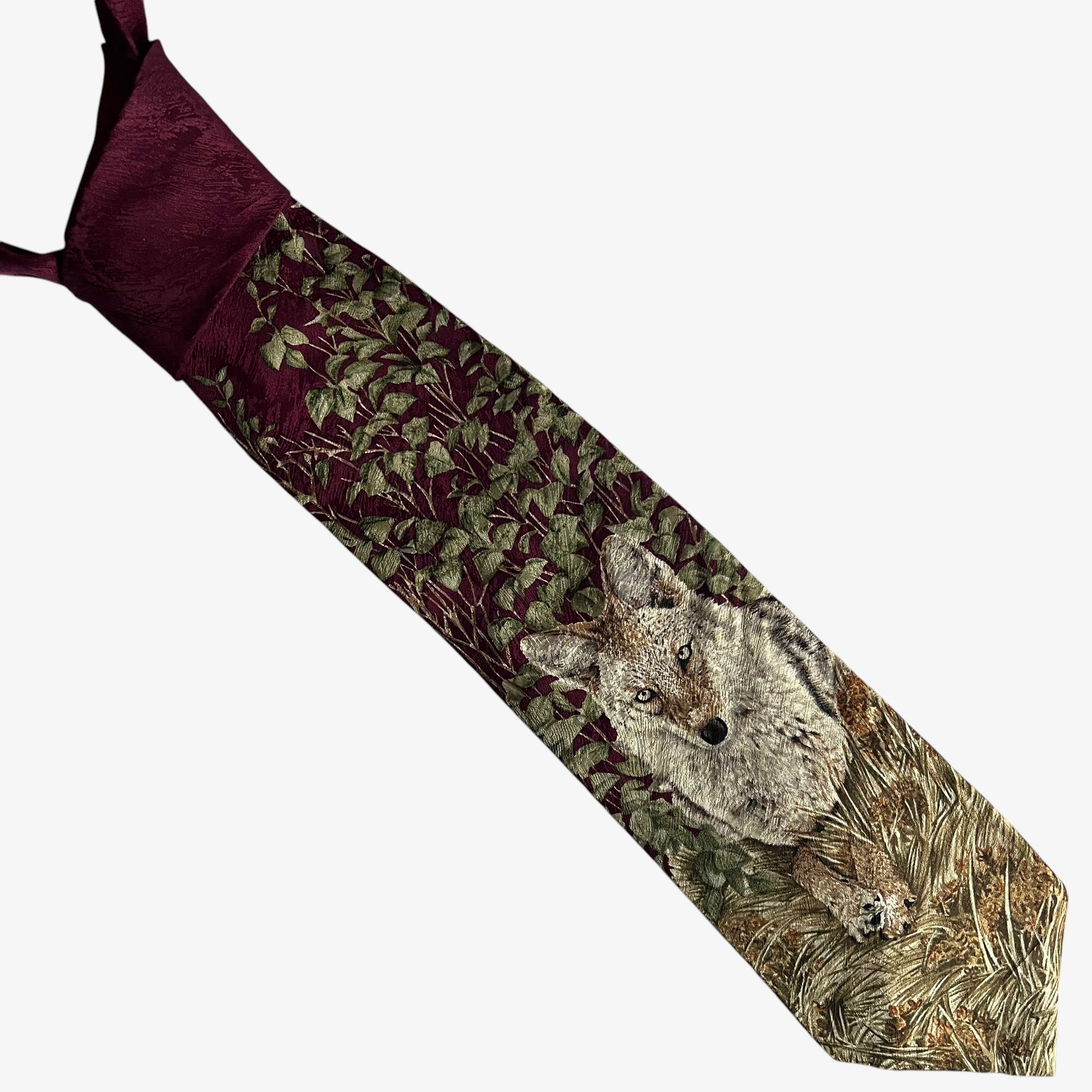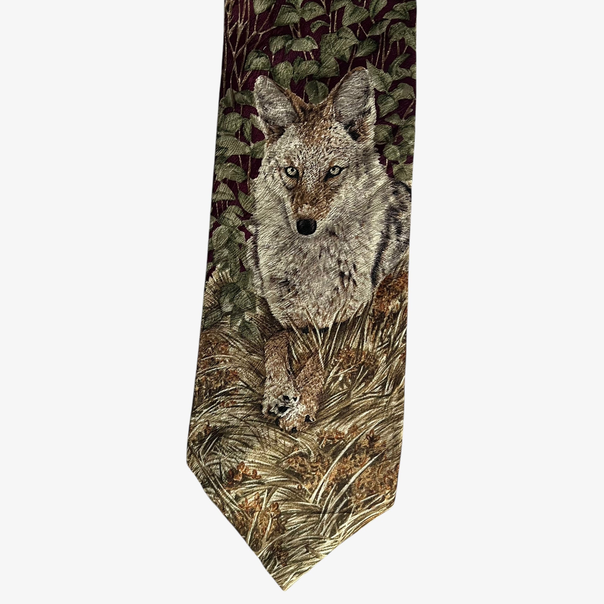 Vintage 90s Endangered Species 1998 Carol Polich Wolf Print Silk Tie.