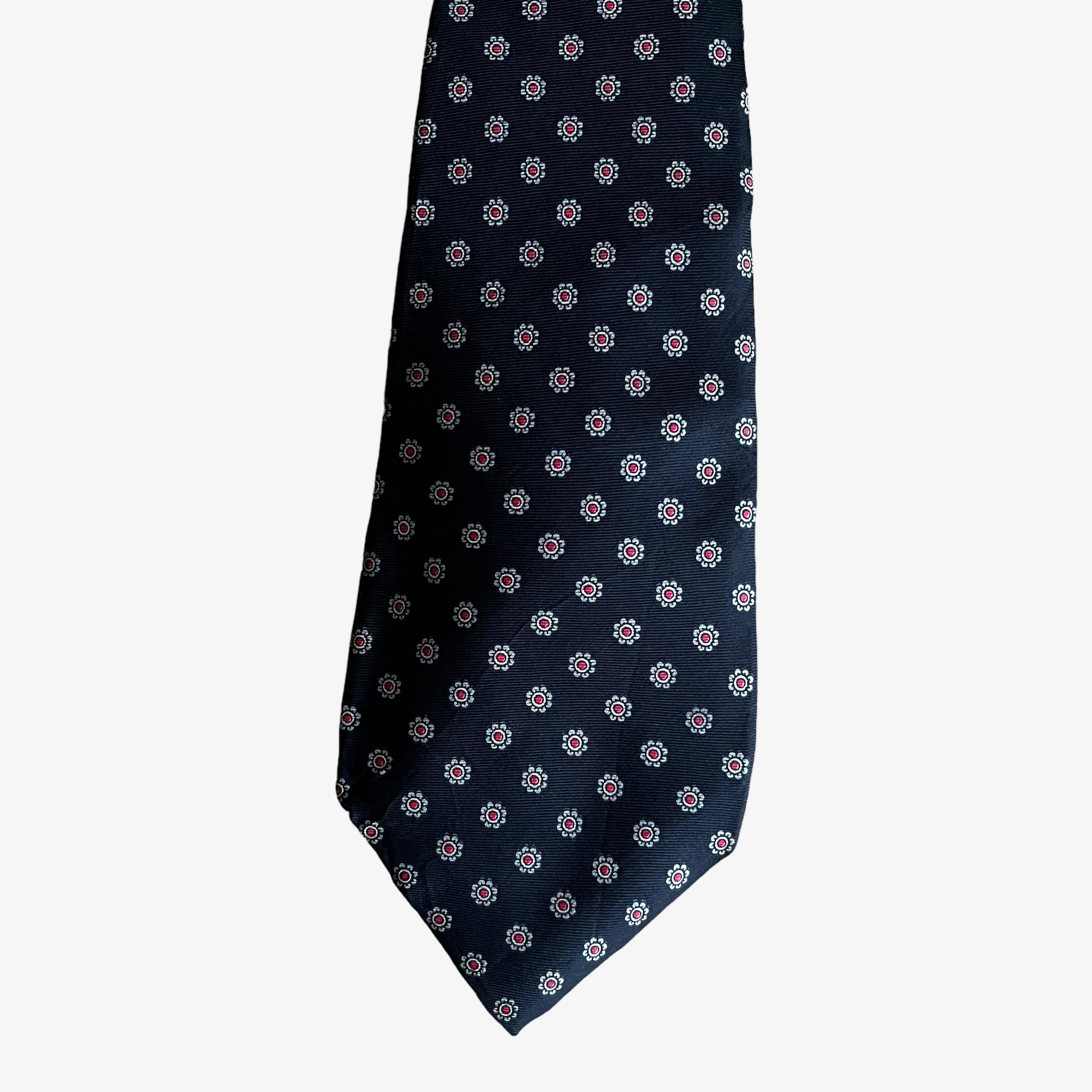 Vintage 90s Pierre Cardin Geometric Print Black Silk Tie.
