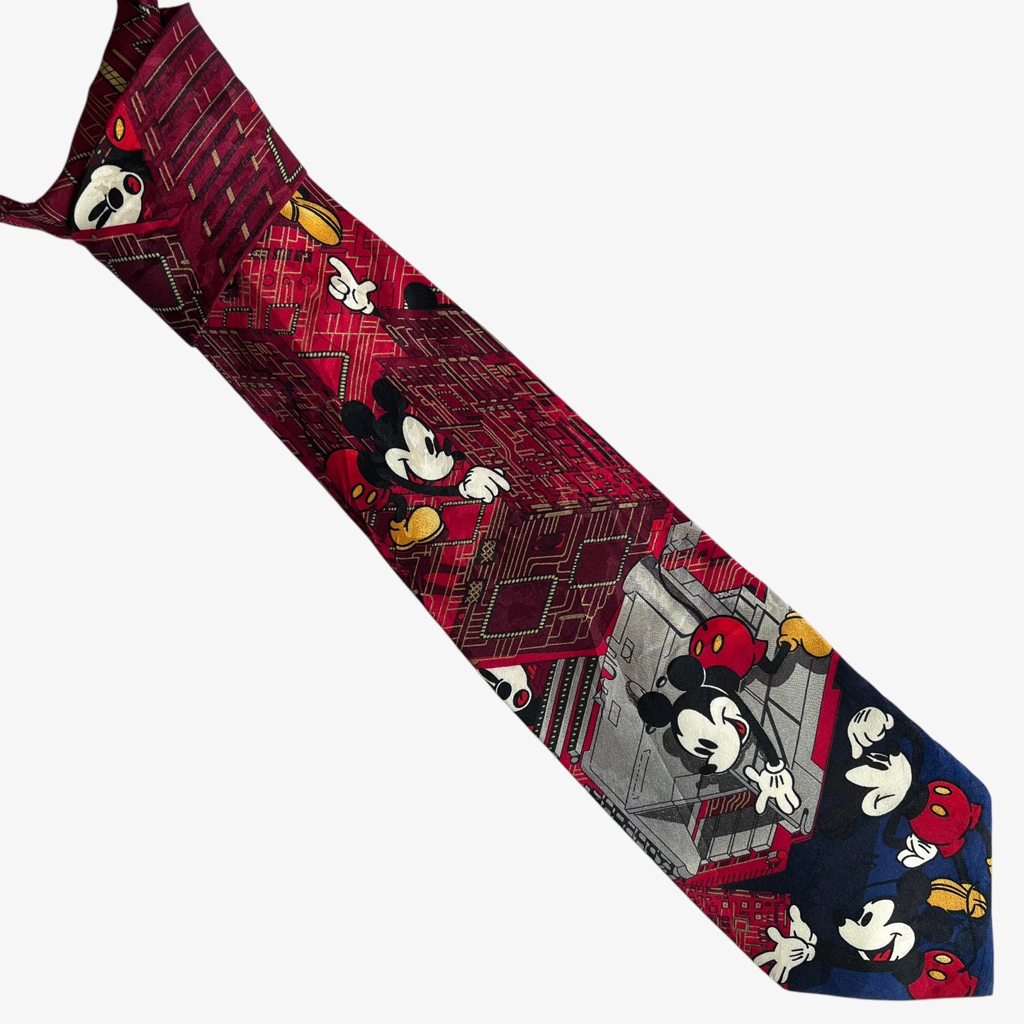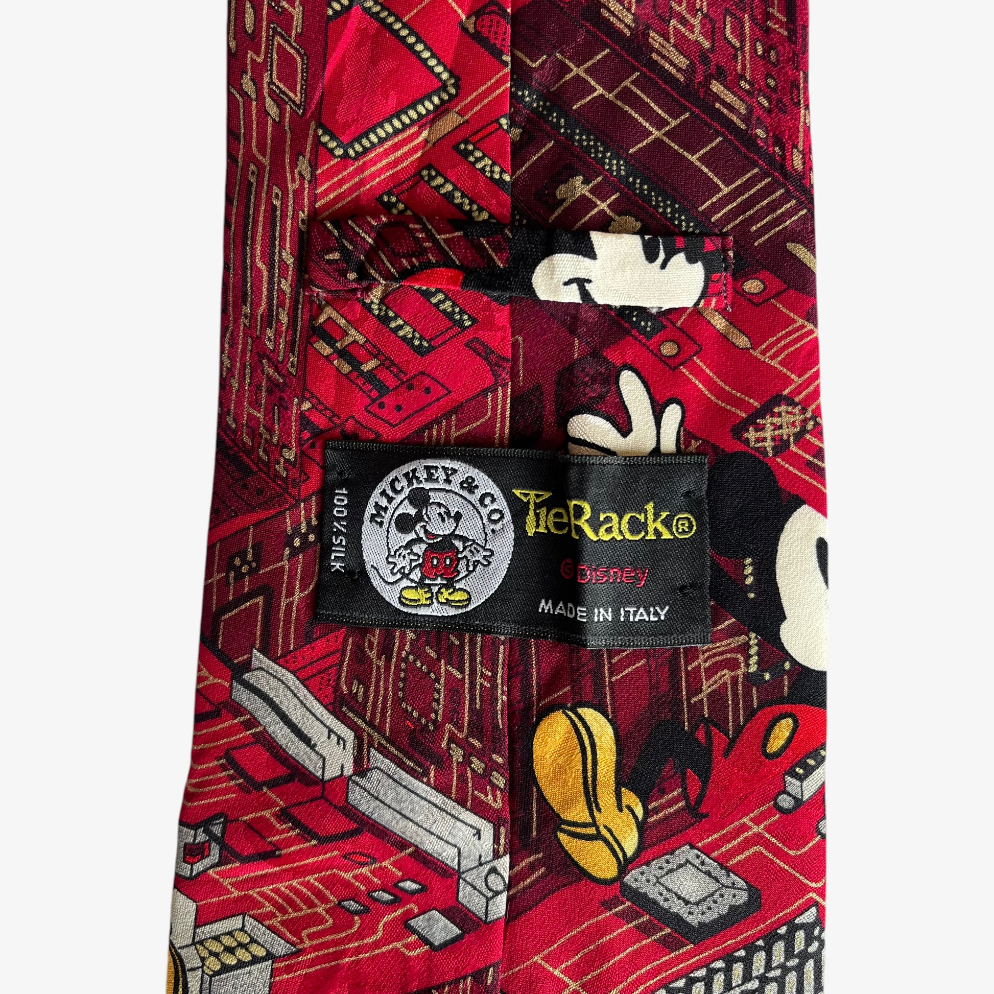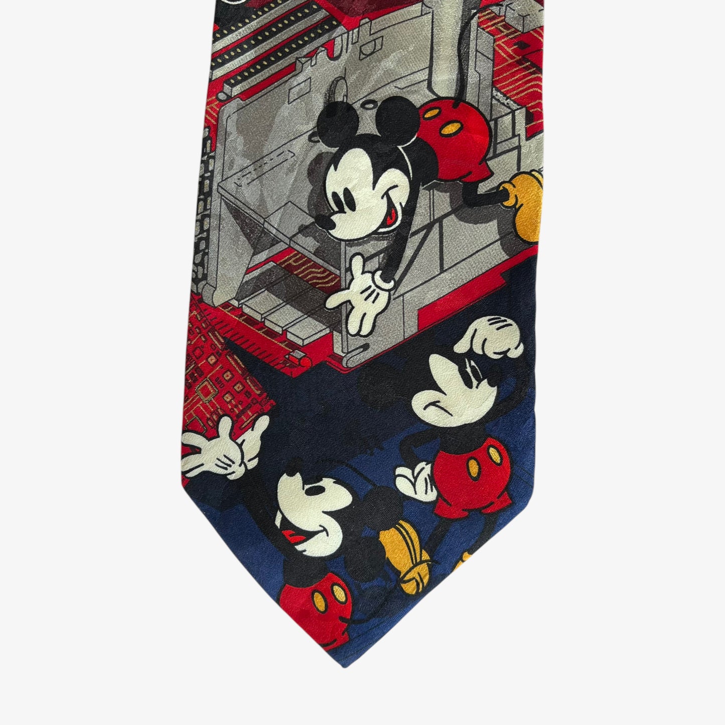 Vintage 90s Tie Rack Disney Mickey Mouse Computer Building Print Silk Tie.