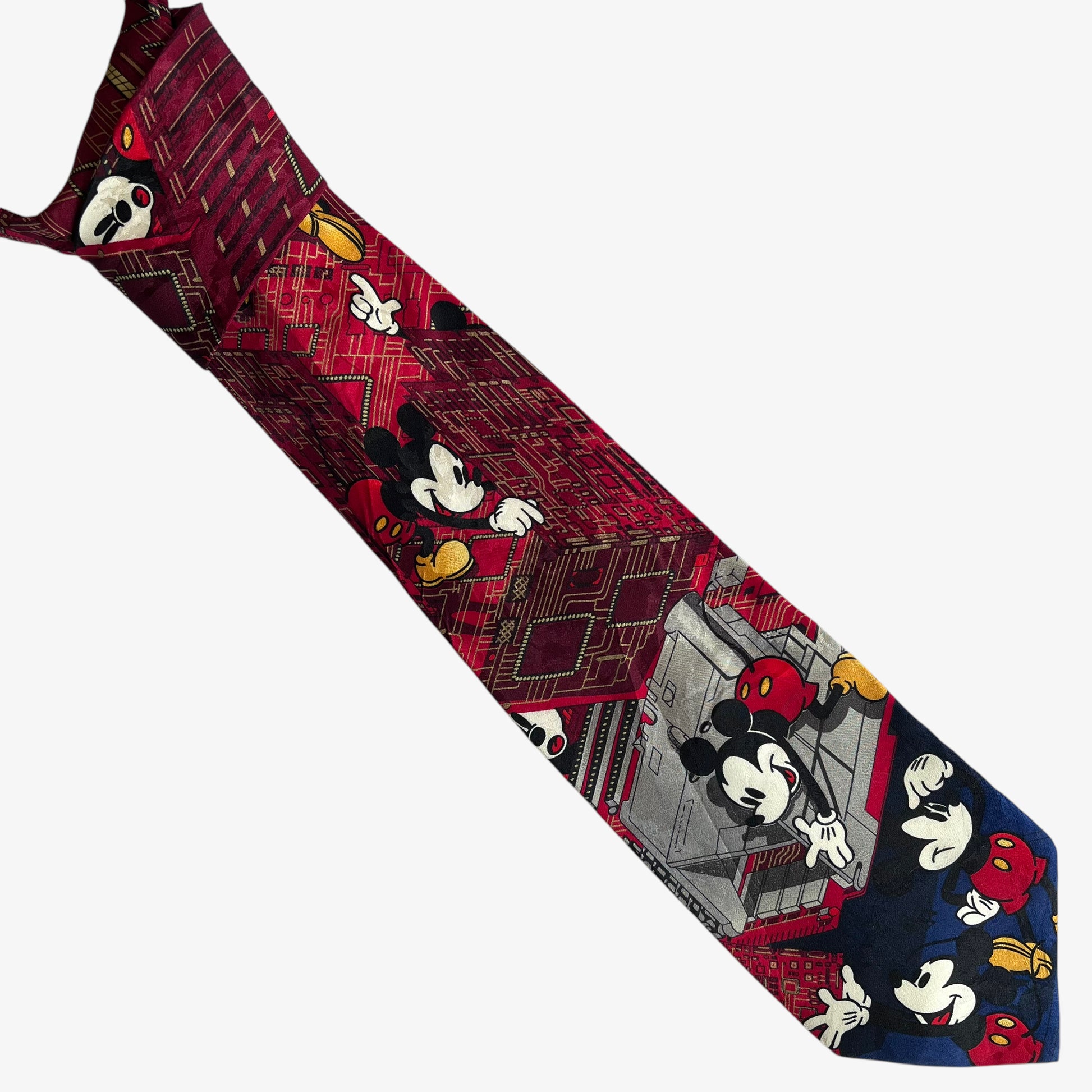 Tie Rack Disney Mickey Mouse Computer Building Print Silk Tie