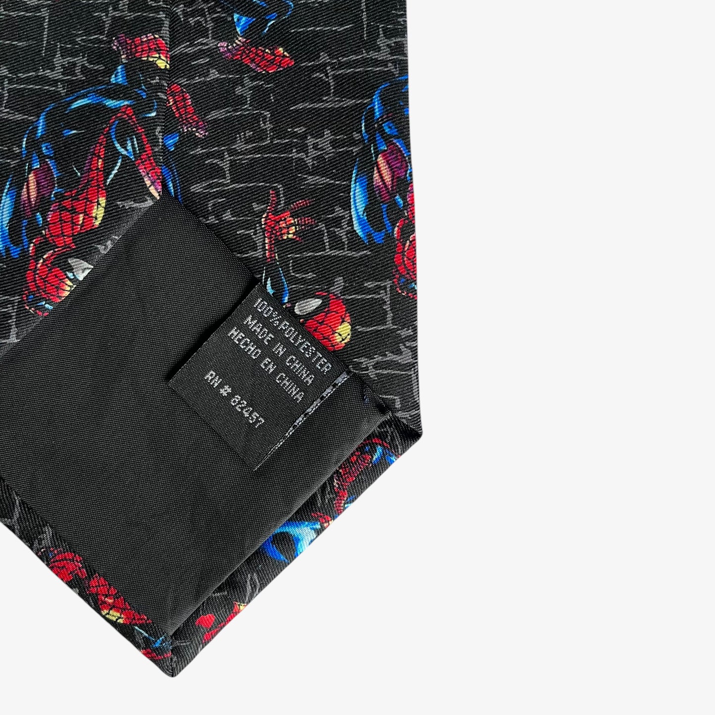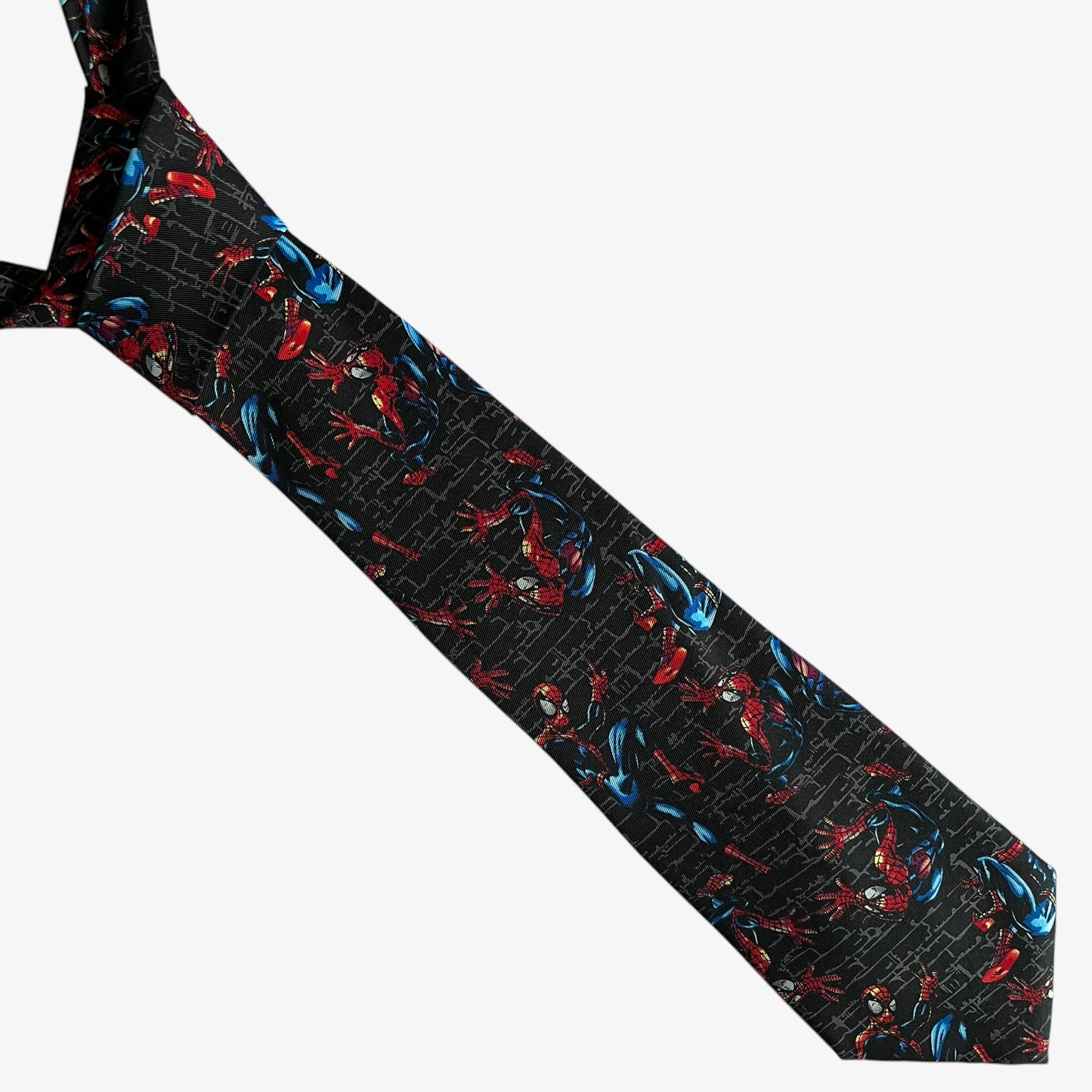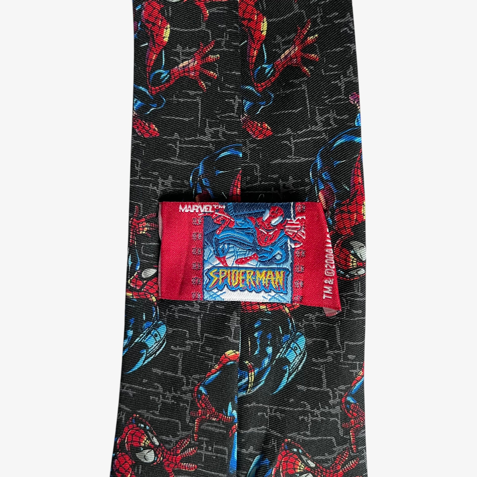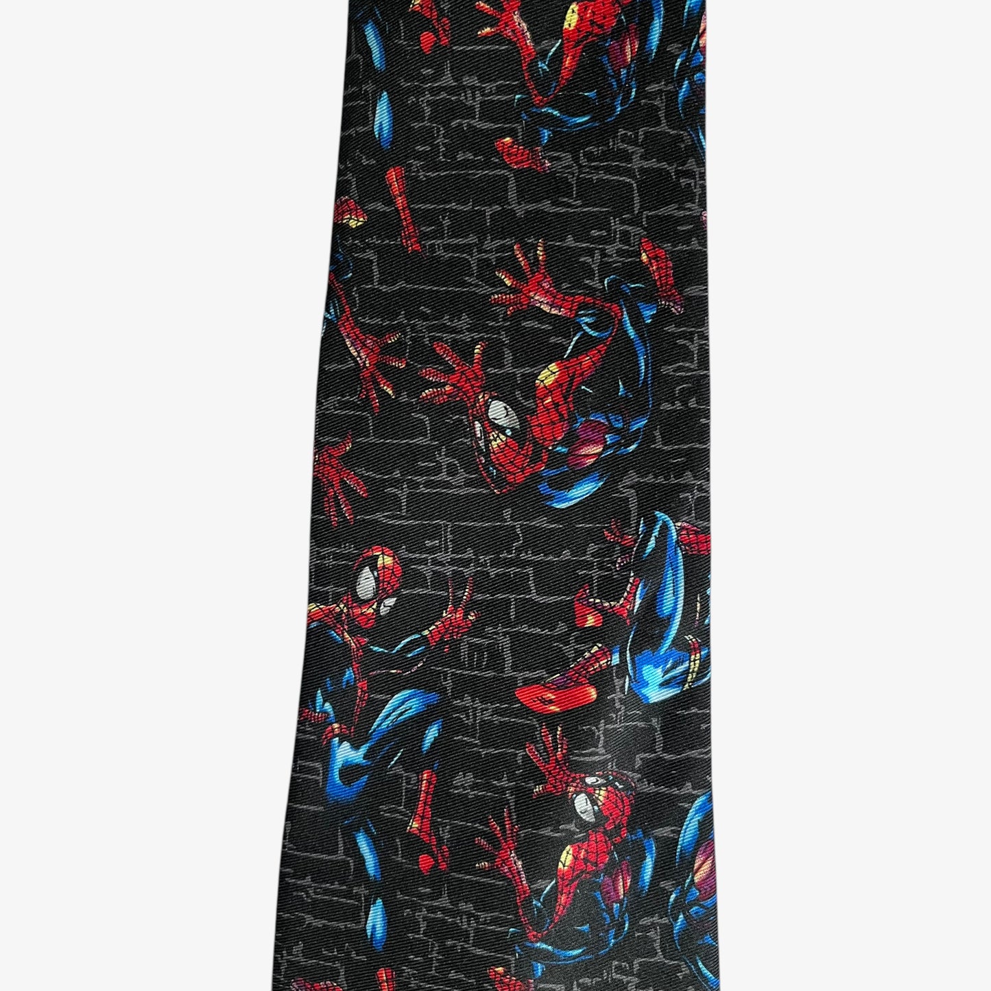 Vintage Y2K Marvel 2004 Spiderman Wall Crawling Print Black Polyester Tie.