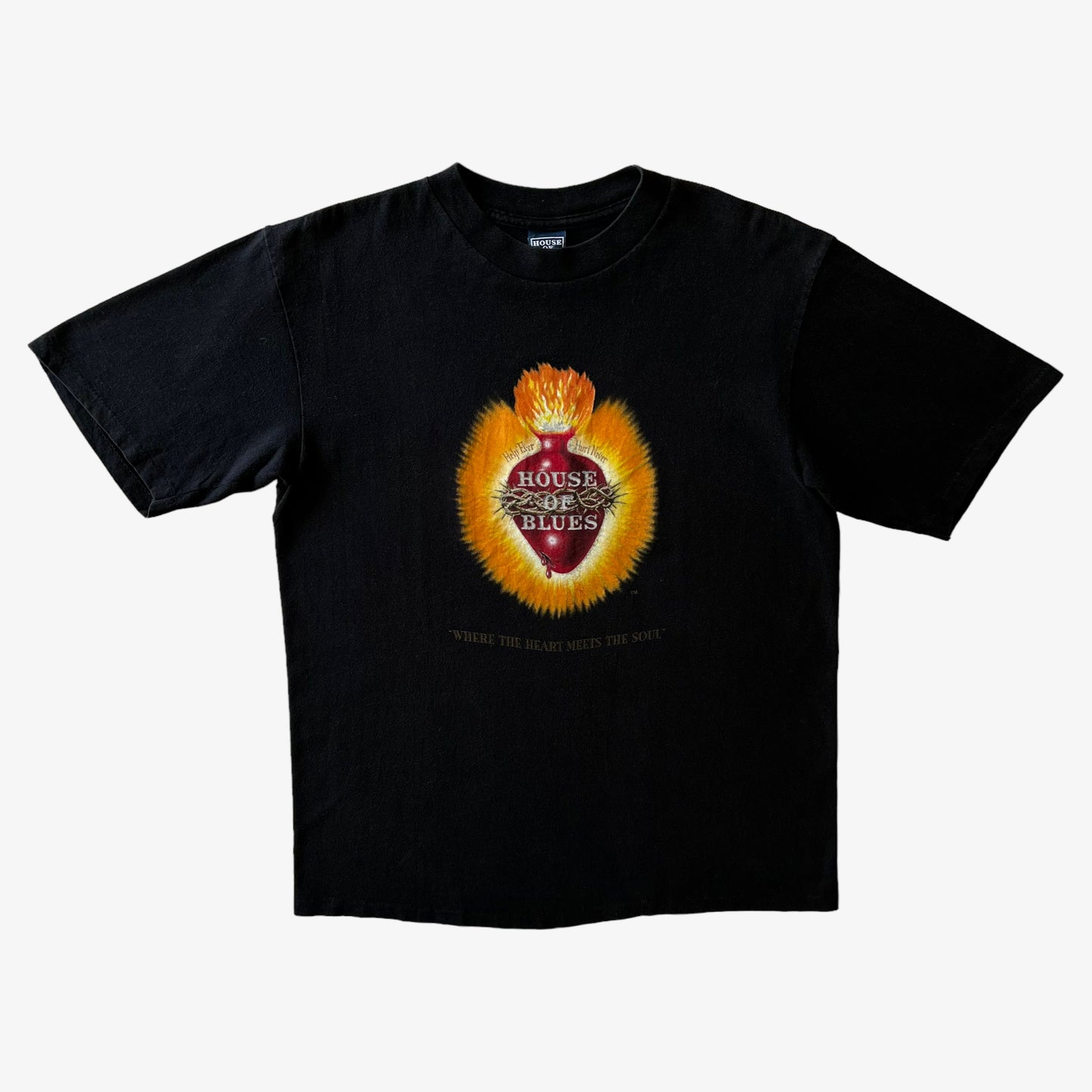 Vintage 90s Men's House Of Blues New Orleans Graphic Print Single Stitch Black Top.