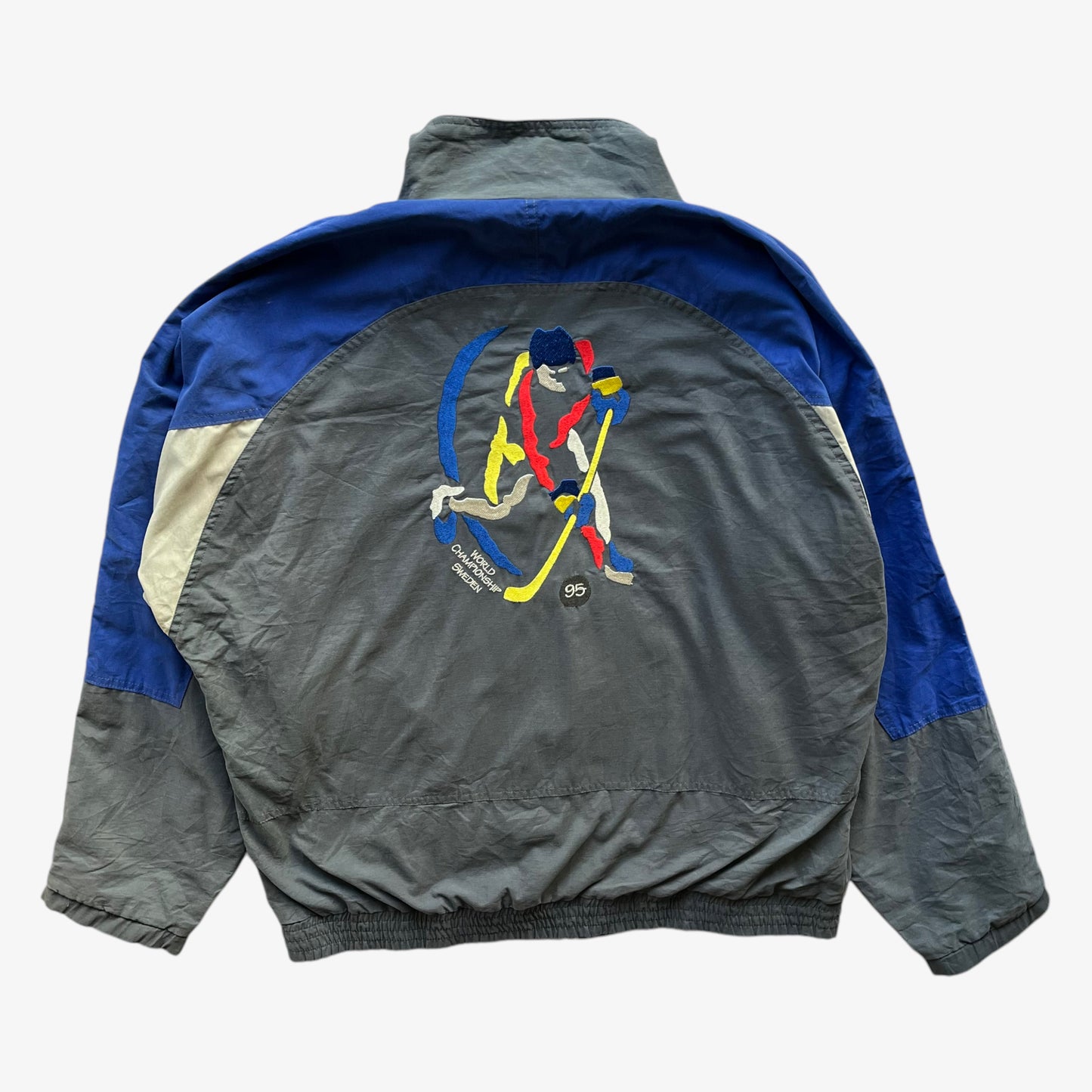 Vintage 90s Men's Ice Hockey 1995 Sweden World Championship Faded Jacket.