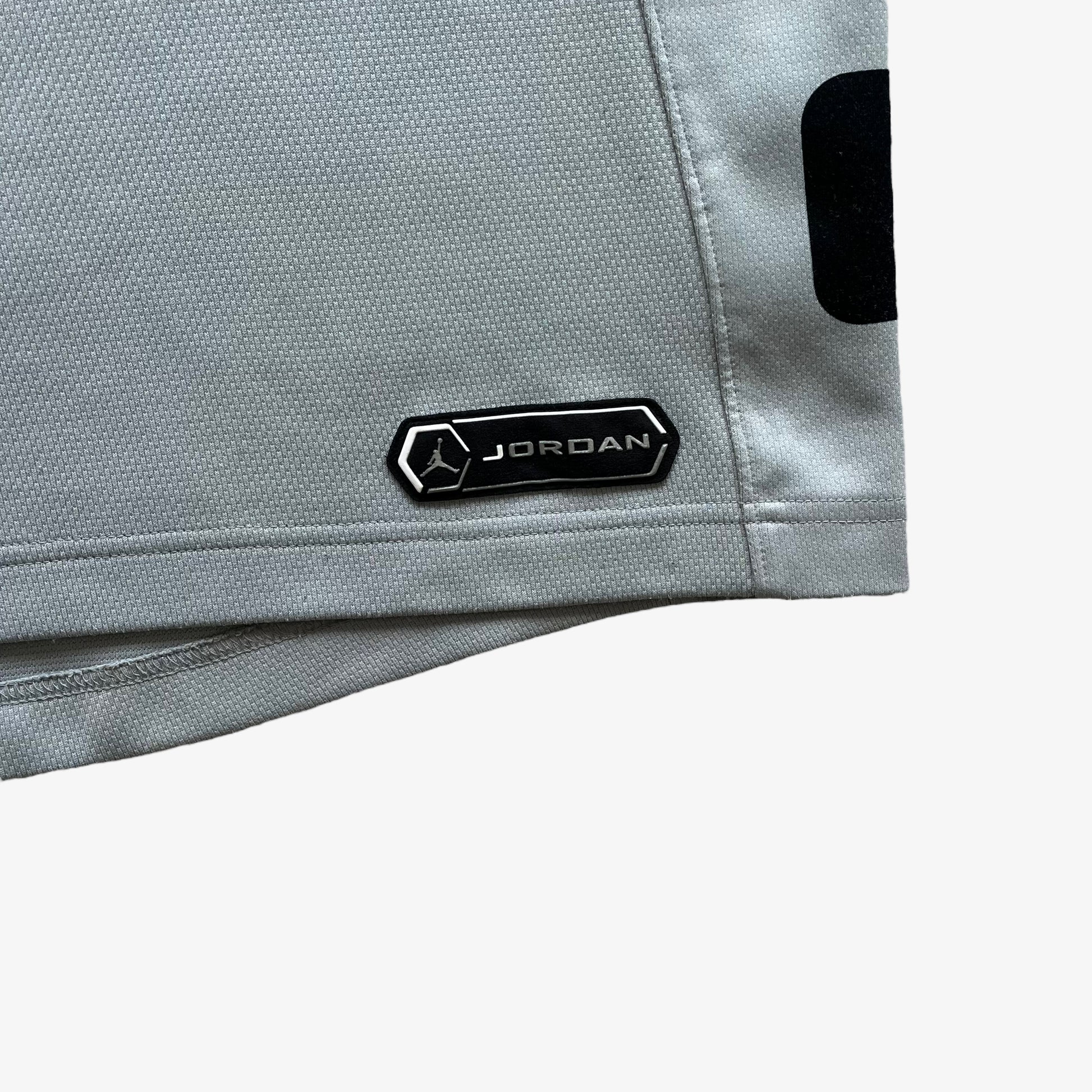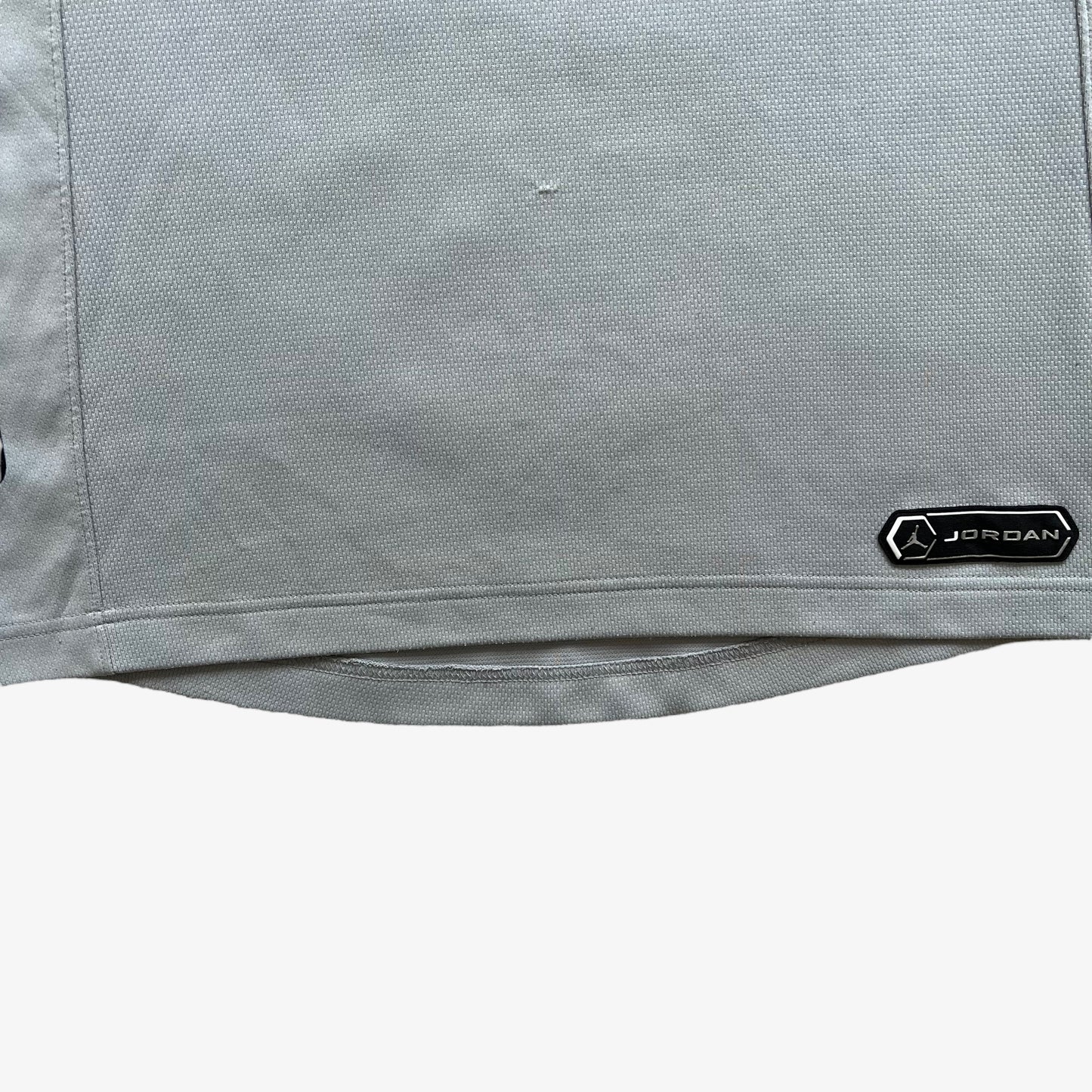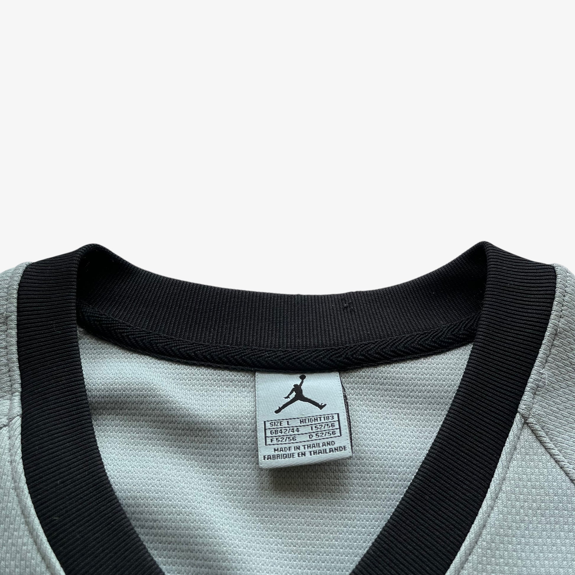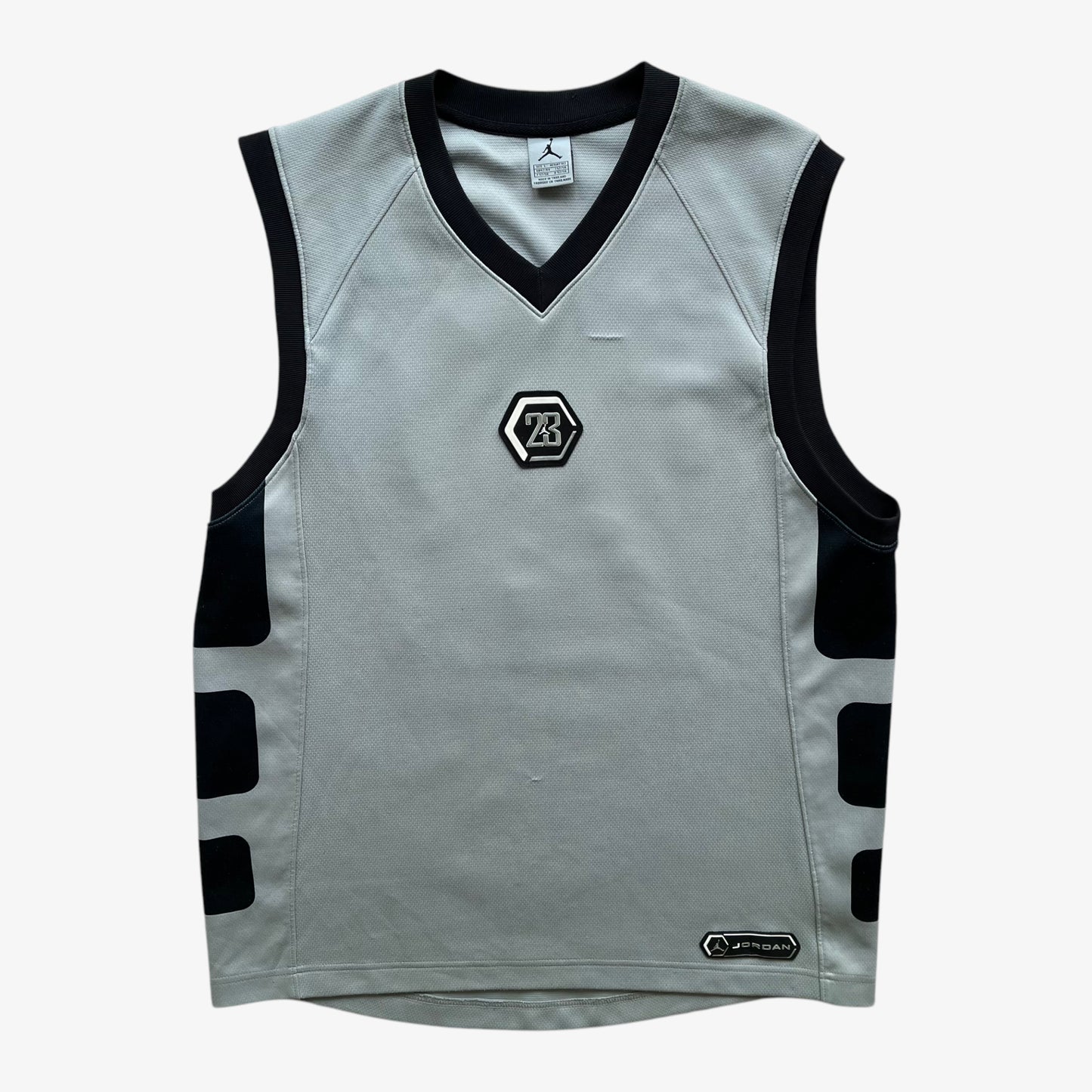 Vintage 90s Men's Michael Jordan 23 Jumpman Grey And Black Basketball Jersey.