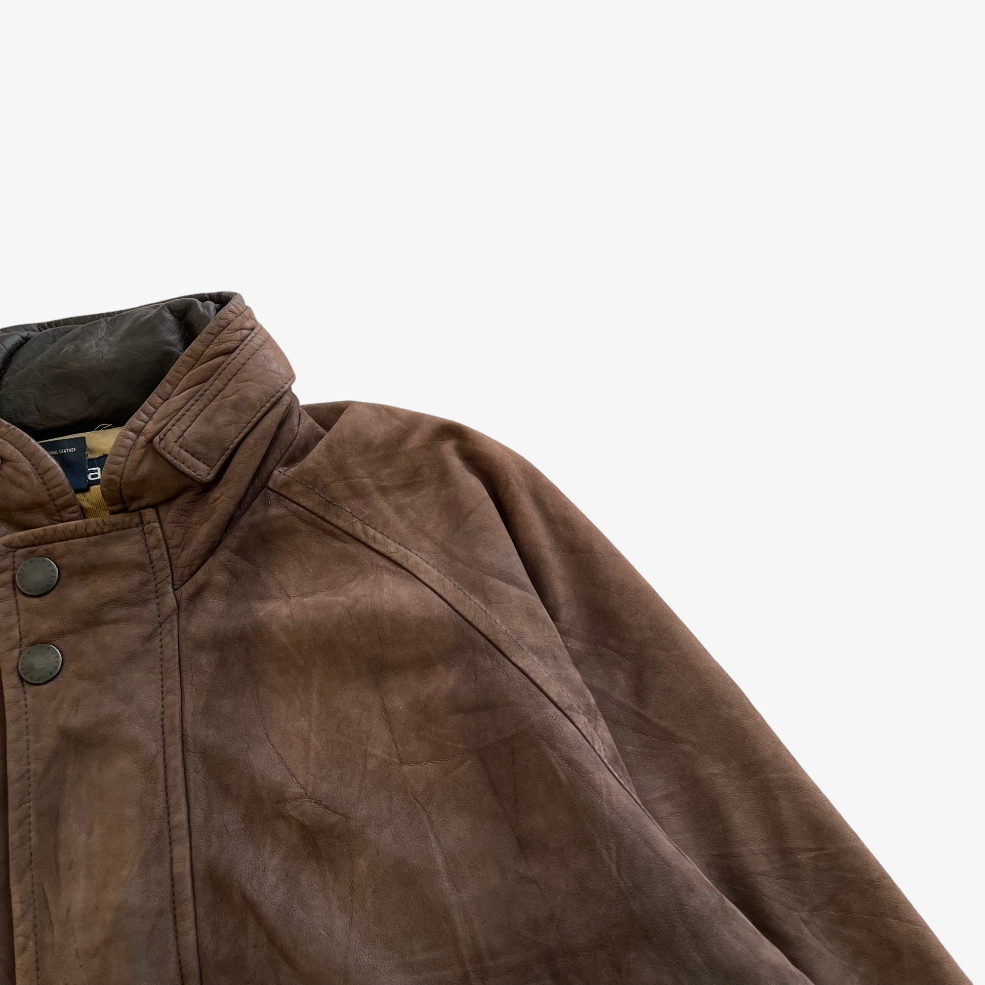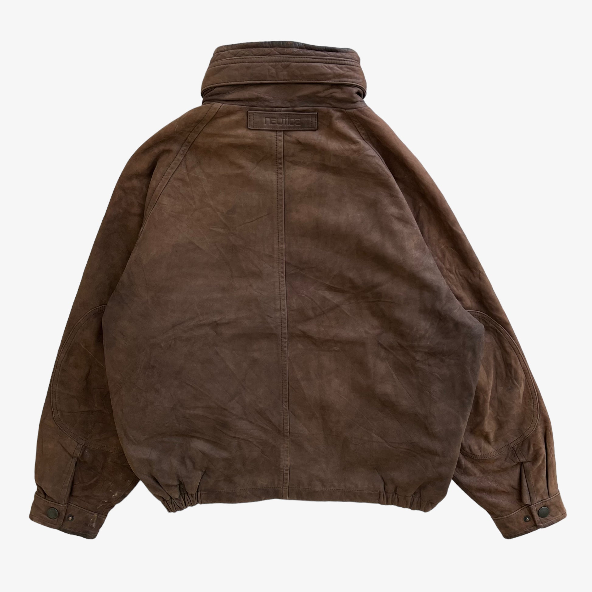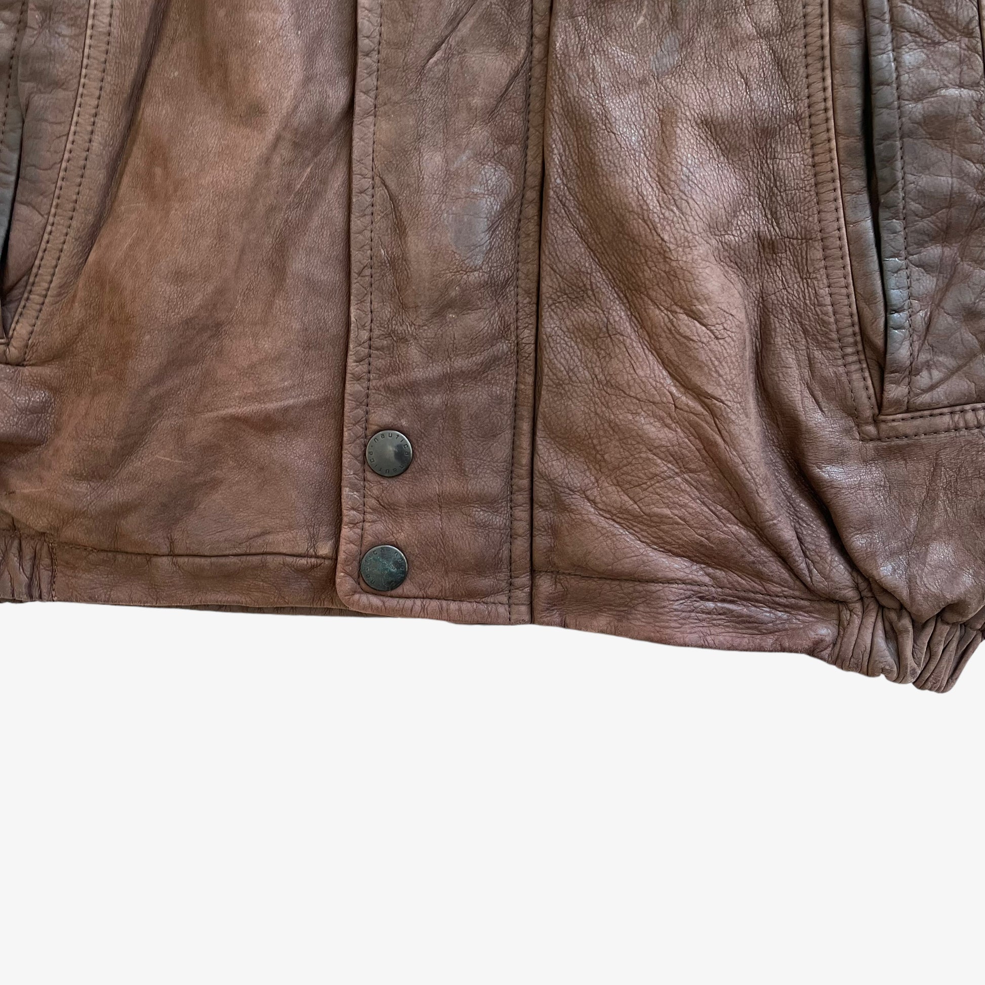 Vintage 90s Men's Nautica Brown Leather Jacket With Foldable Hood.