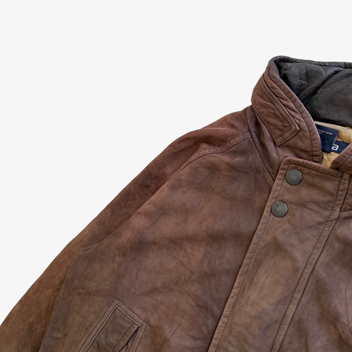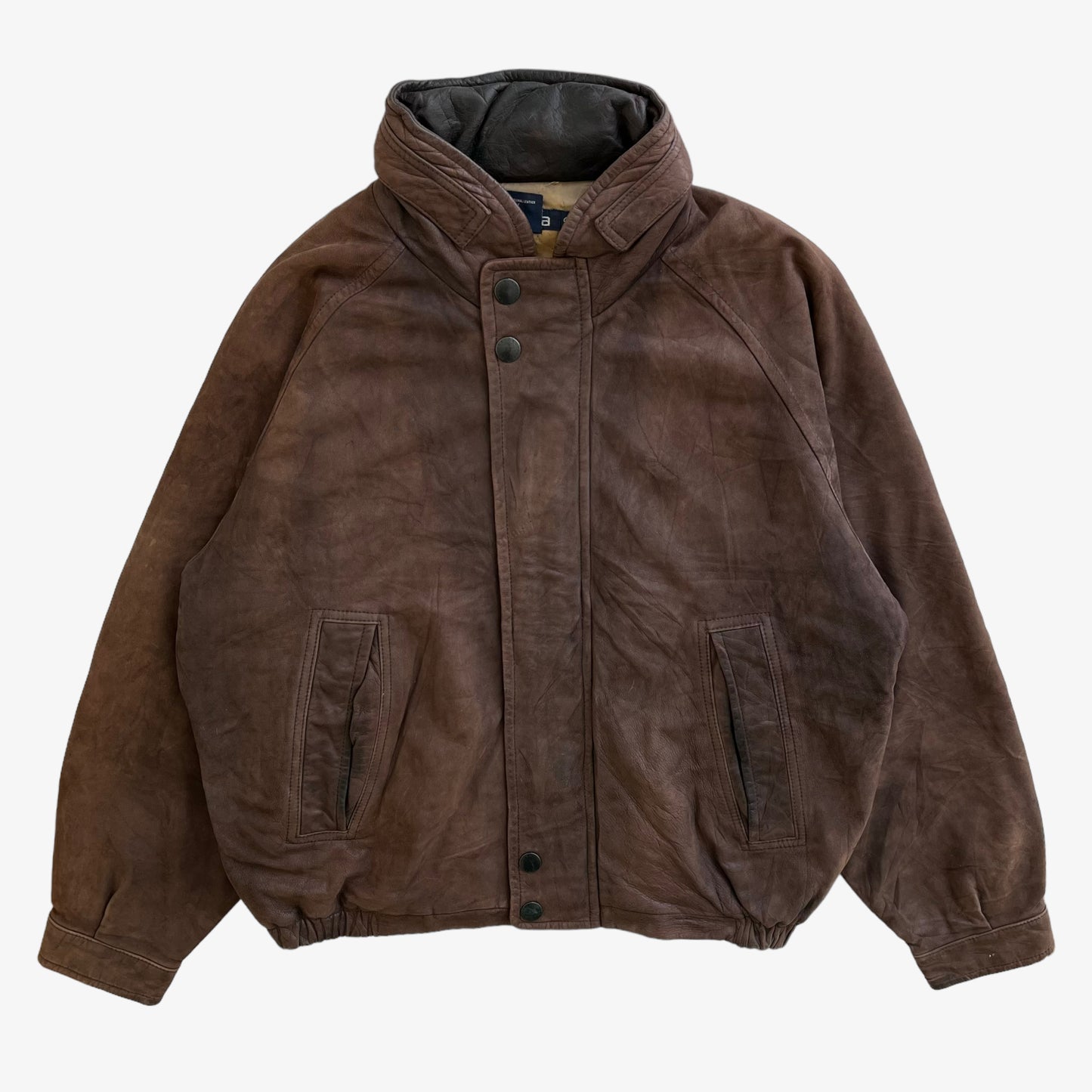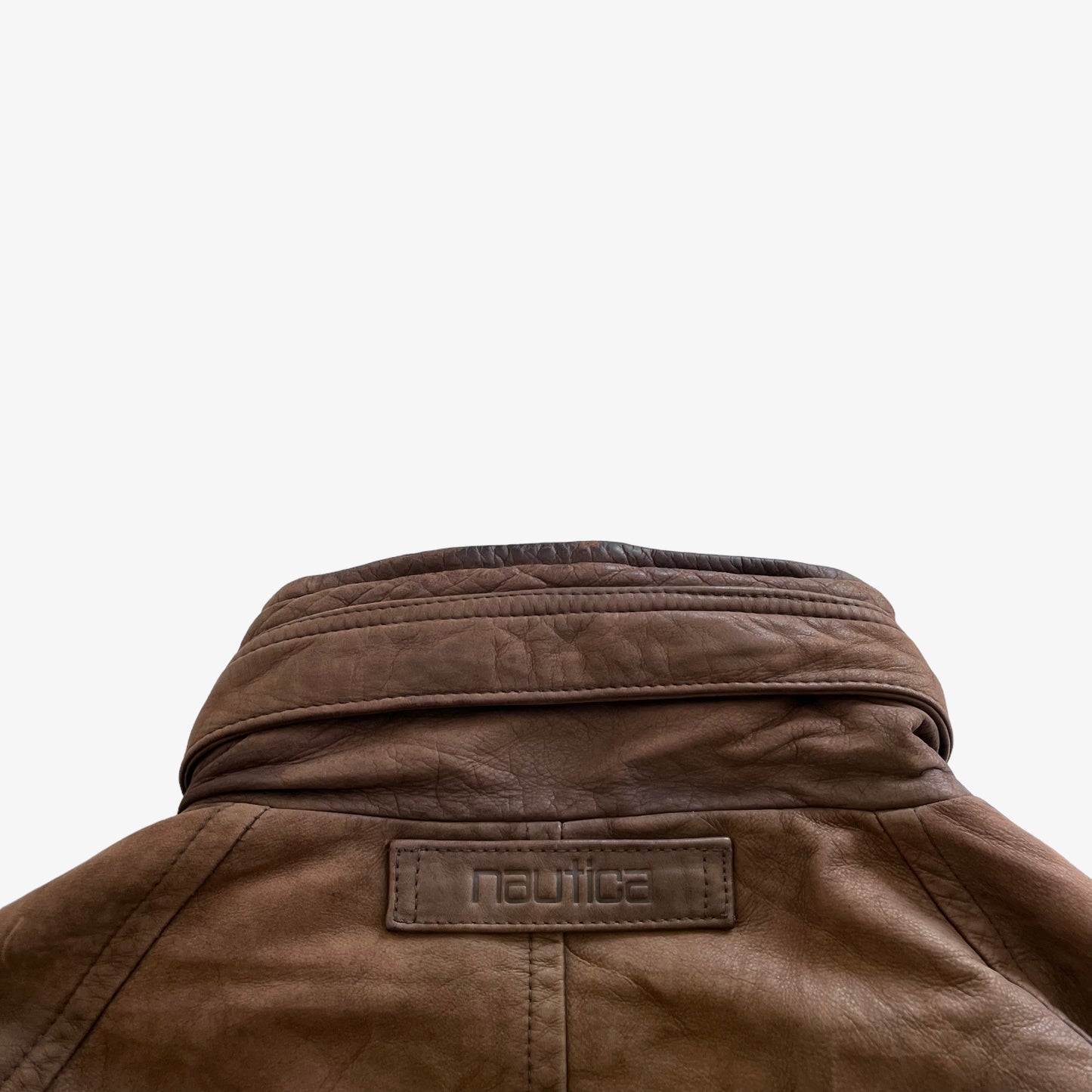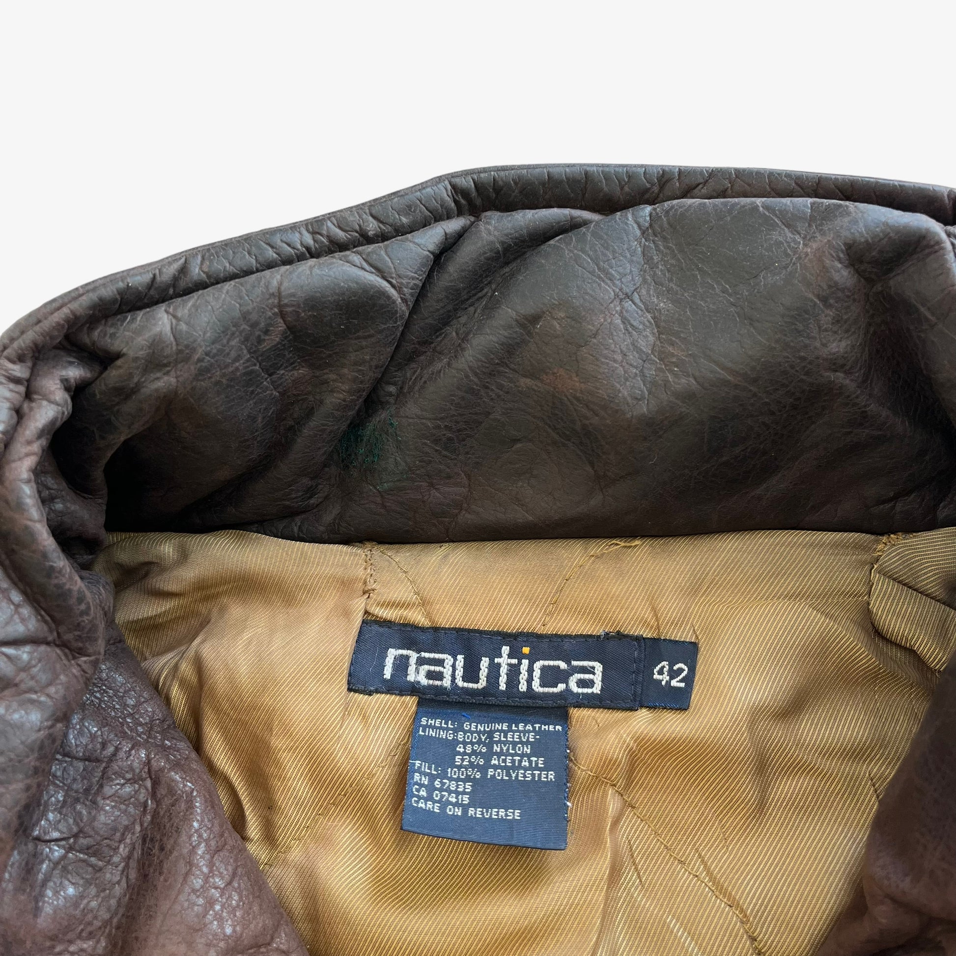 Vintage 90s Men's Nautica Brown Leather Jacket With Foldable Hood.