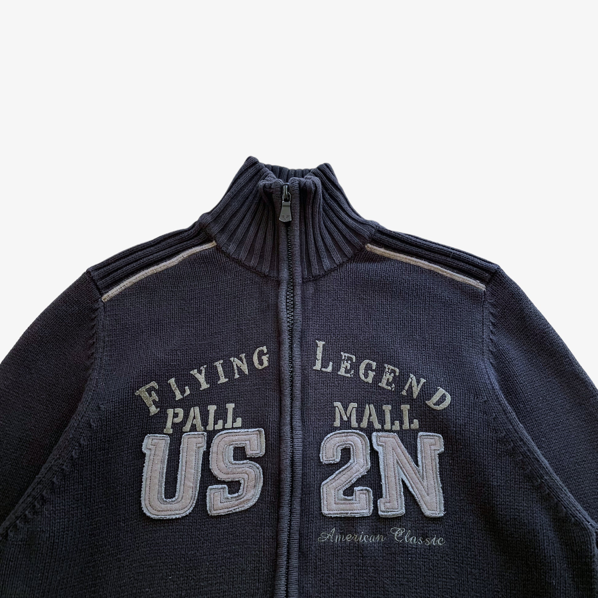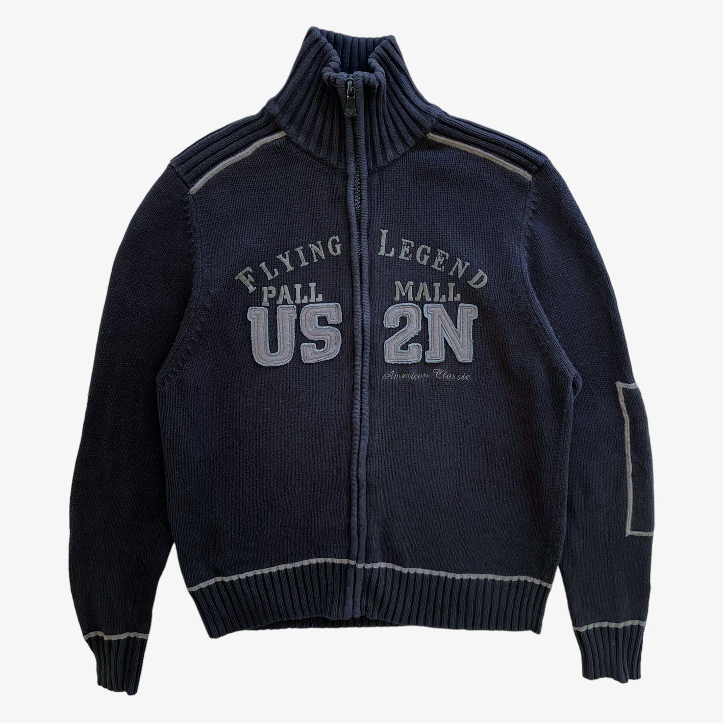 Vintage 90s Men's Pall Mall Flying Legend Black Knitted Jacket.
