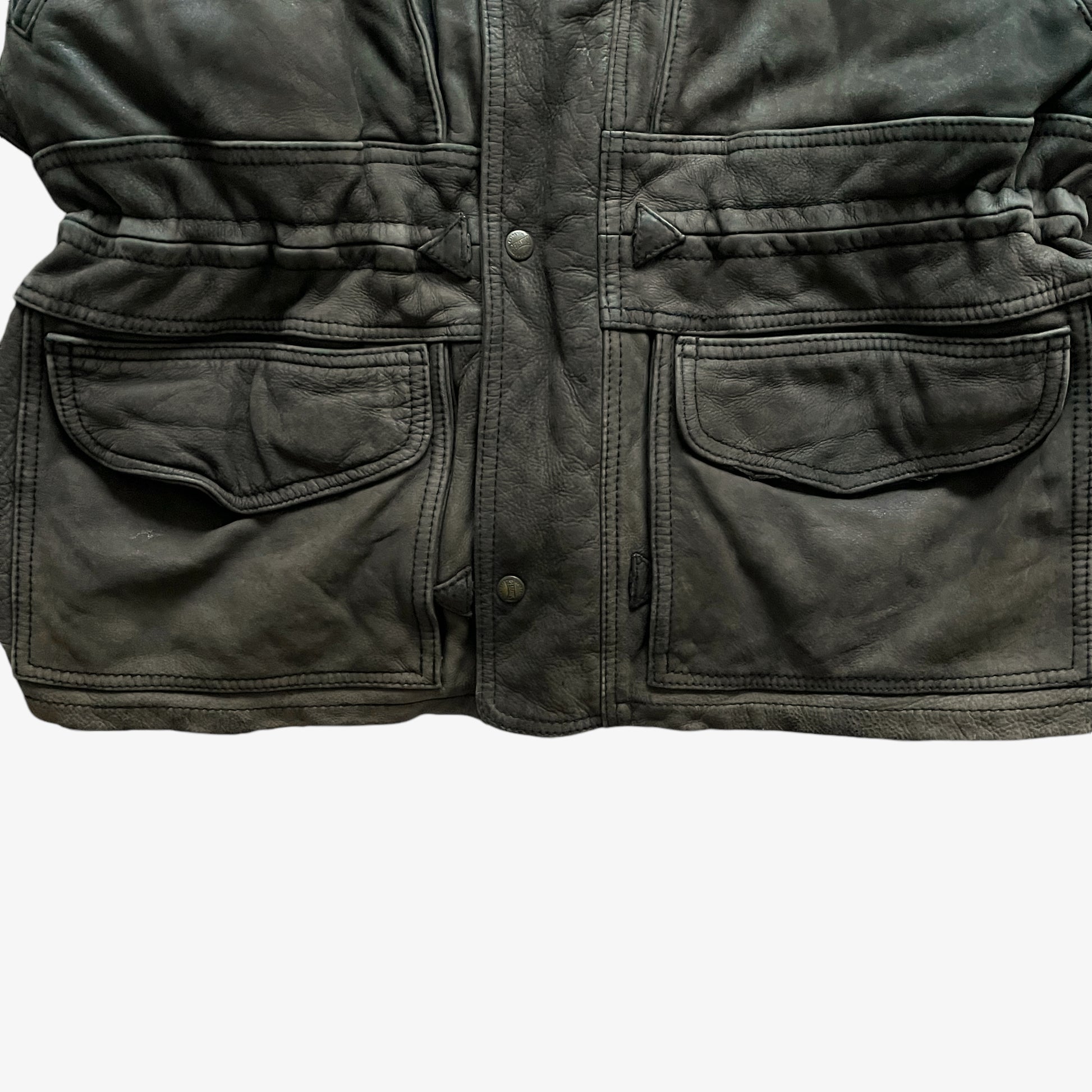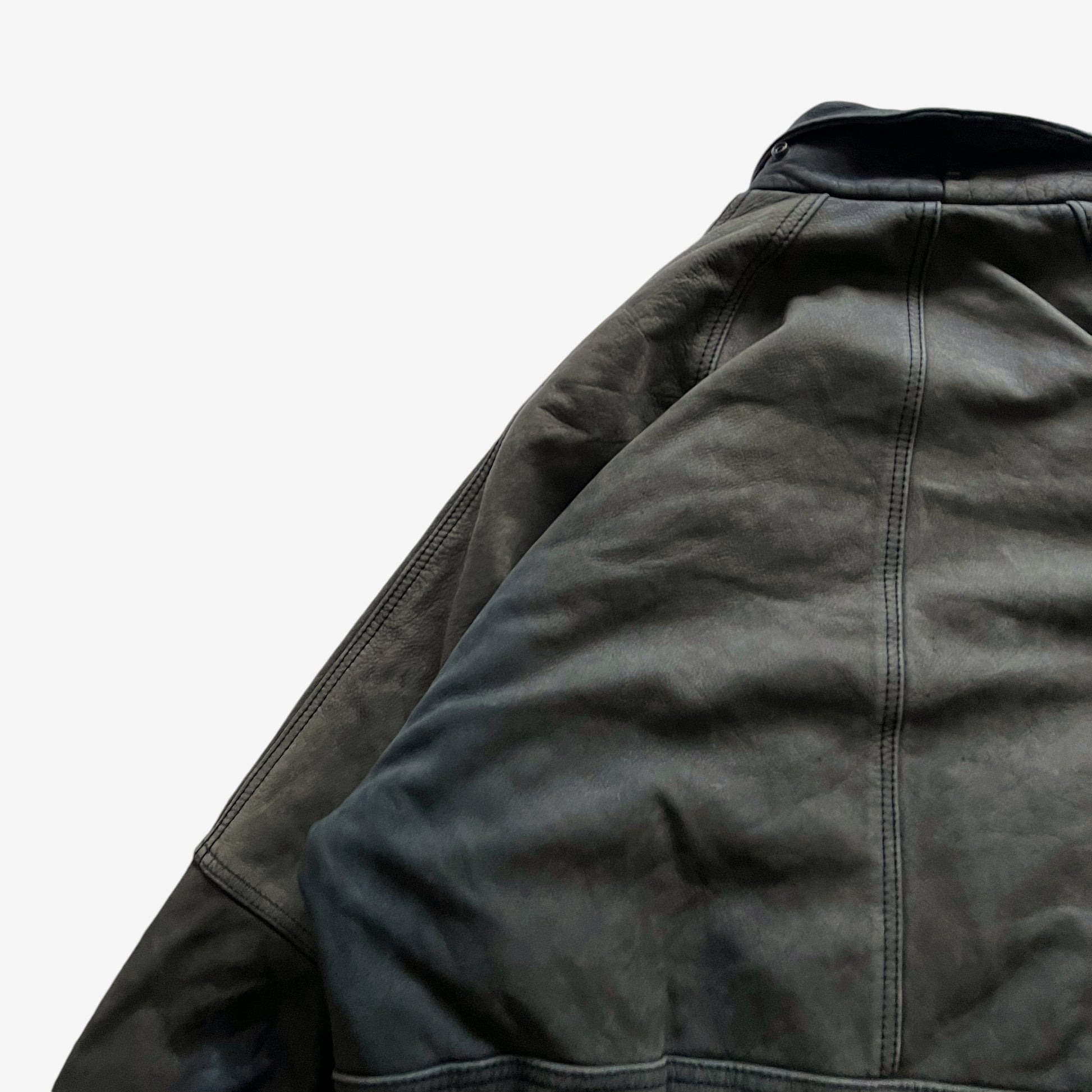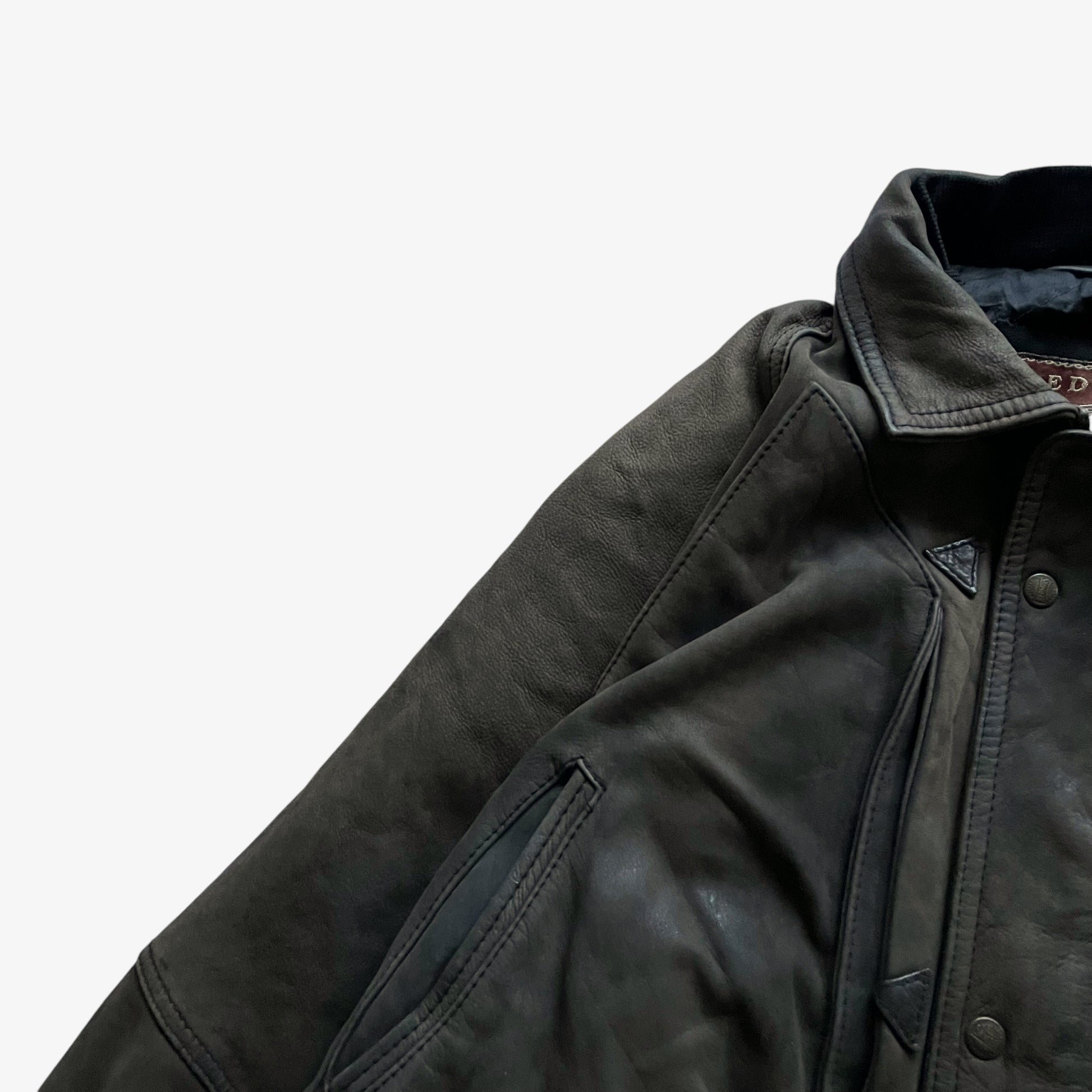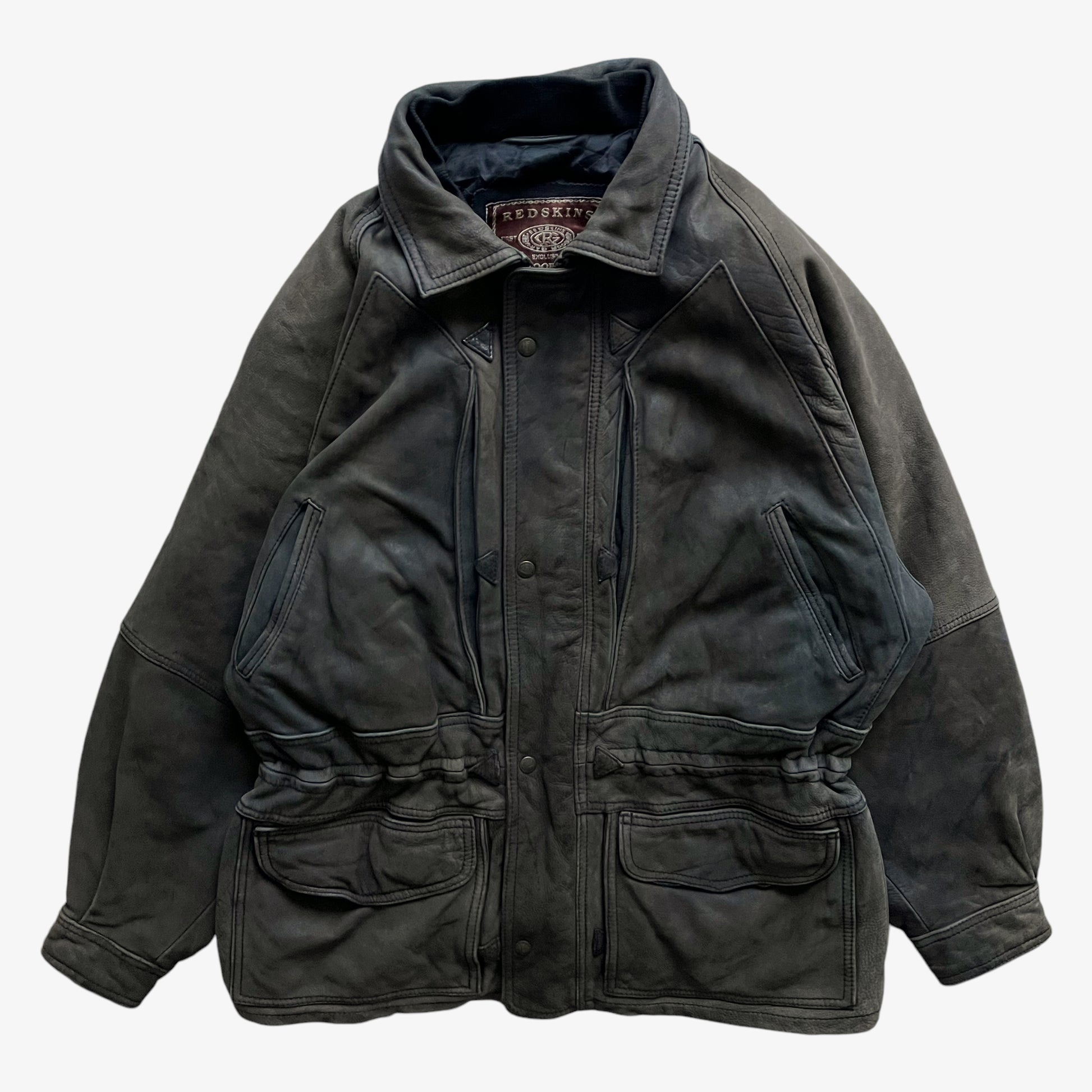 Vintage 90s Men's Redskins Outdoor Wear Khaki Leather Pilot Jacket.