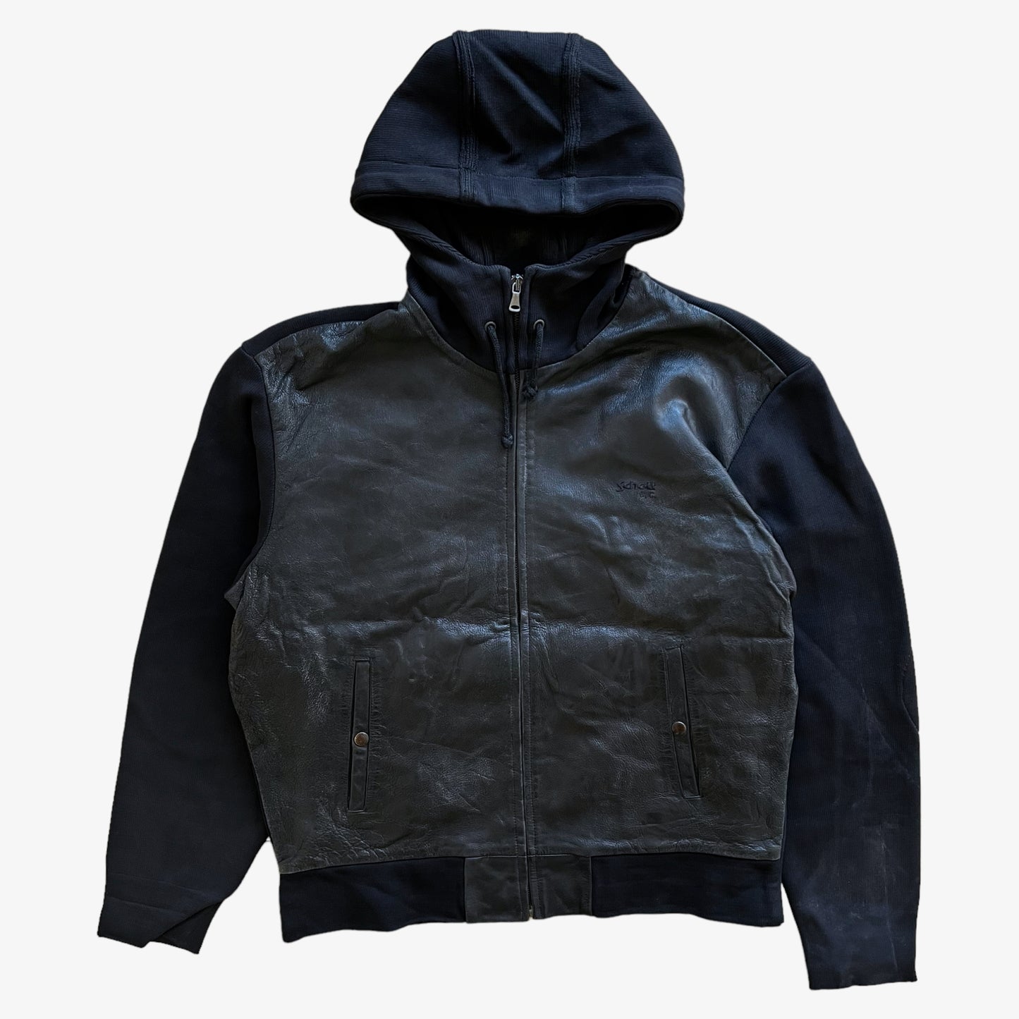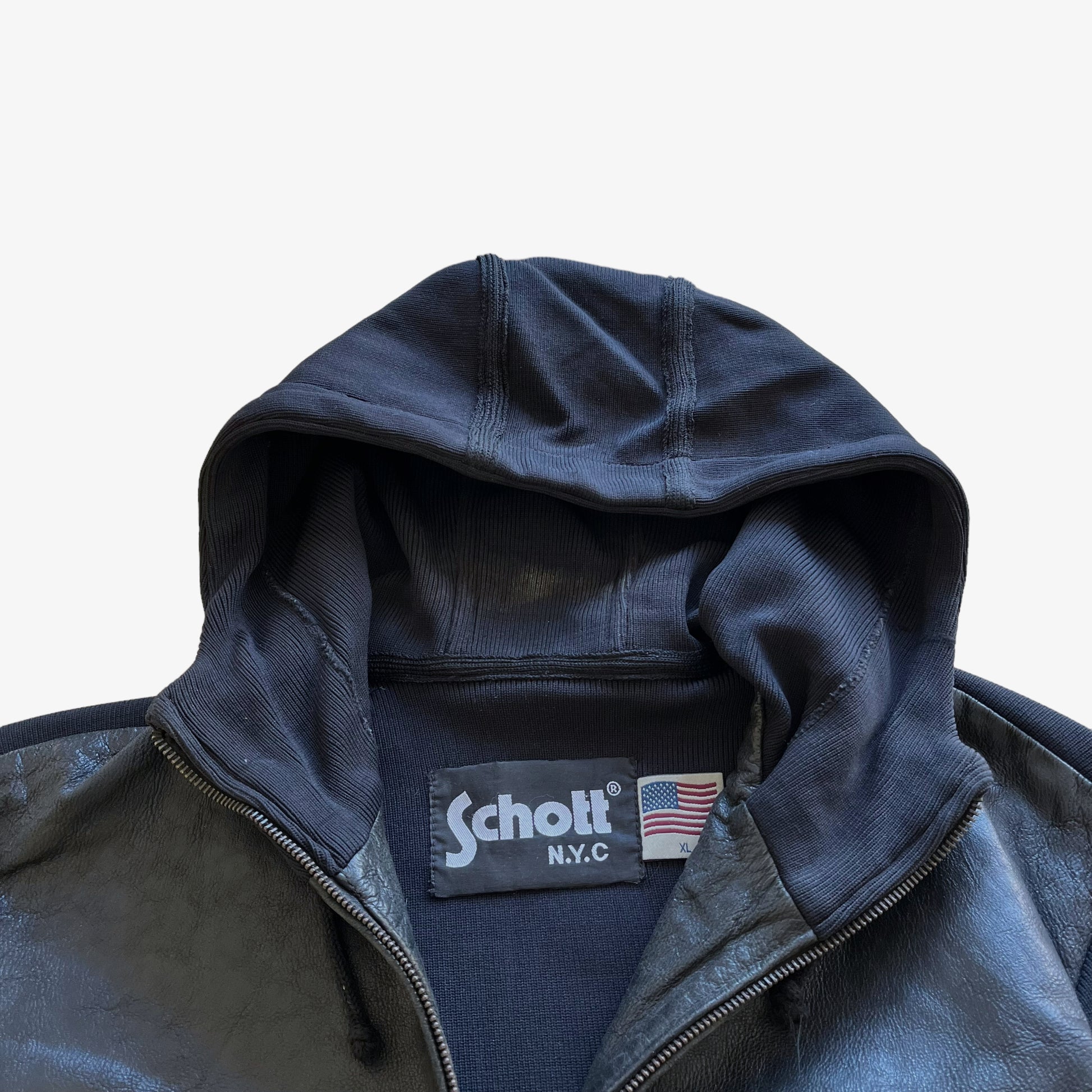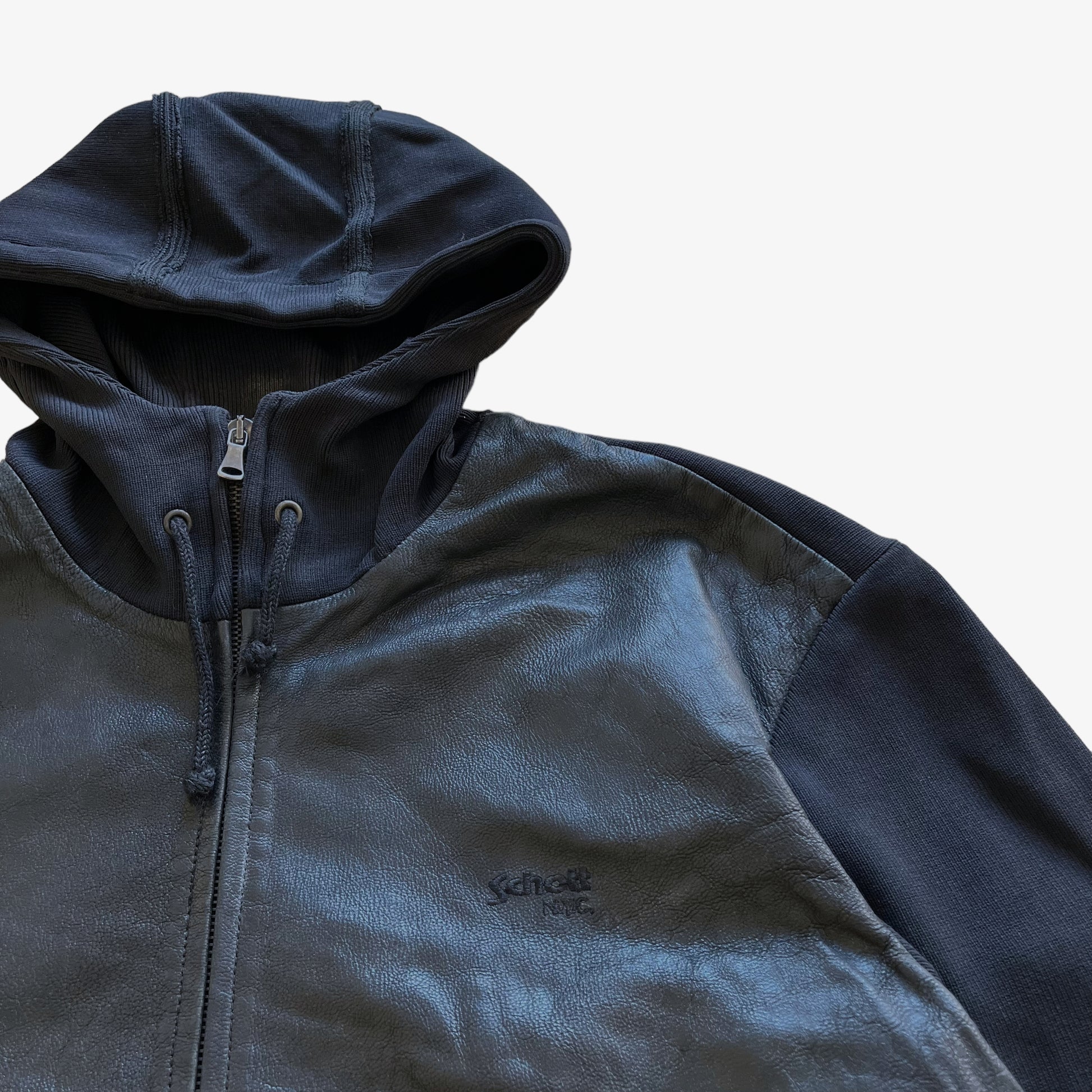 Vintage 90s Men's Schott Black Leather Hooded Jacket.