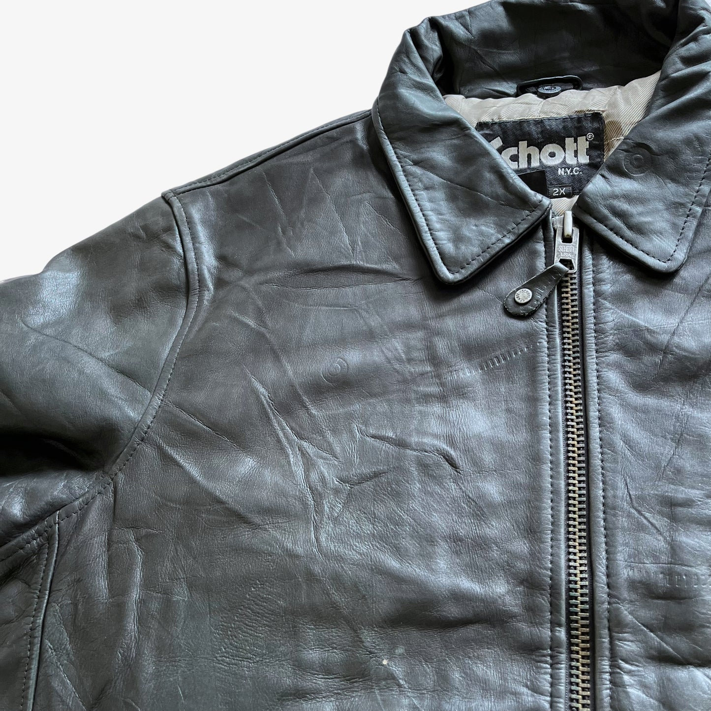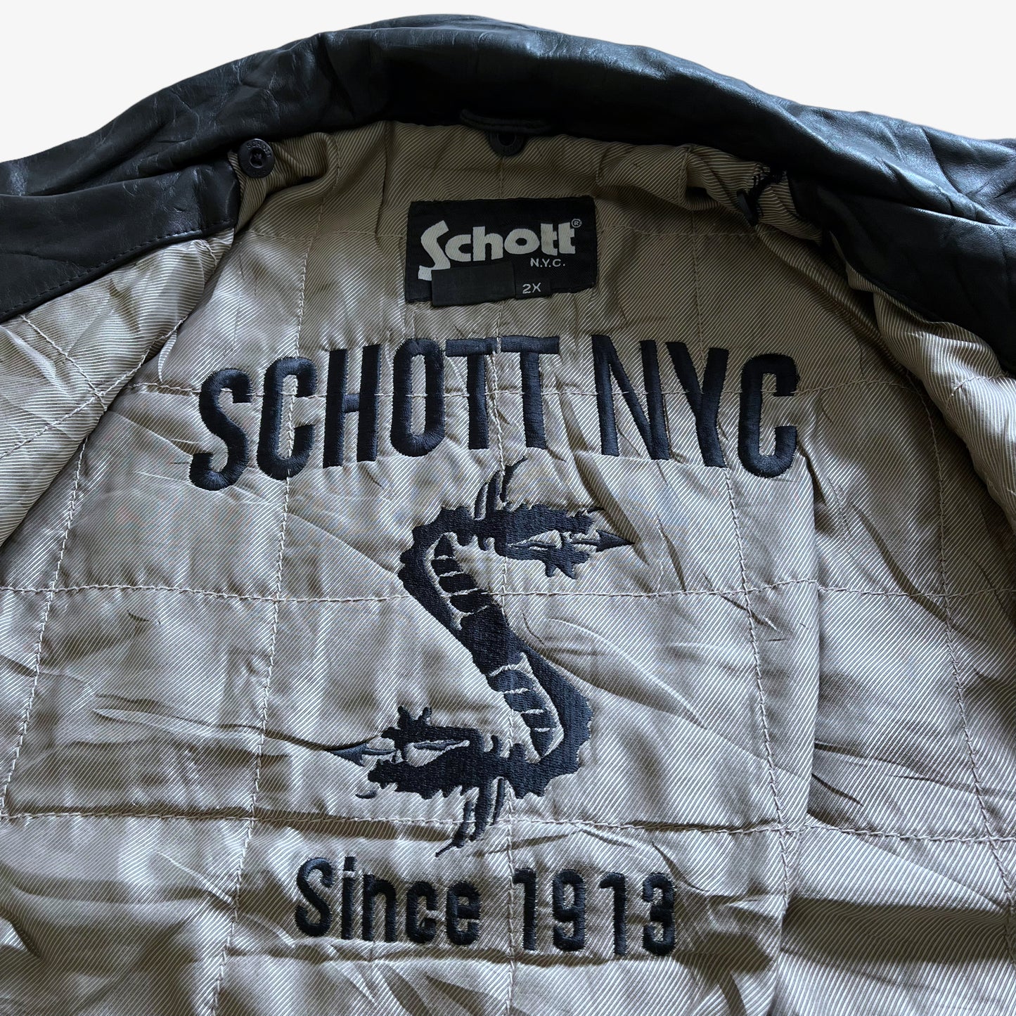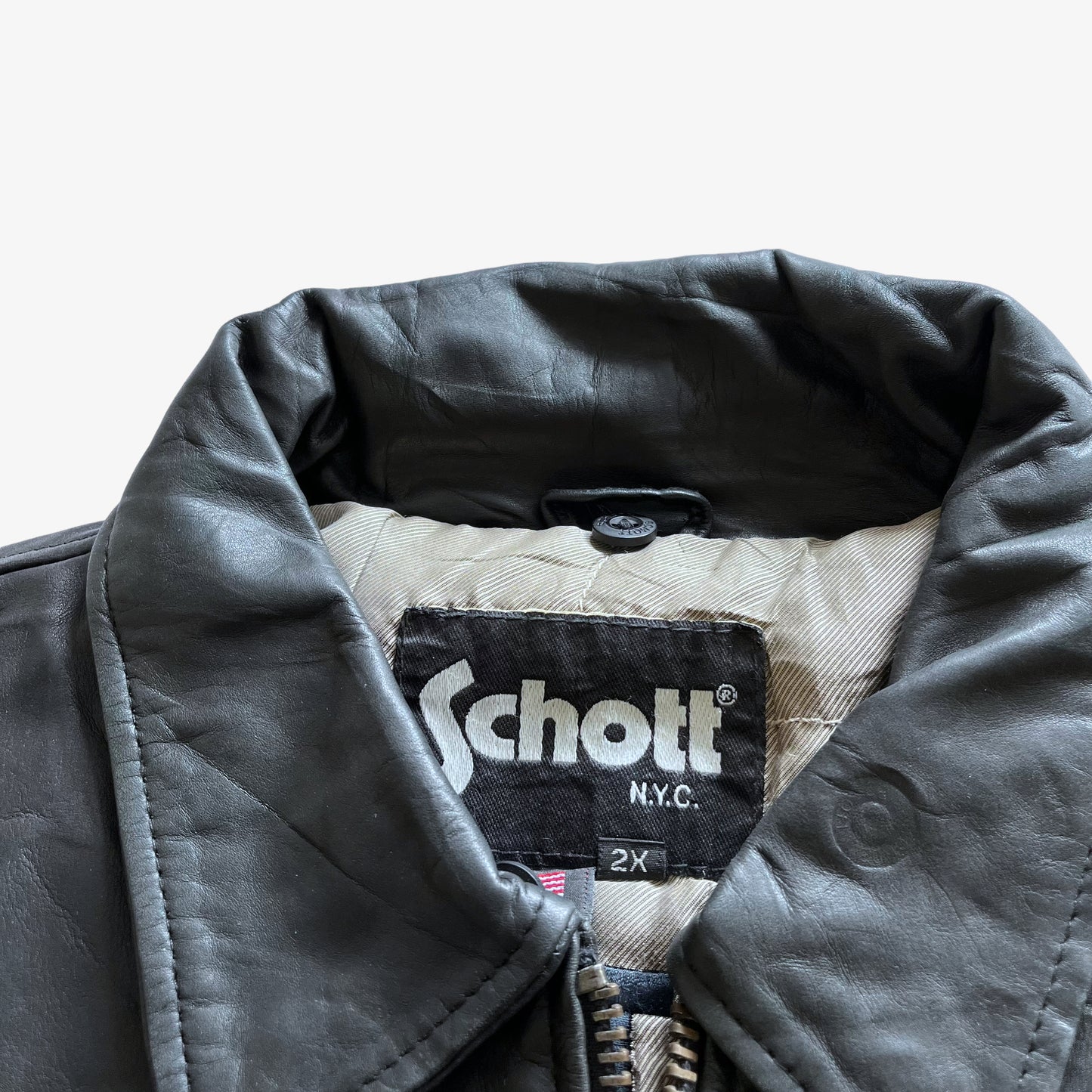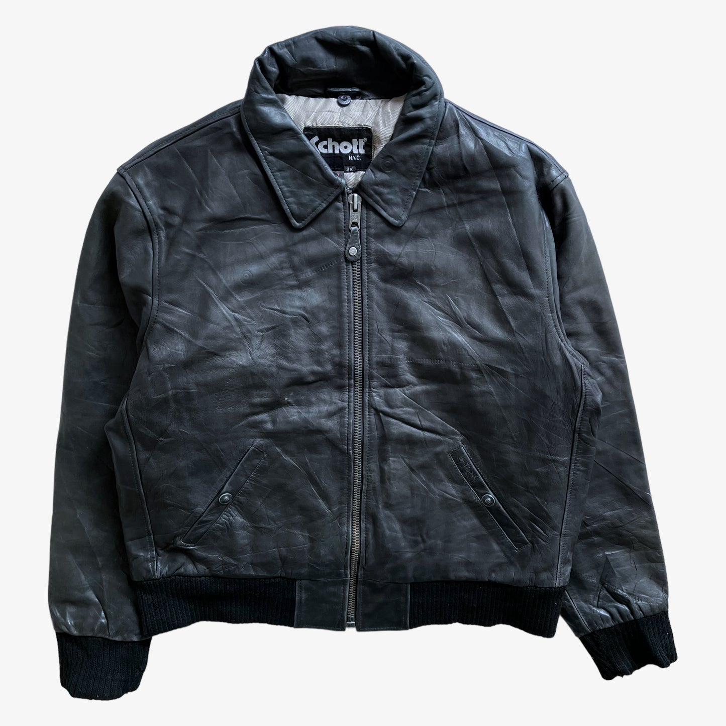 Vintage 90s Men's Schott NYC Black Leather Jacket.