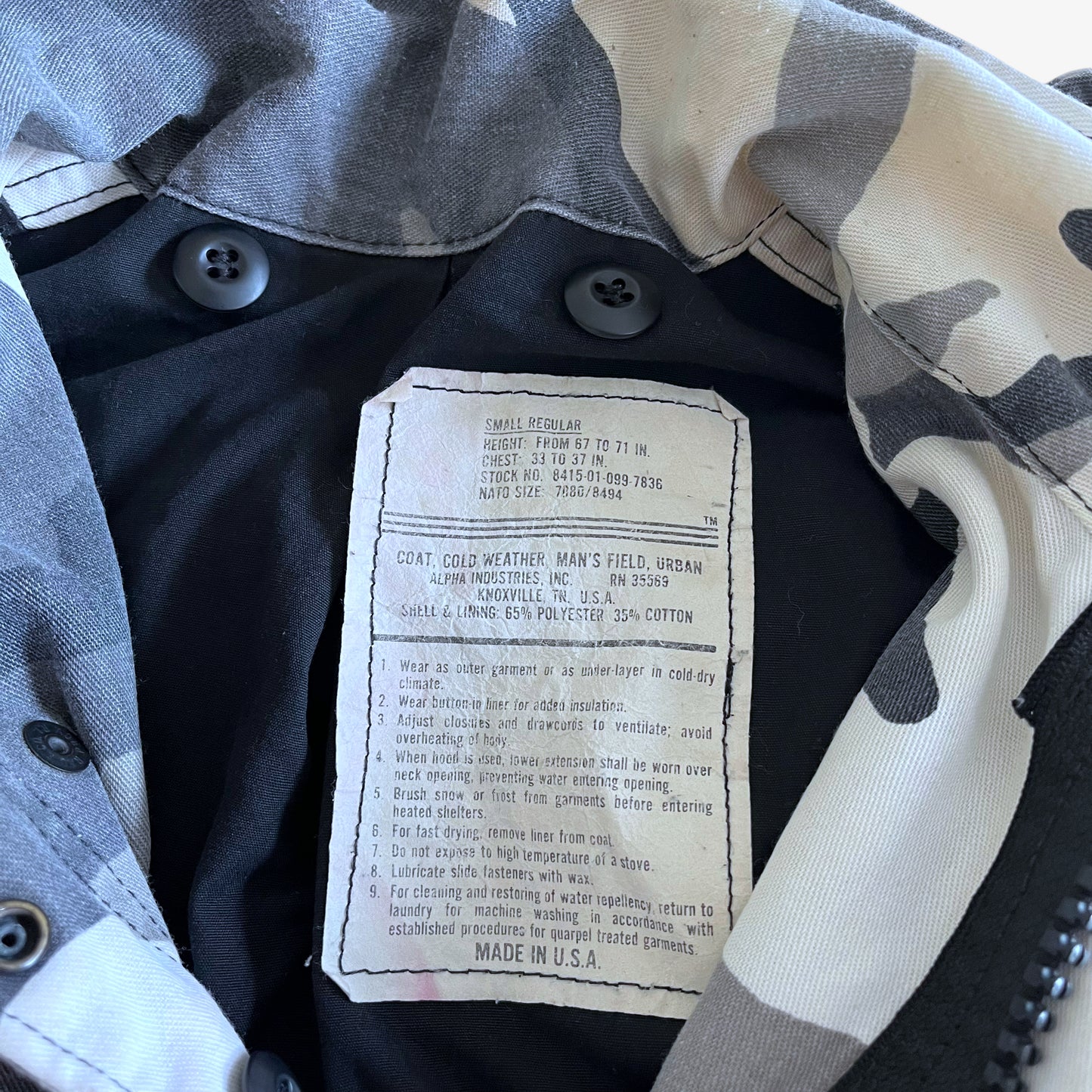 Vintage Y2K Men's Alpha Industries Cold Weather Snow Camouflage Urban Field Jacket.
