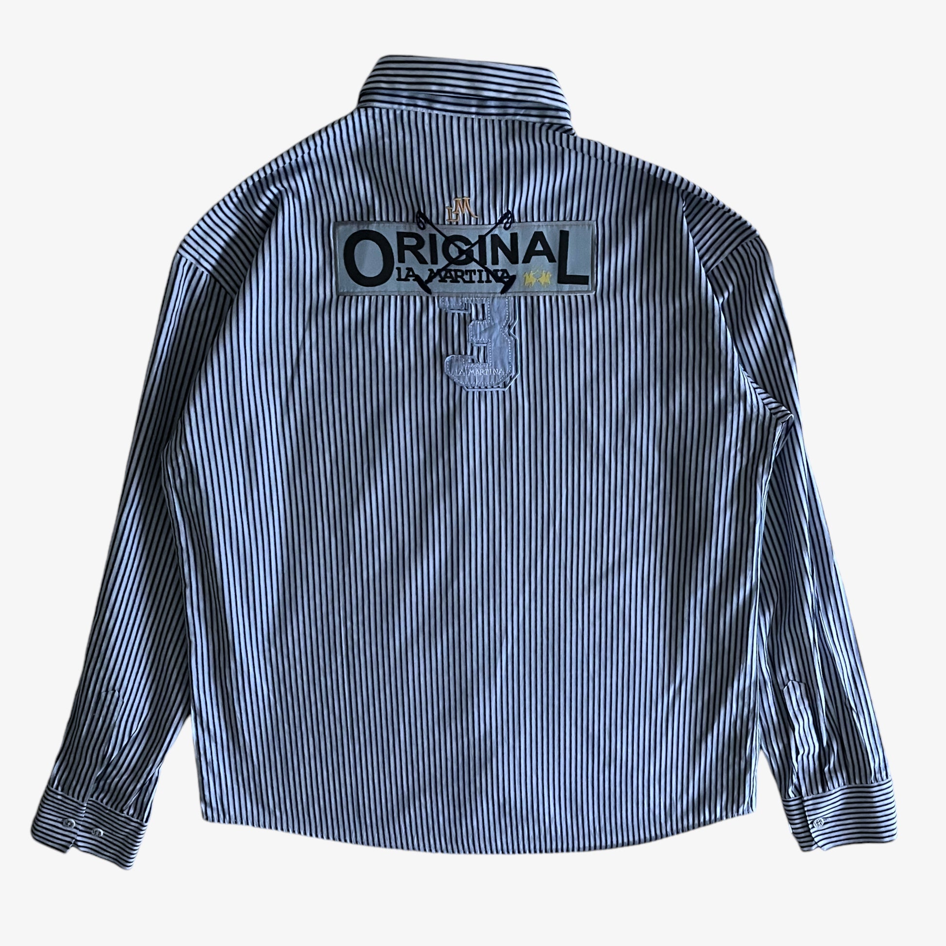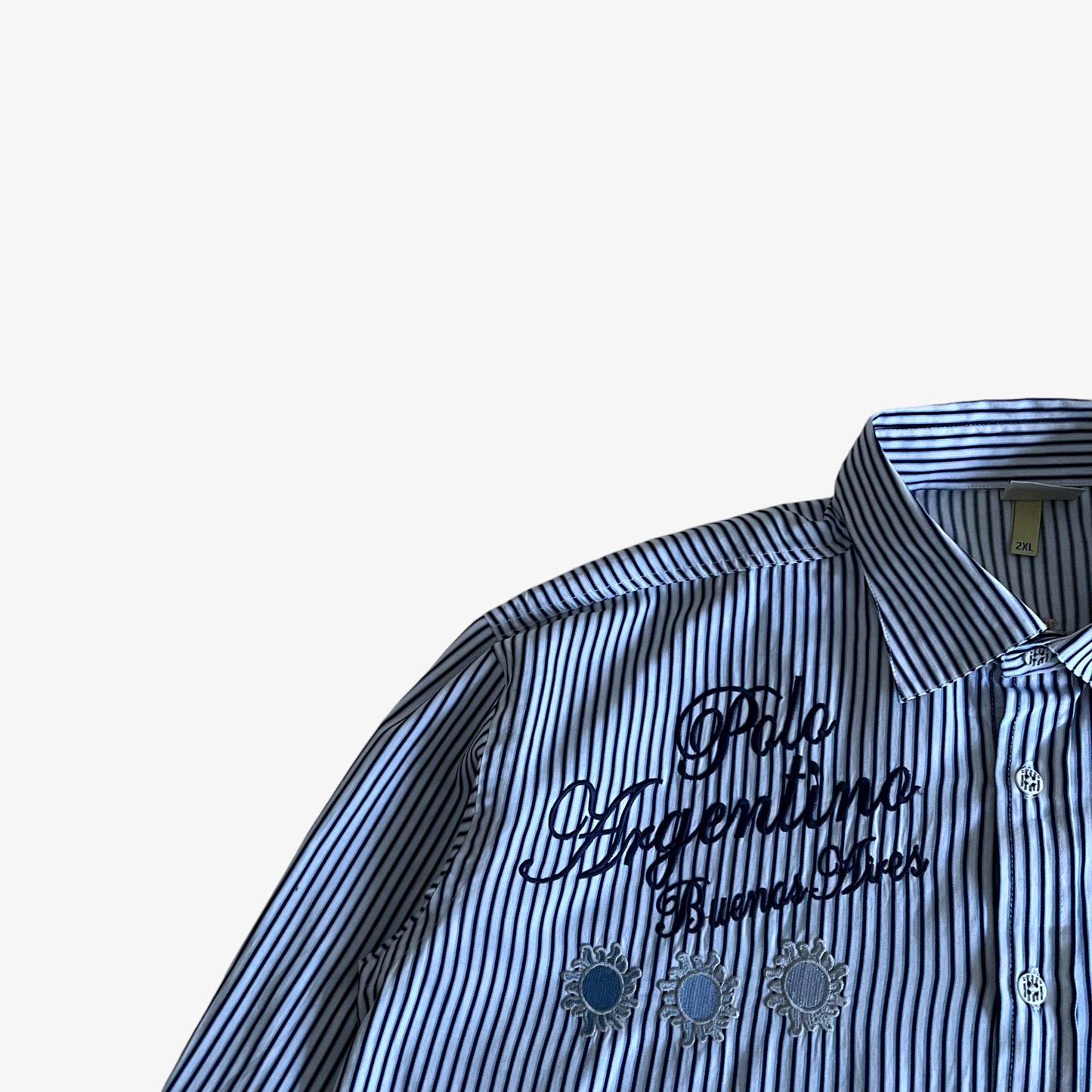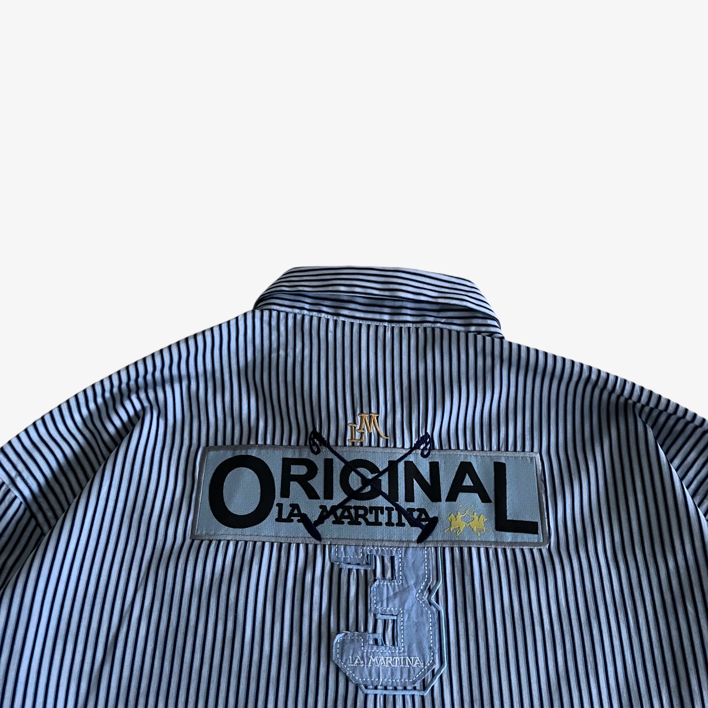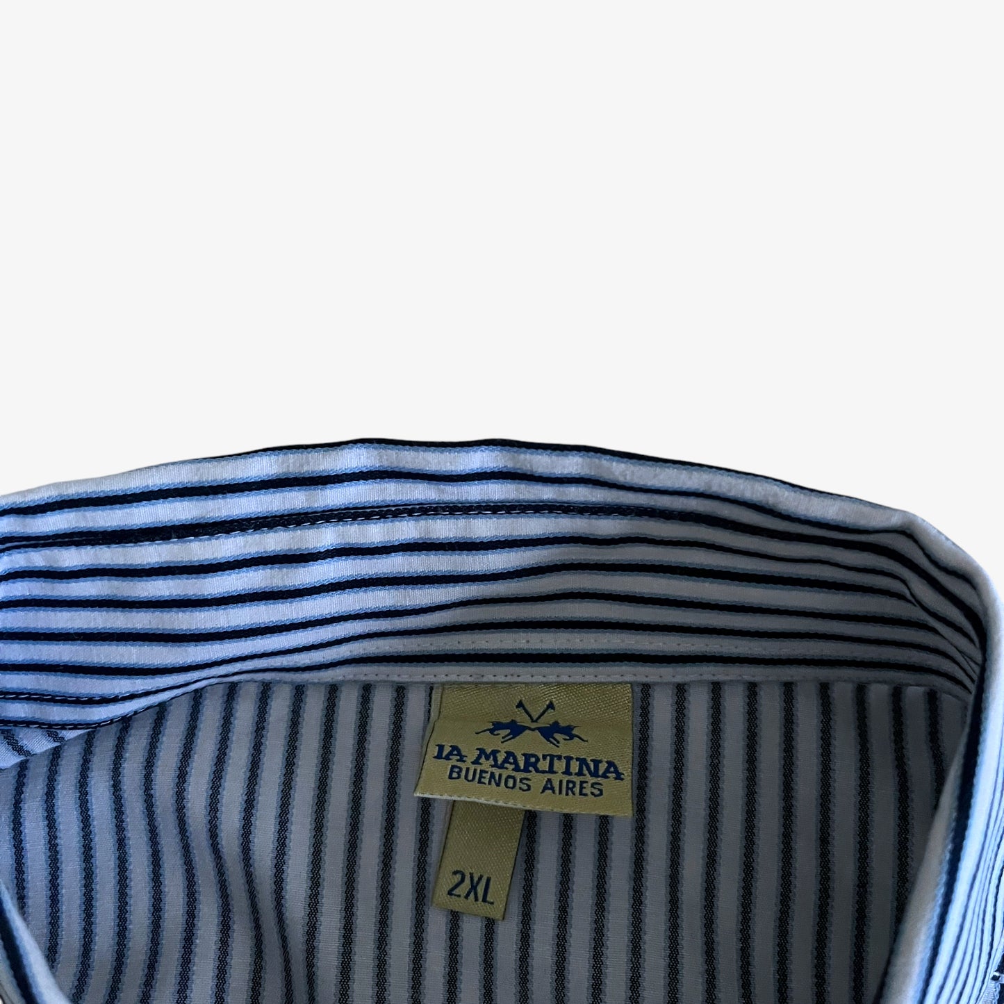 Vintage Y2K Men's La Martina Argentina Polo Team Blue And White Striped Shirt.