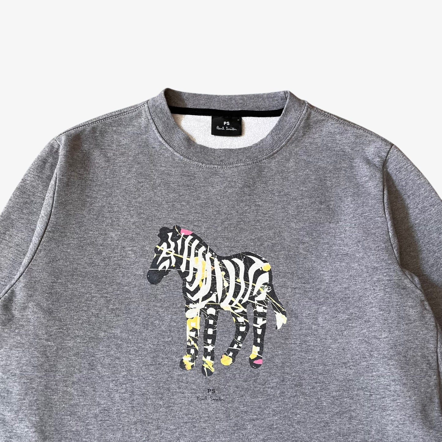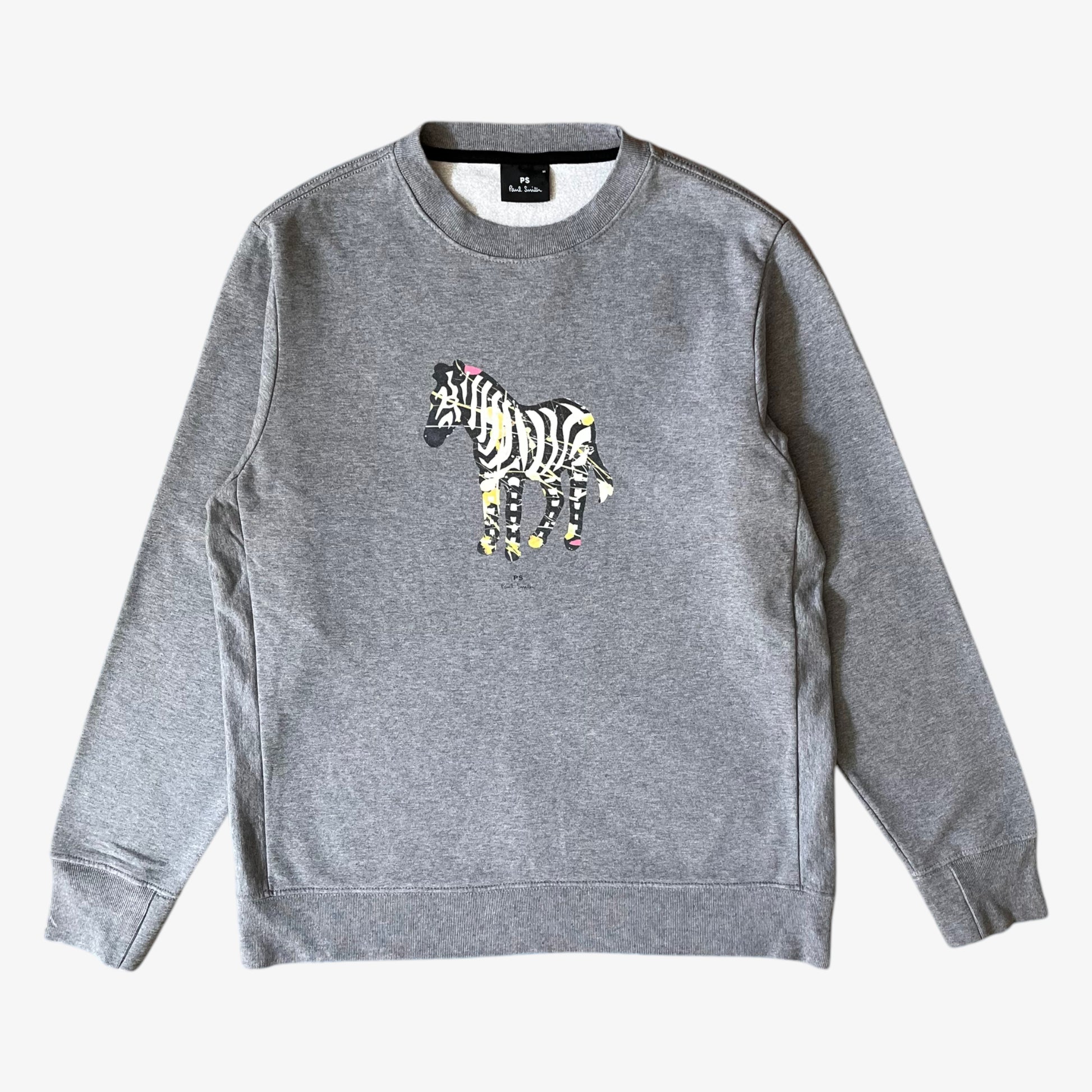 Vintage Y2K Men's Paul Smith Paint Splatter Zebra Print Grey Sweatshirt.