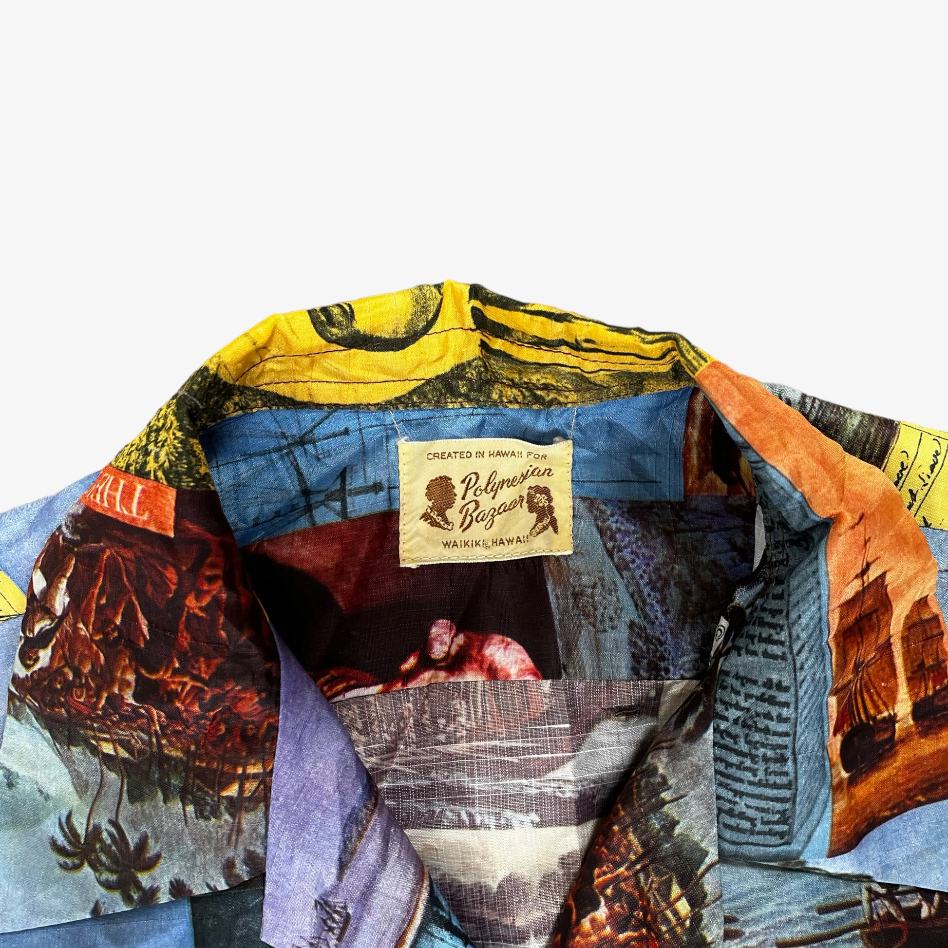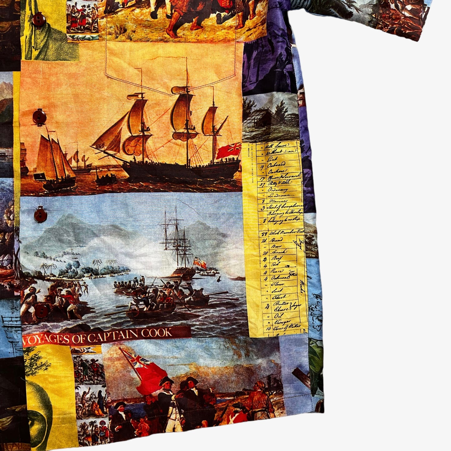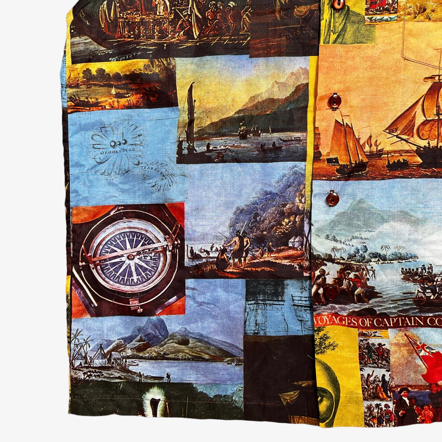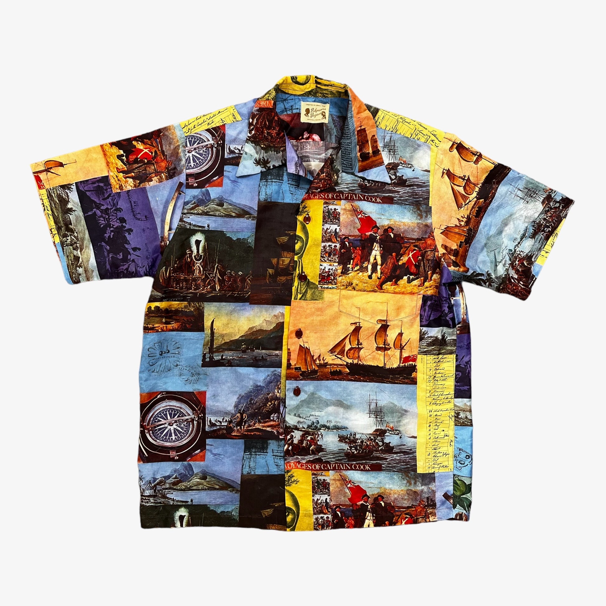 Vintage 60s Polynesian Bazaar Historic Captains Short Sleeve Shirt.