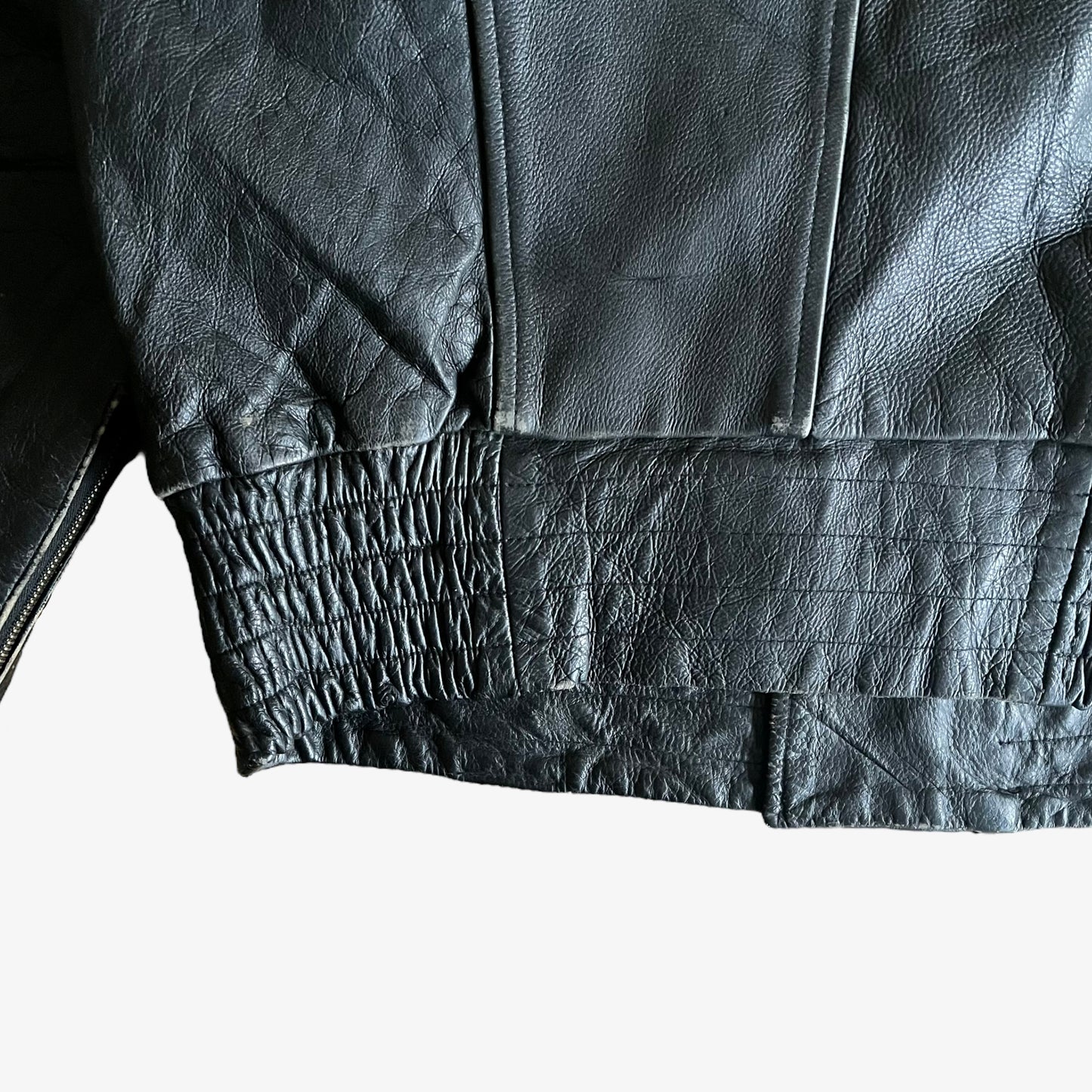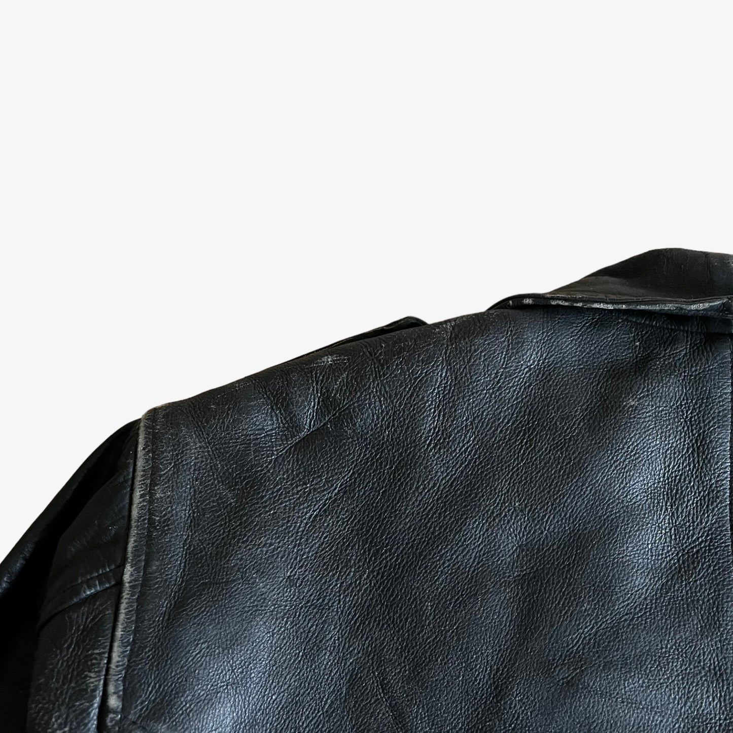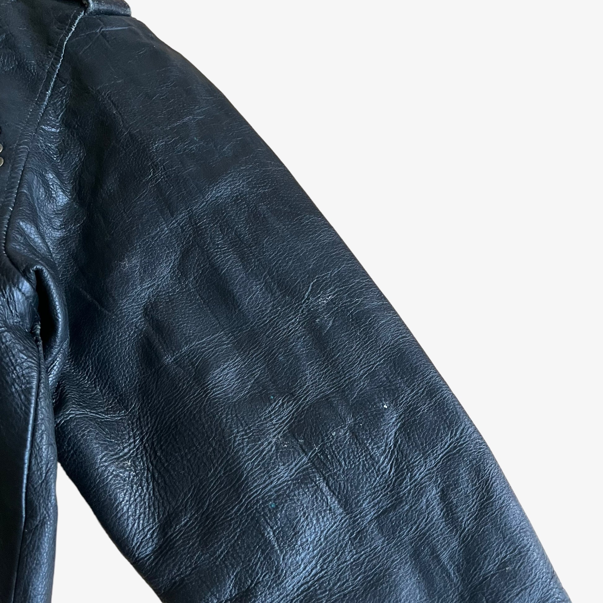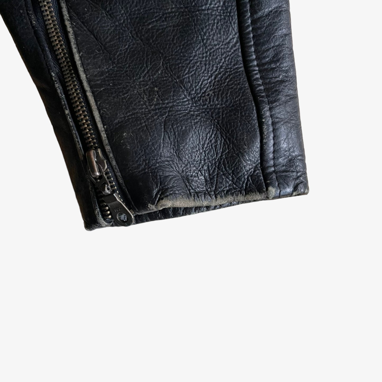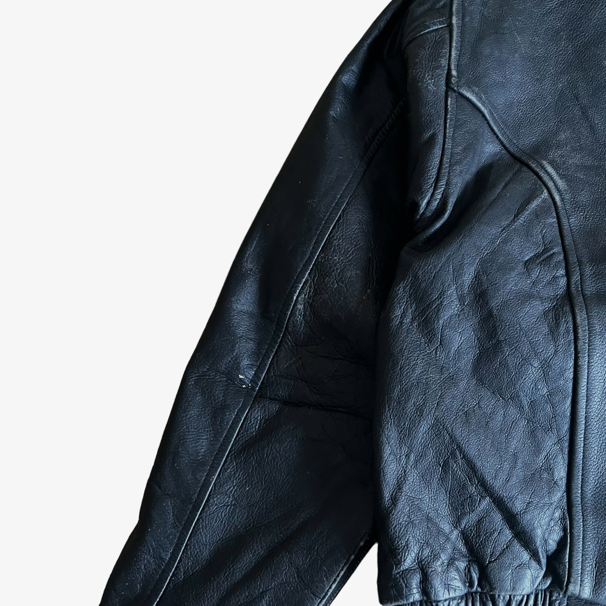 Vintage 90s Men's Black Leather Biker Jacket Featuring An Embroidered Eagle.