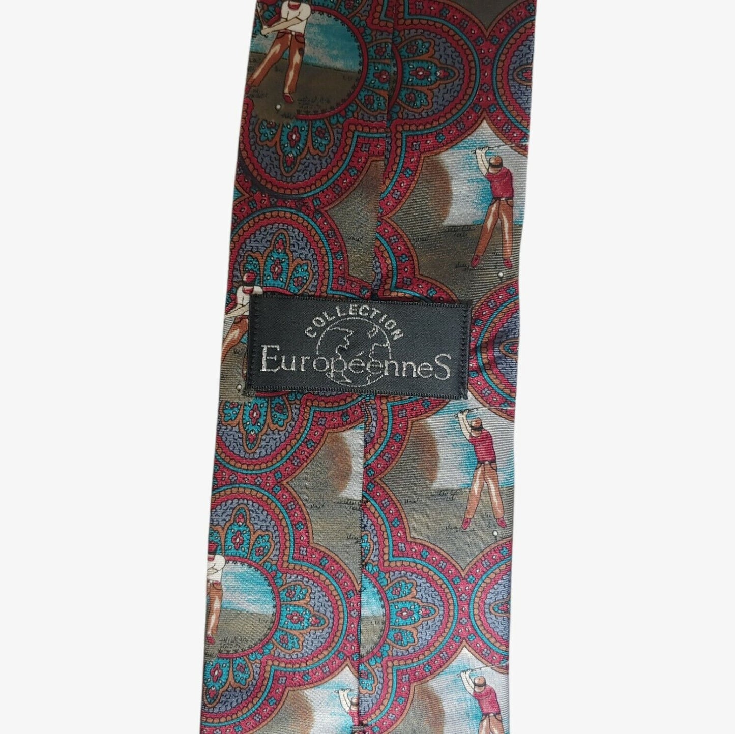 Europeennes Geometric Paisley Golf Print Silk Tie