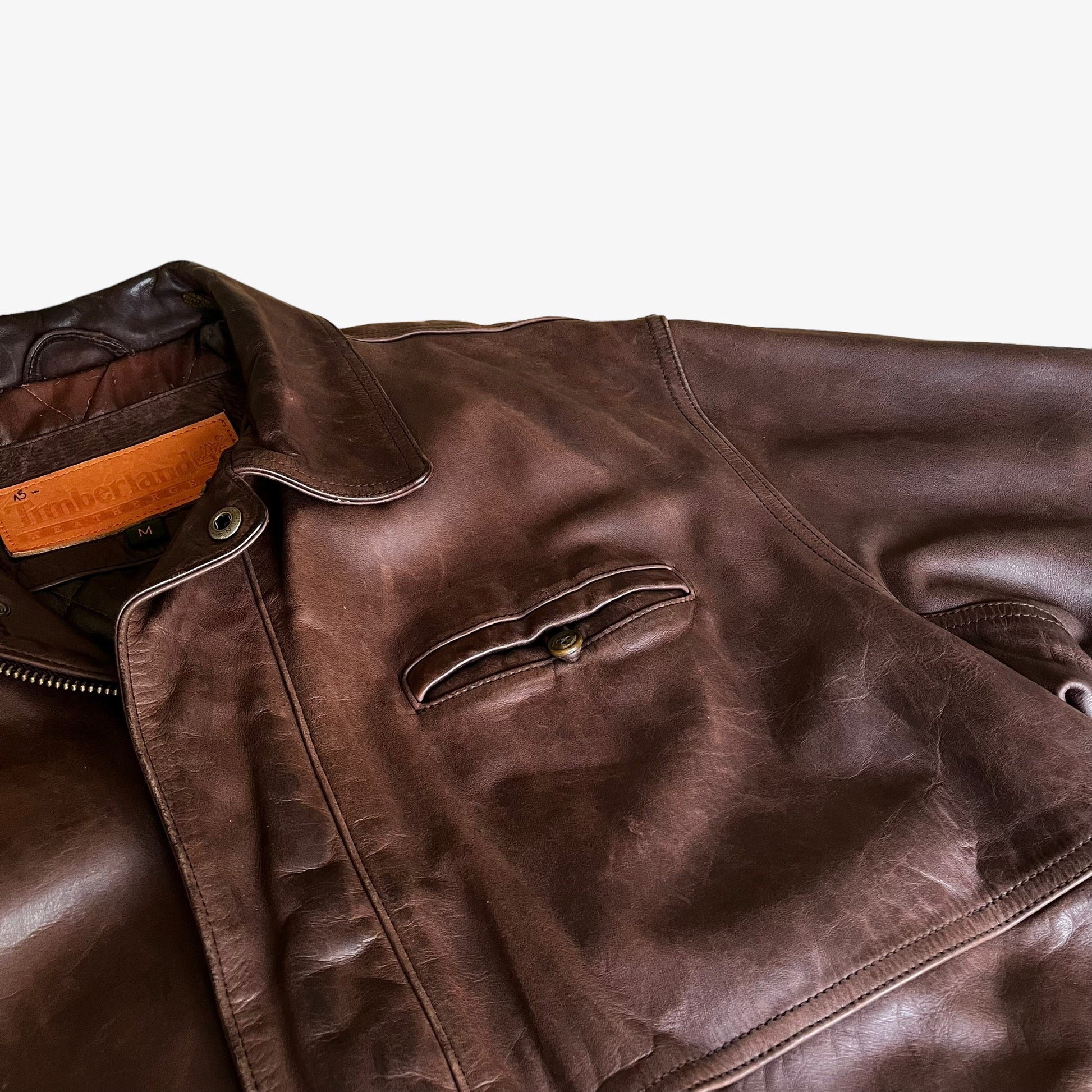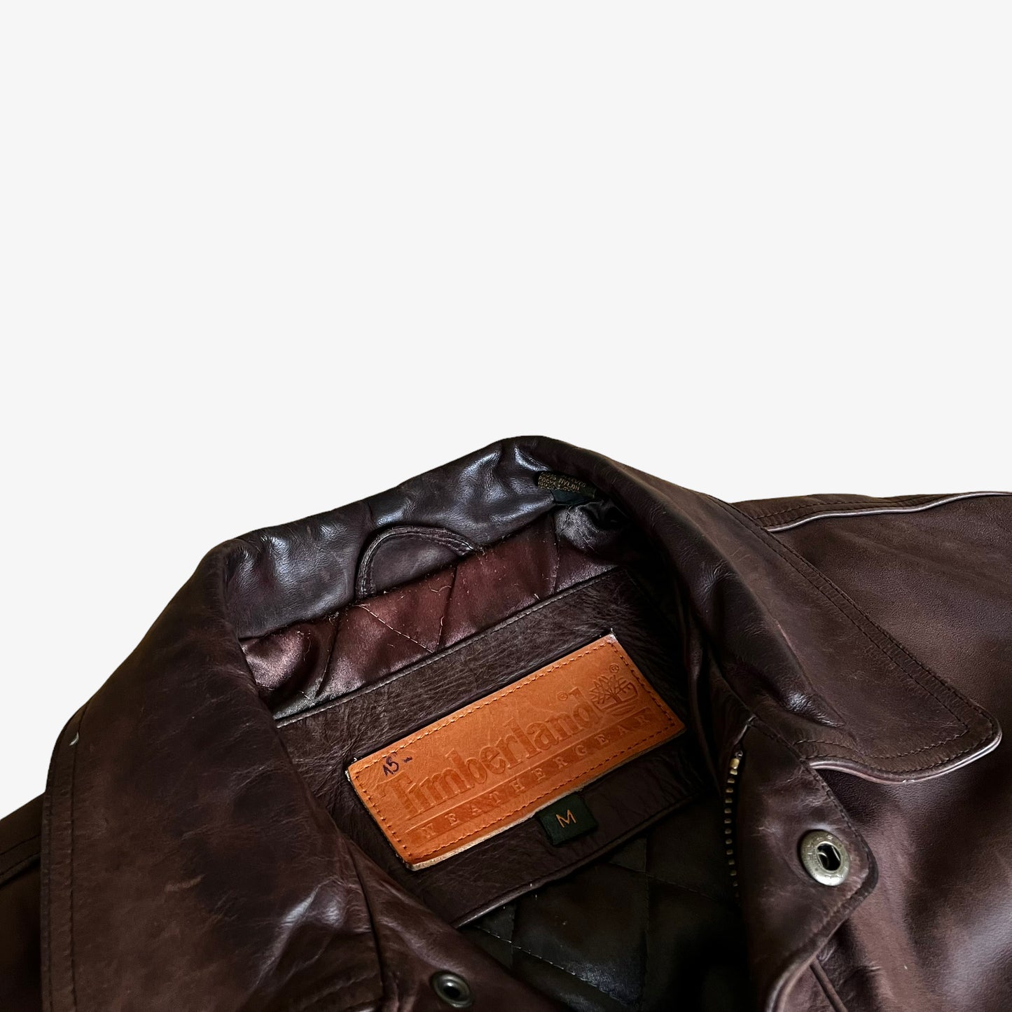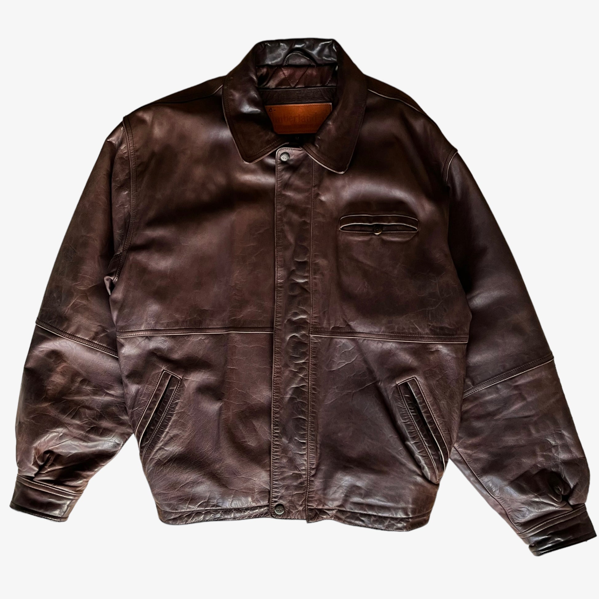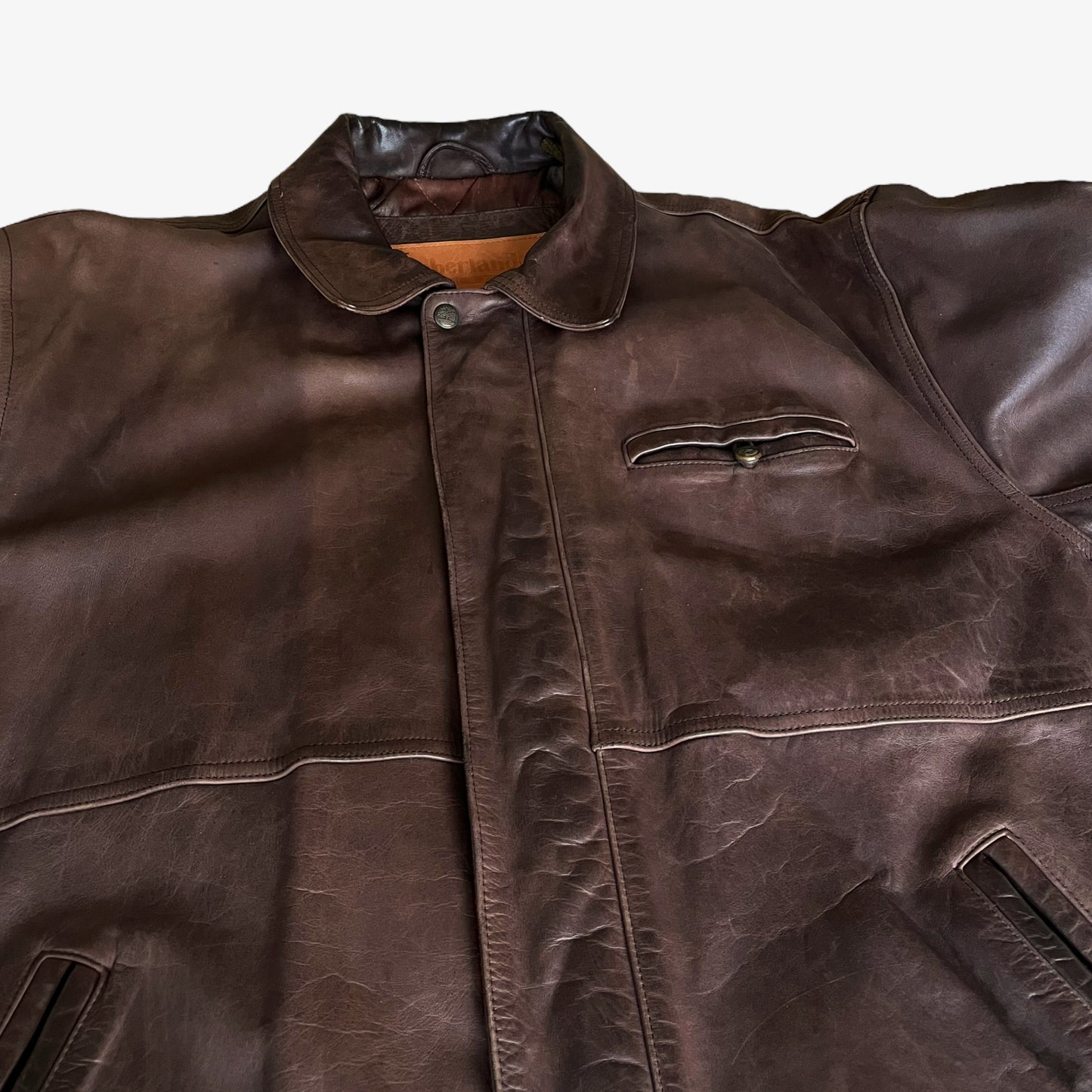 Vintage 90s Men's Timberland Brown Leather Jacket.