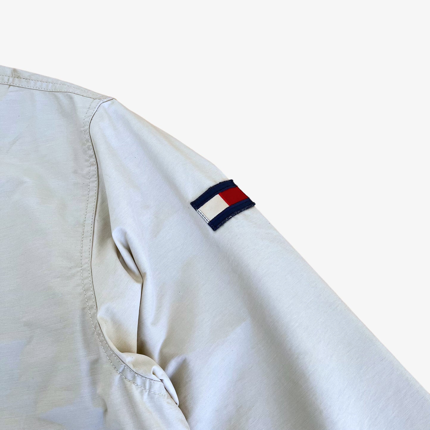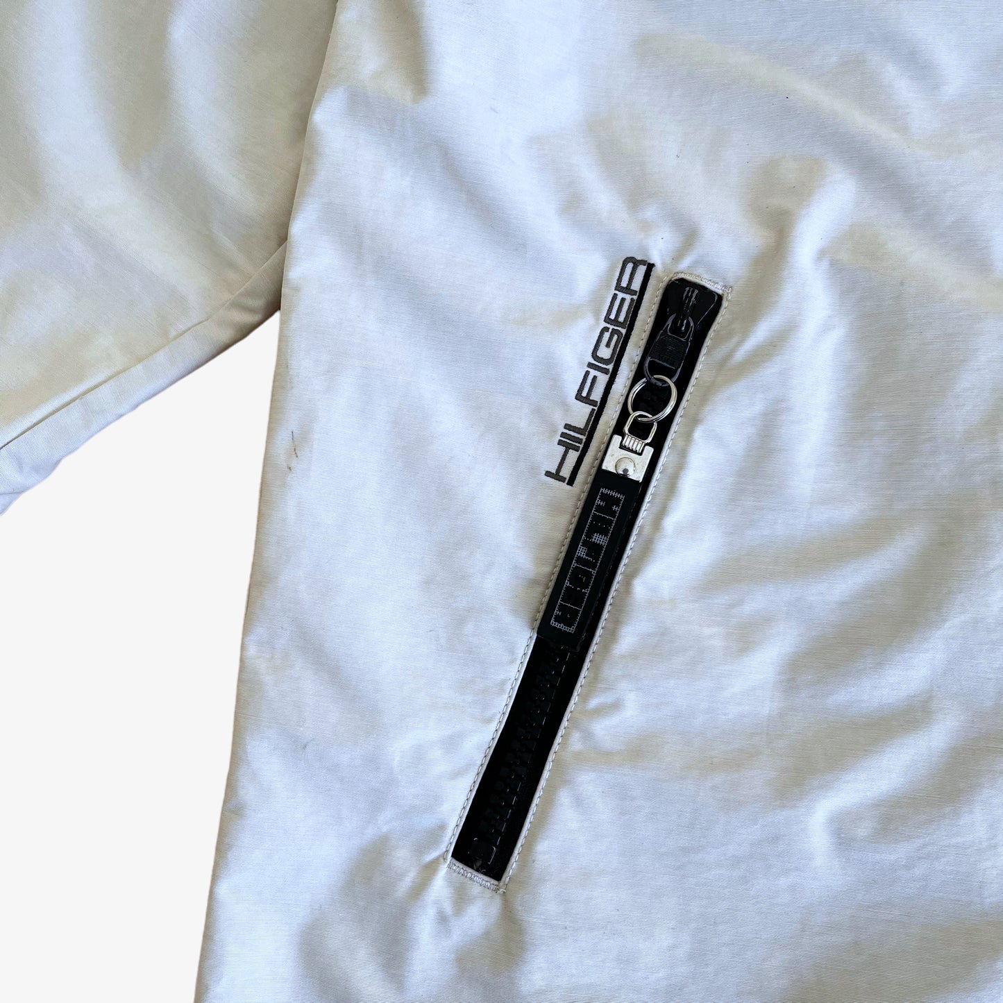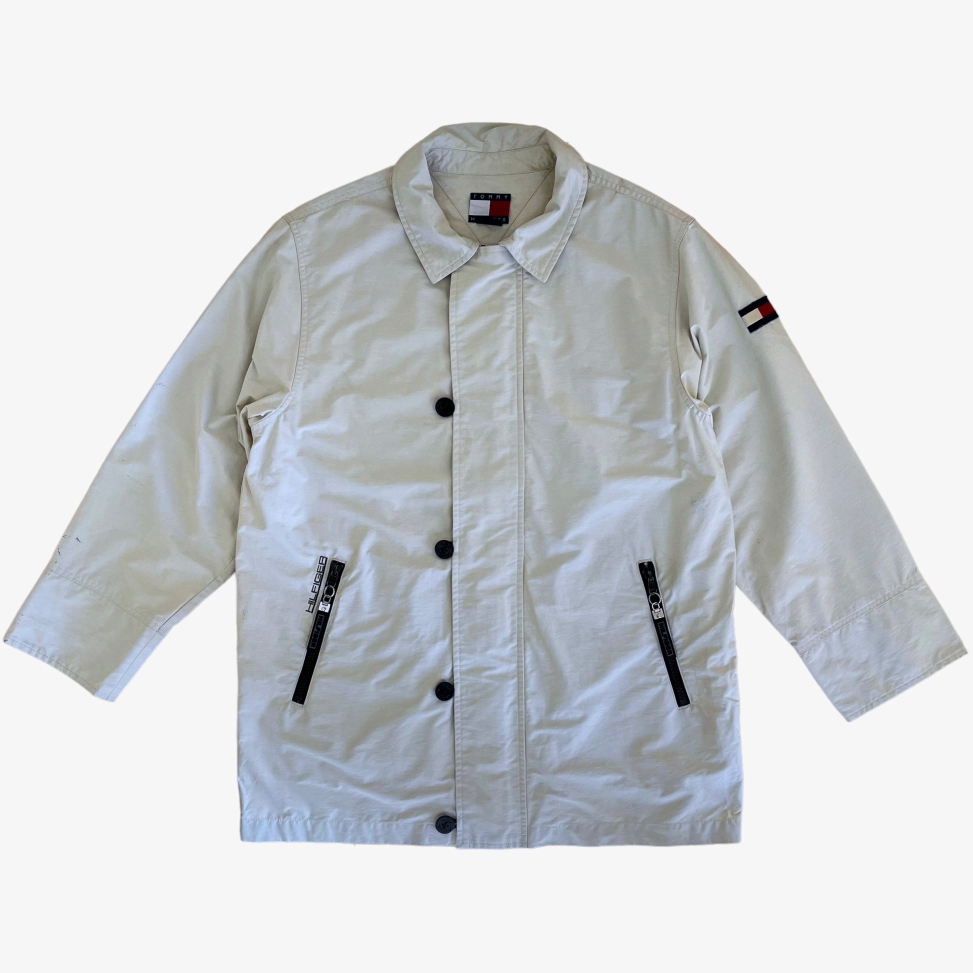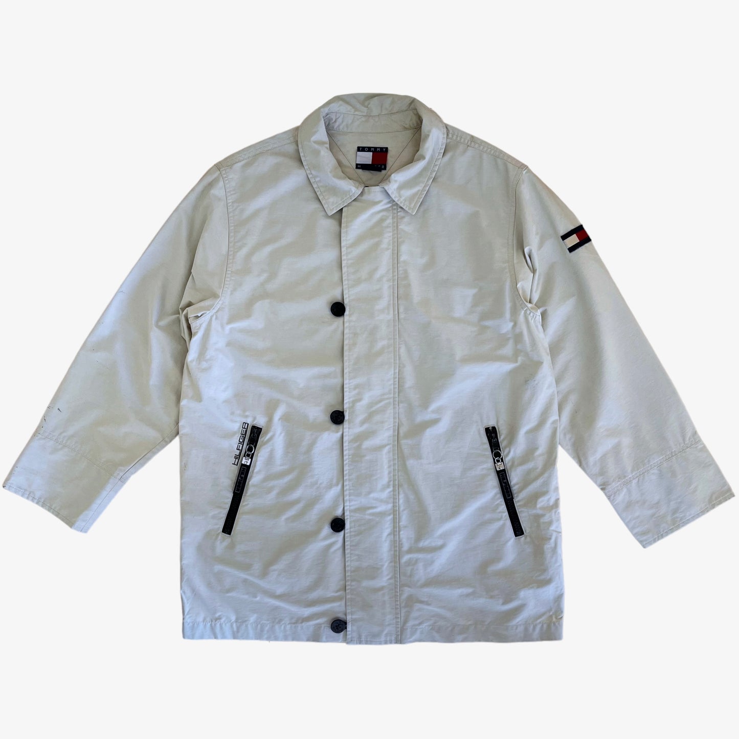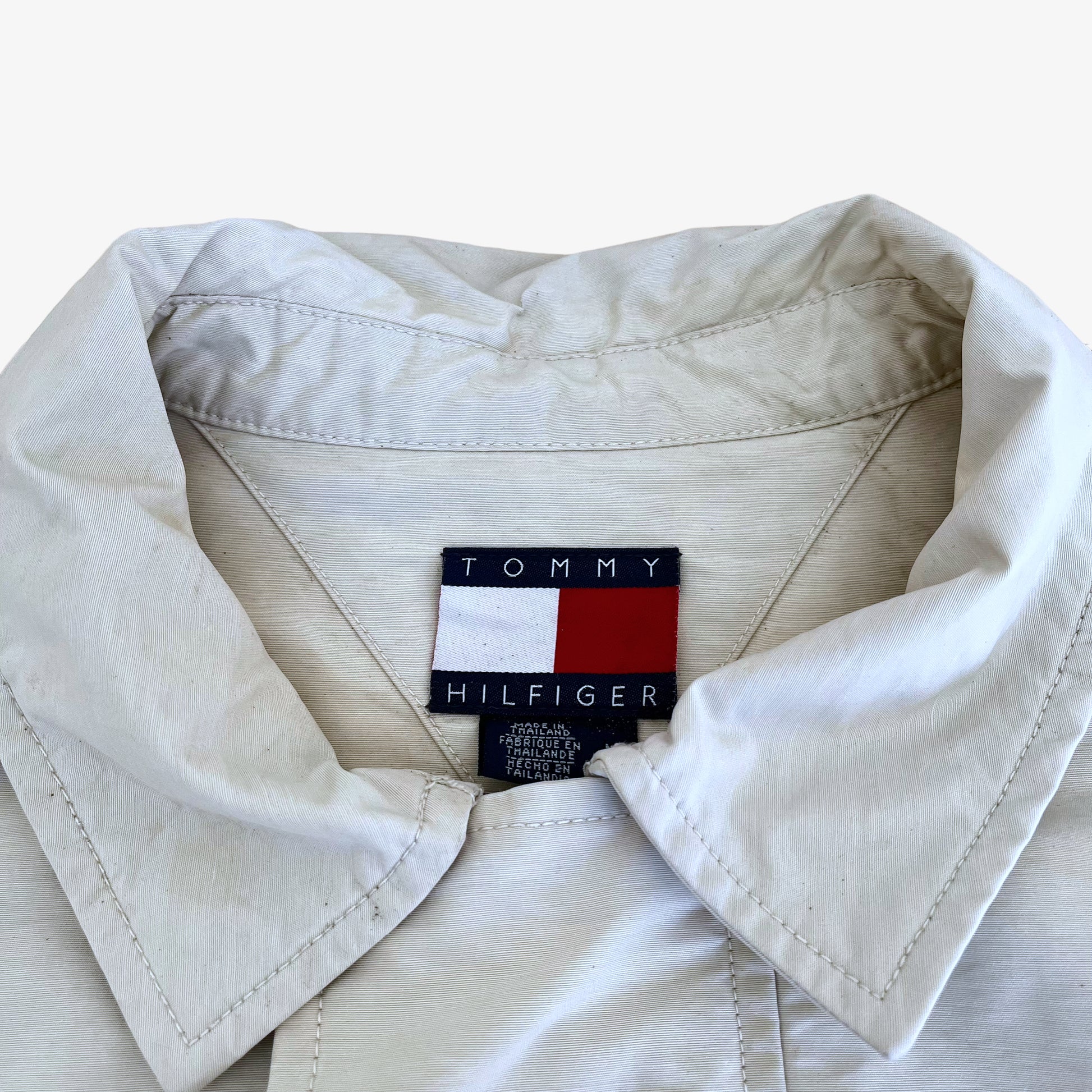 Vintage 90s Men's Tommy Hilfiger White Utility Trench Coat.