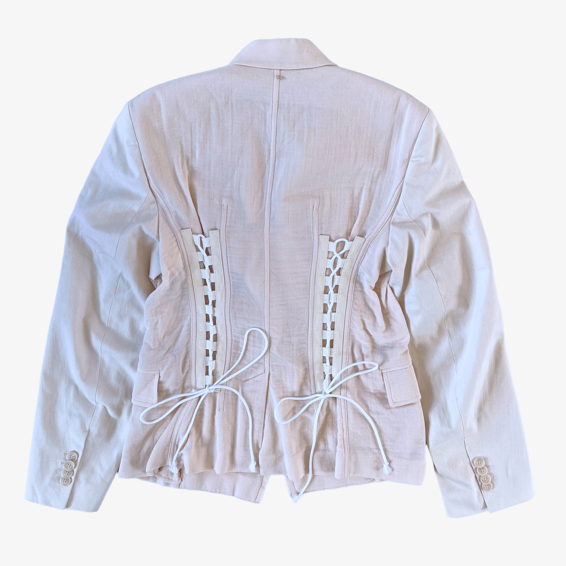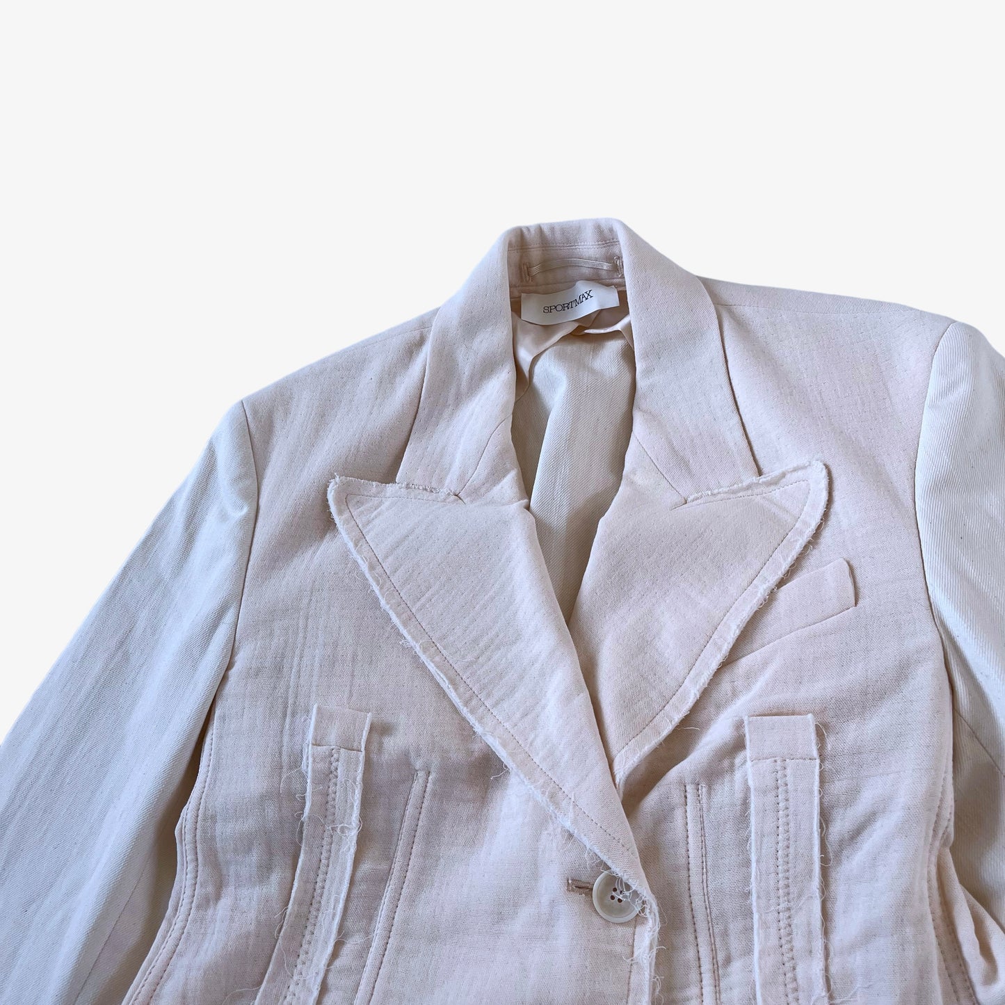 Women's Max Mara Sportmax Cabina Pale Pink Blazer With Cream Sleeves & Back Fasteners.