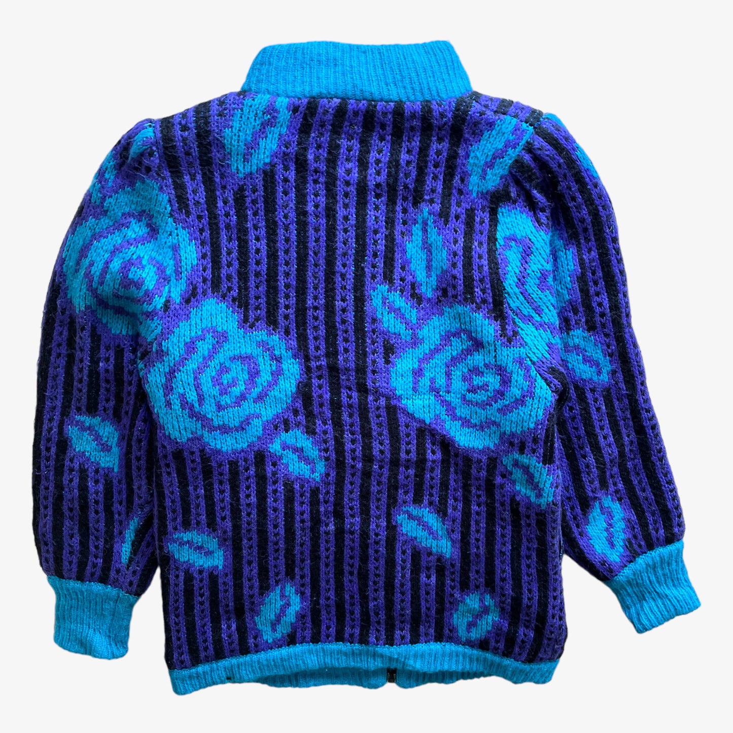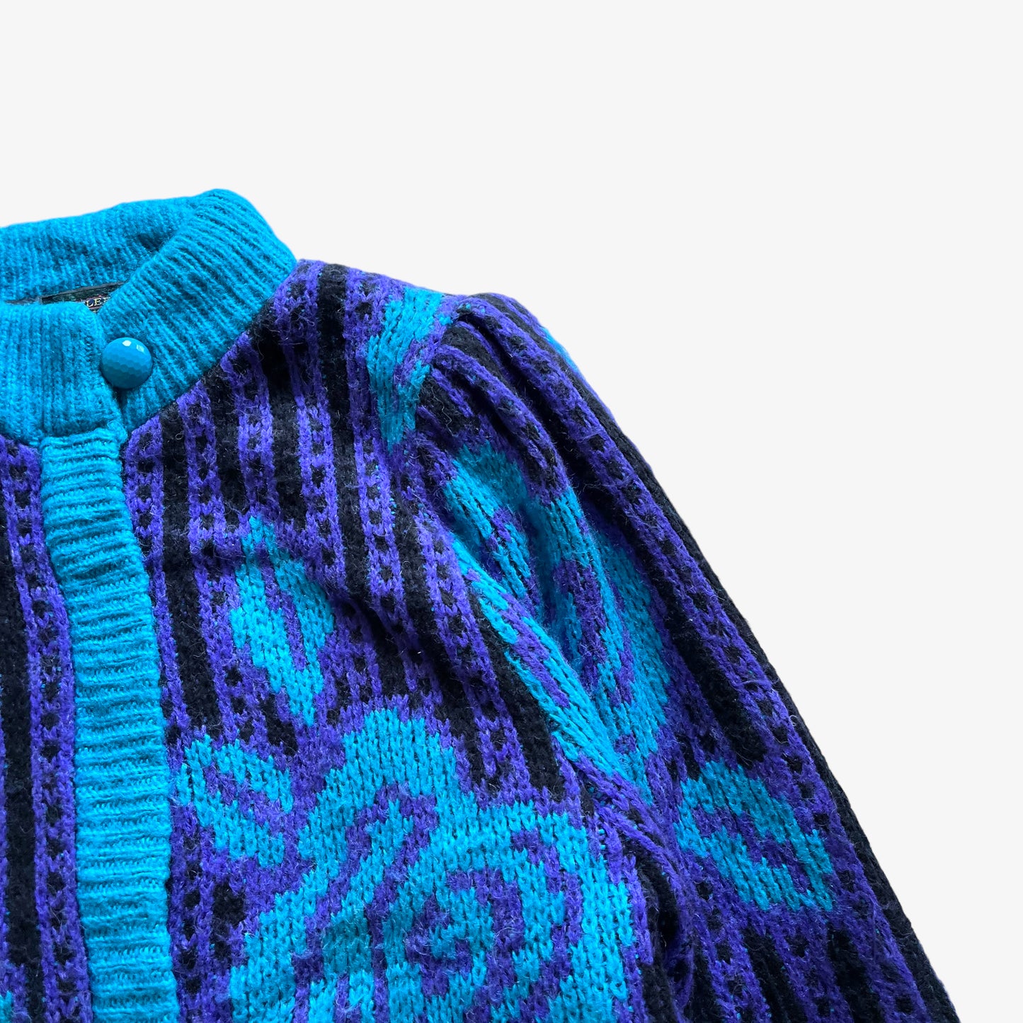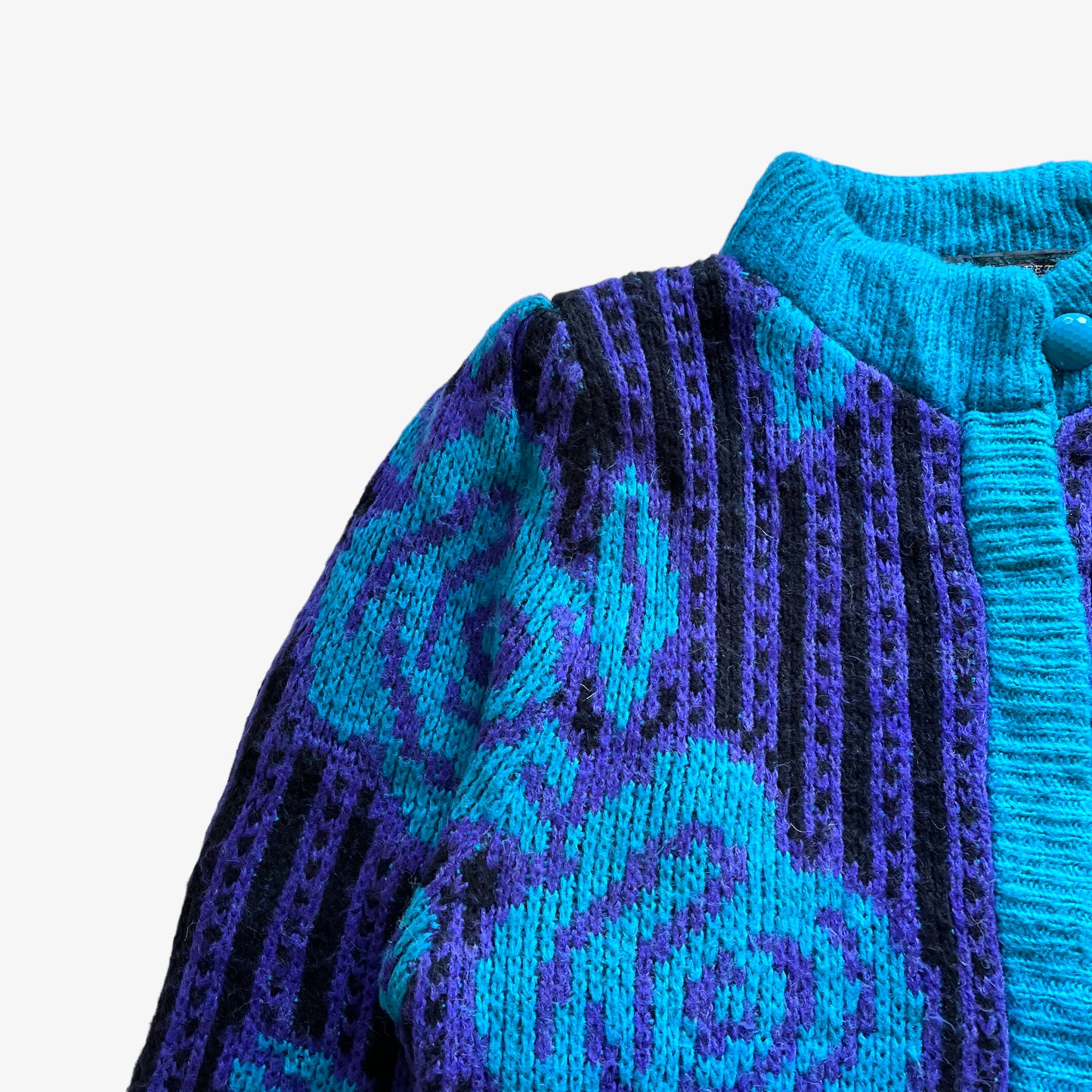 Vintage 80s Women's Fleet Street Purple & Blue Abstract Floral Print Wool Jacket.
