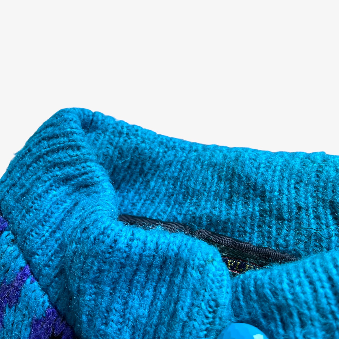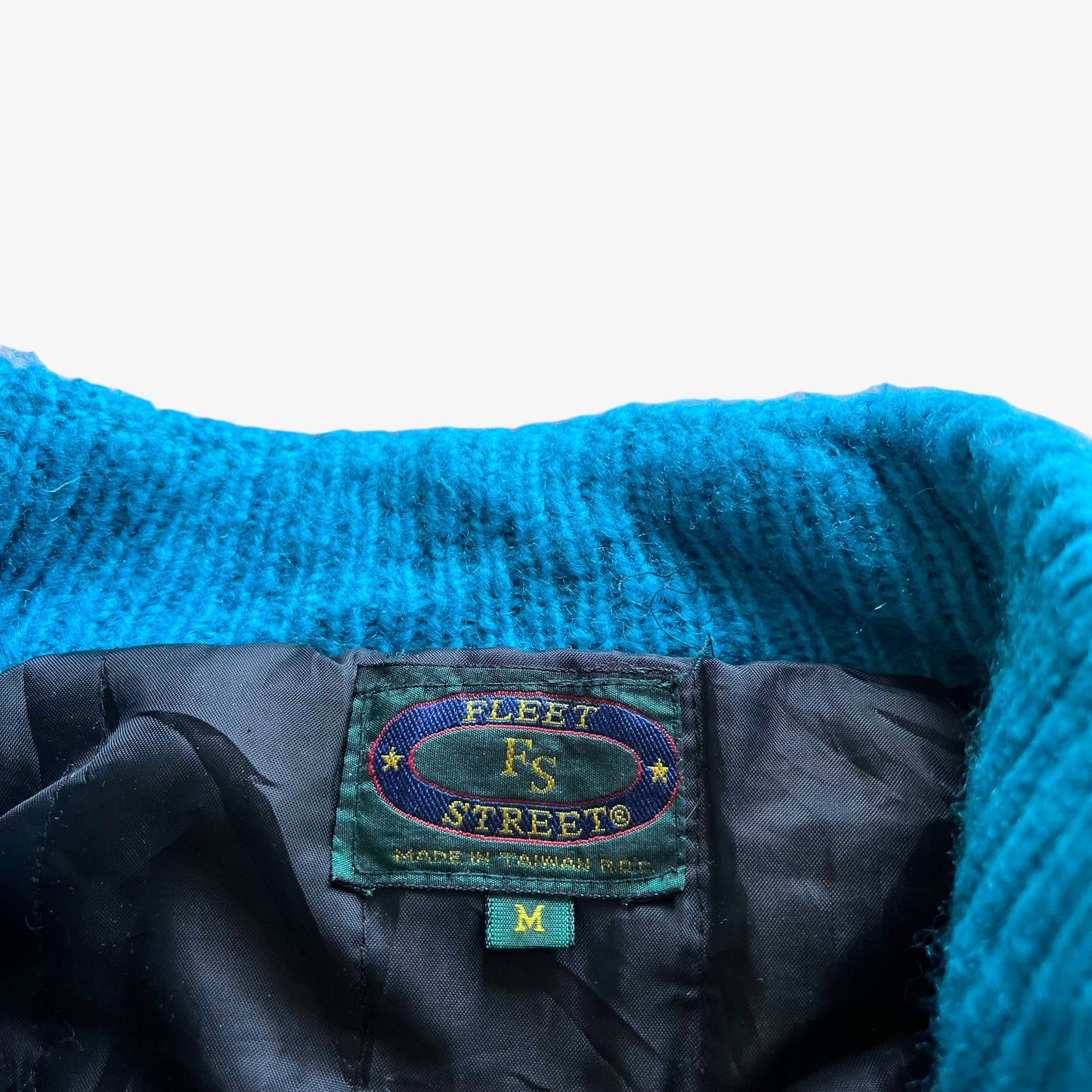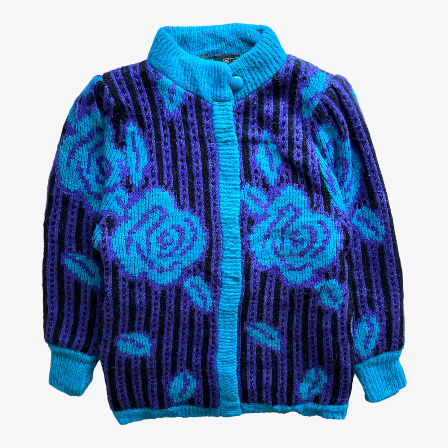 Vintage 80s Women's Fleet Street Purple & Blue Abstract Floral Print Wool Jacket.
