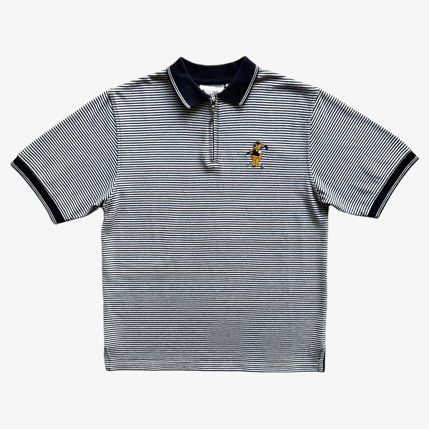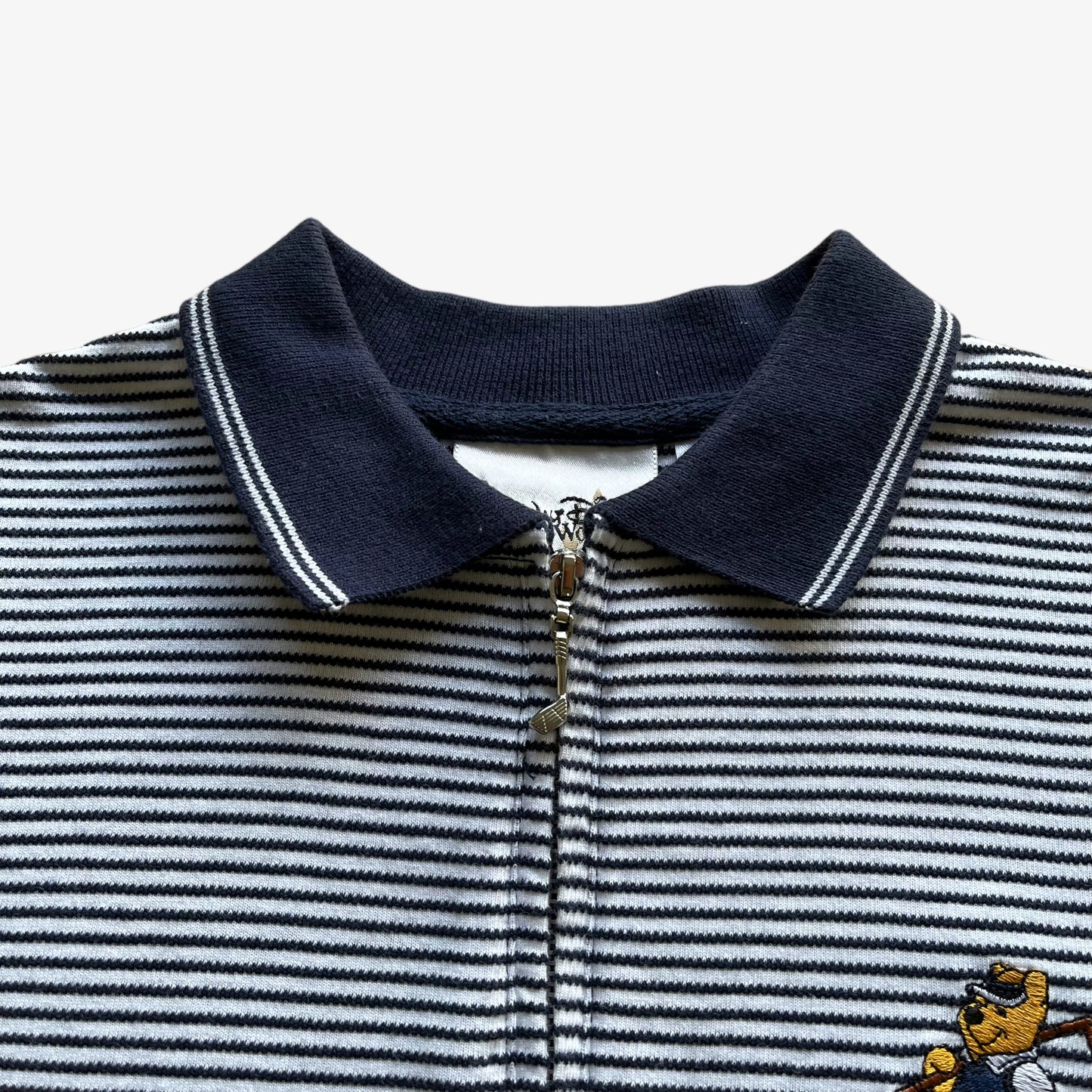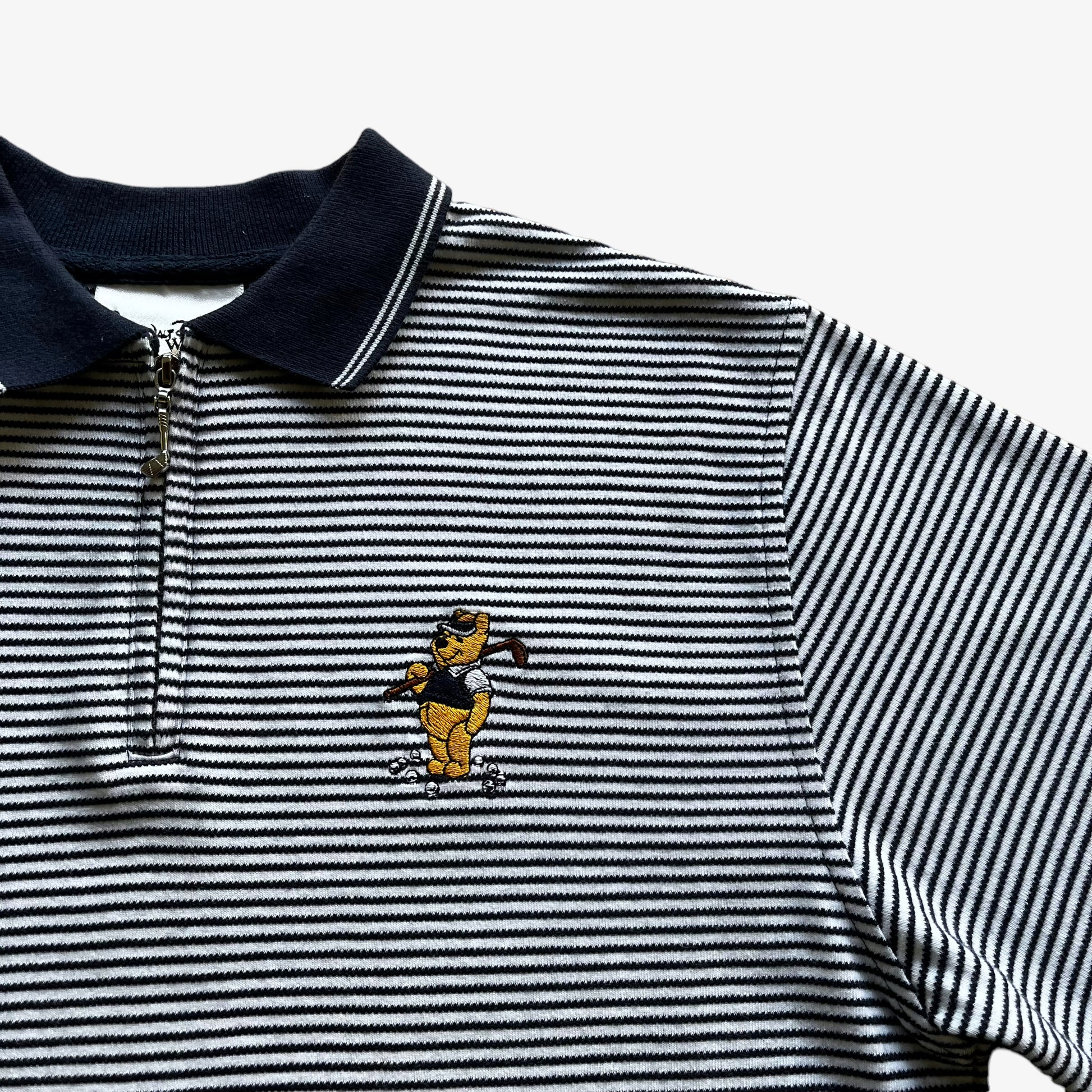 Vintage 90s Women's Disney Winnie The Pooh Golf Striped Quarter Zip Polo Shirt.