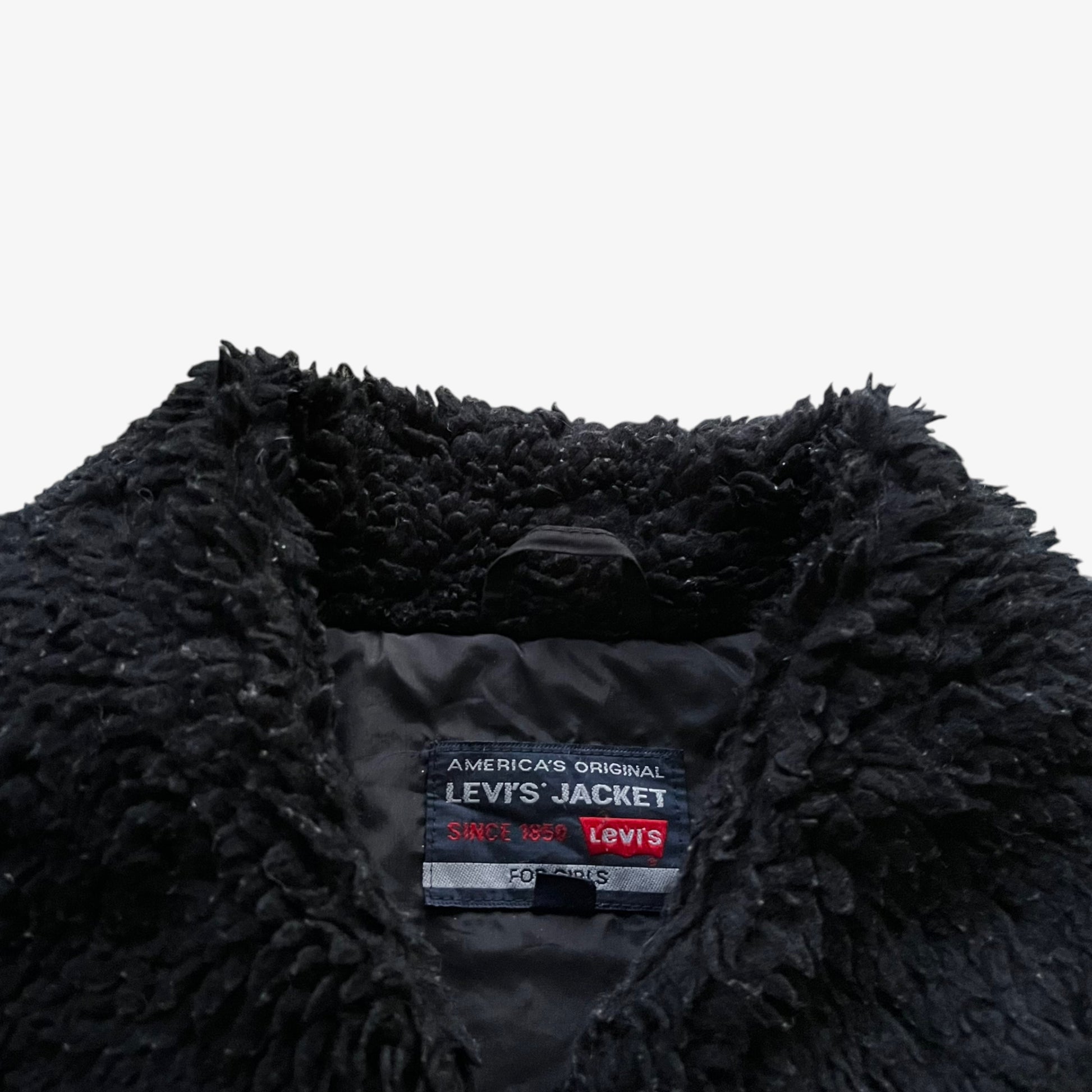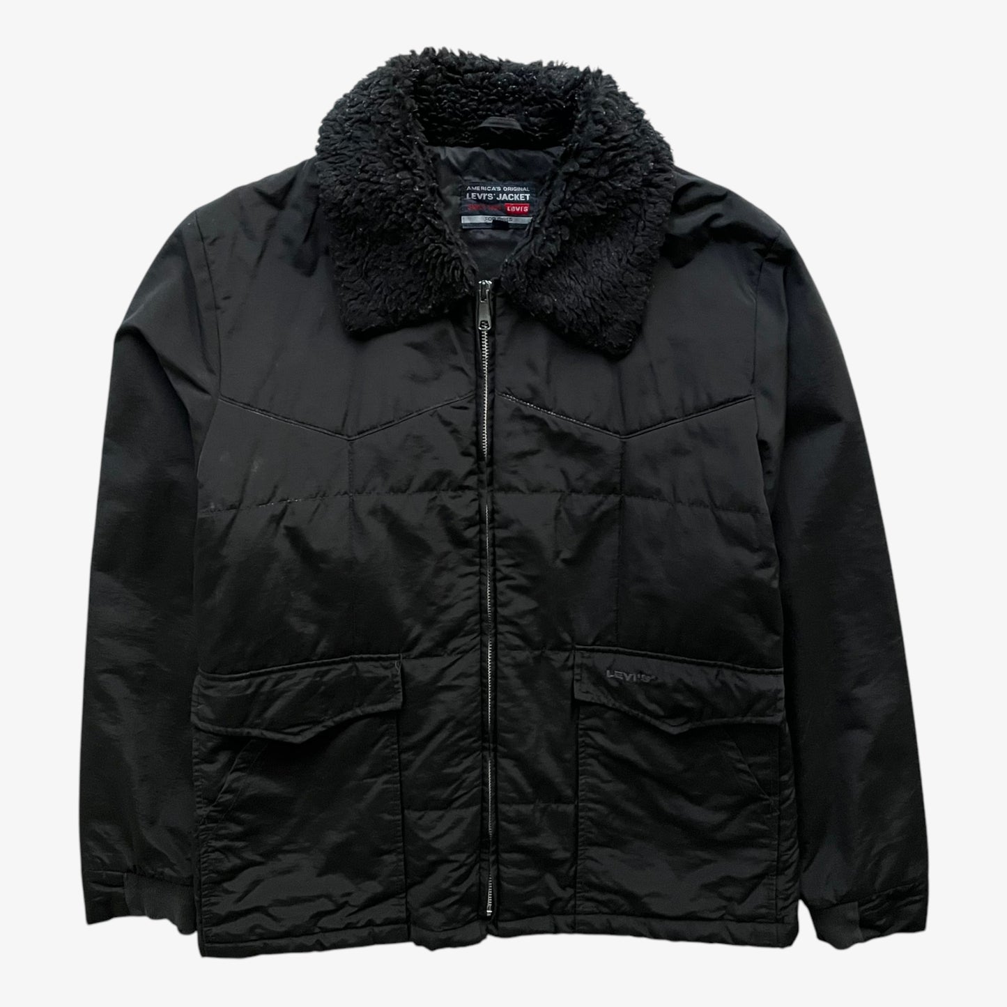 Vintage 90s Women's Levi's Black Pilot Jacket With Faux Fur Collar.