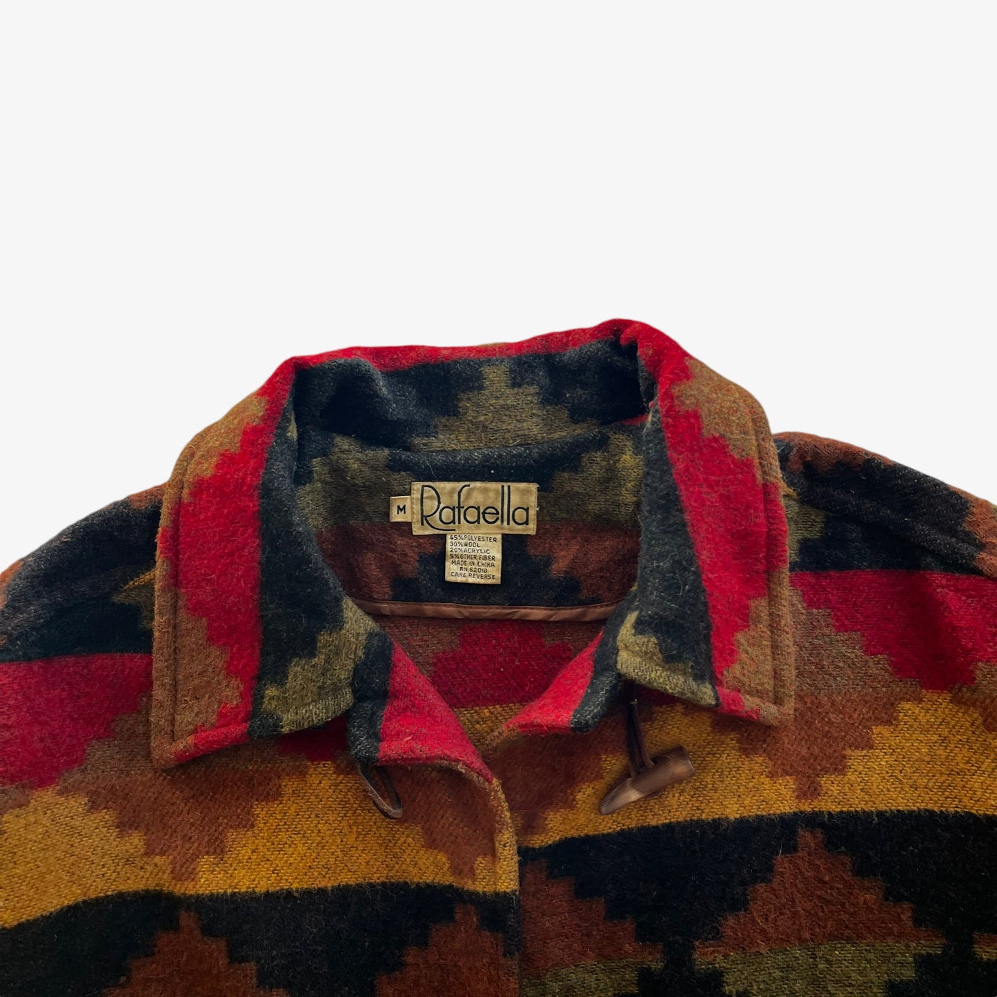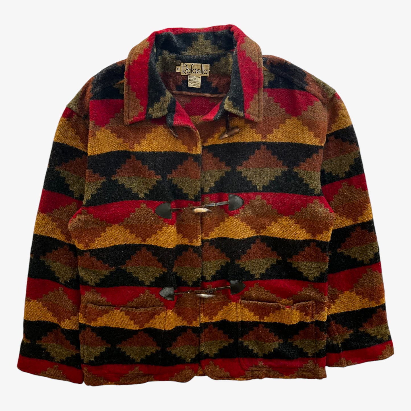 Vintage 90s Women's Rafaella Wool Blend Navajo Print Jacket With Toggle Fasteners.