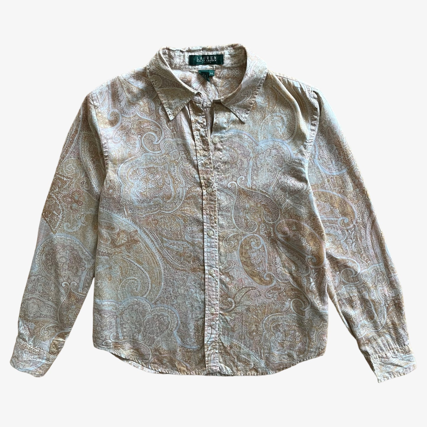 Vintage 90s Women's Ralph Lauren Paisley Print Long Sleeve Shirt.