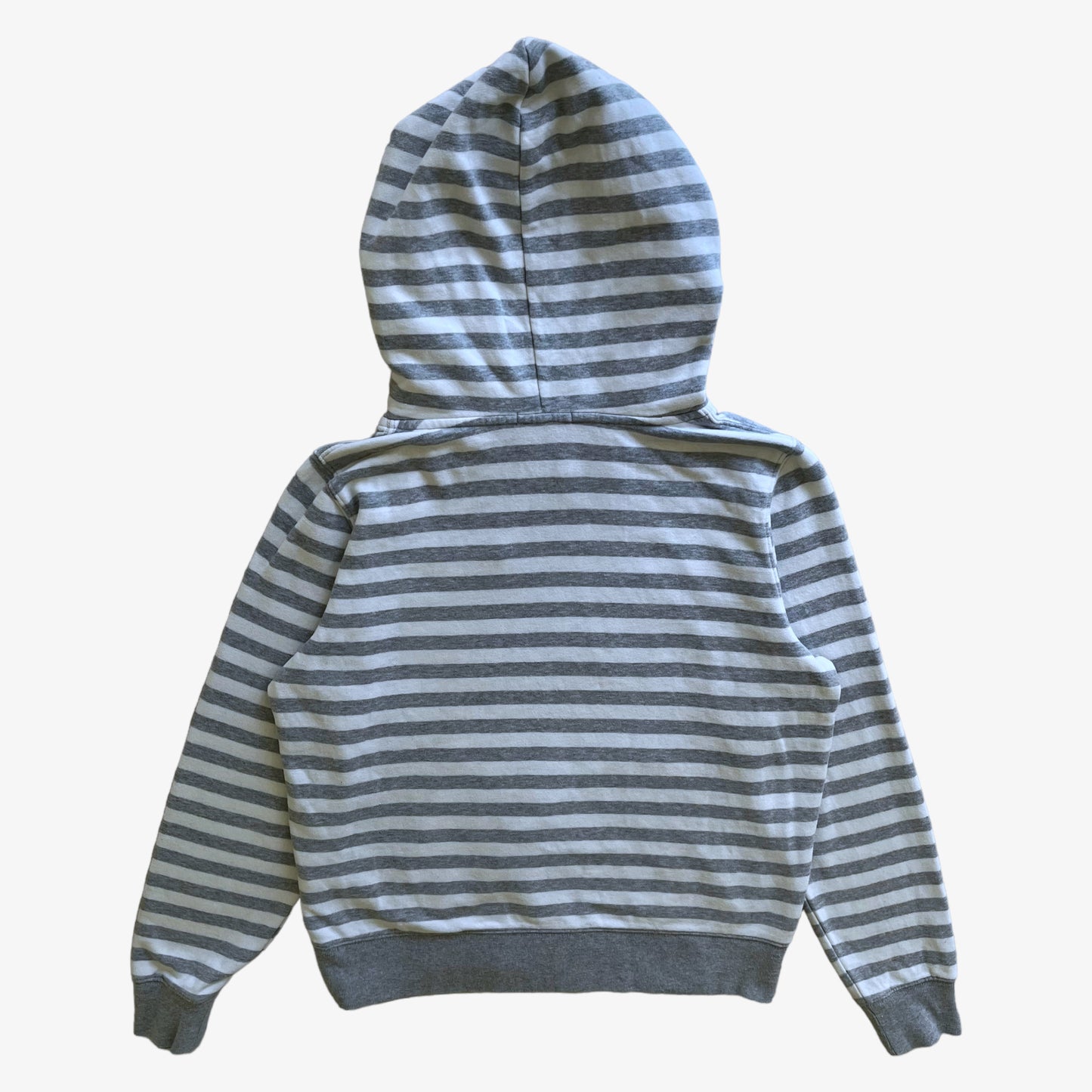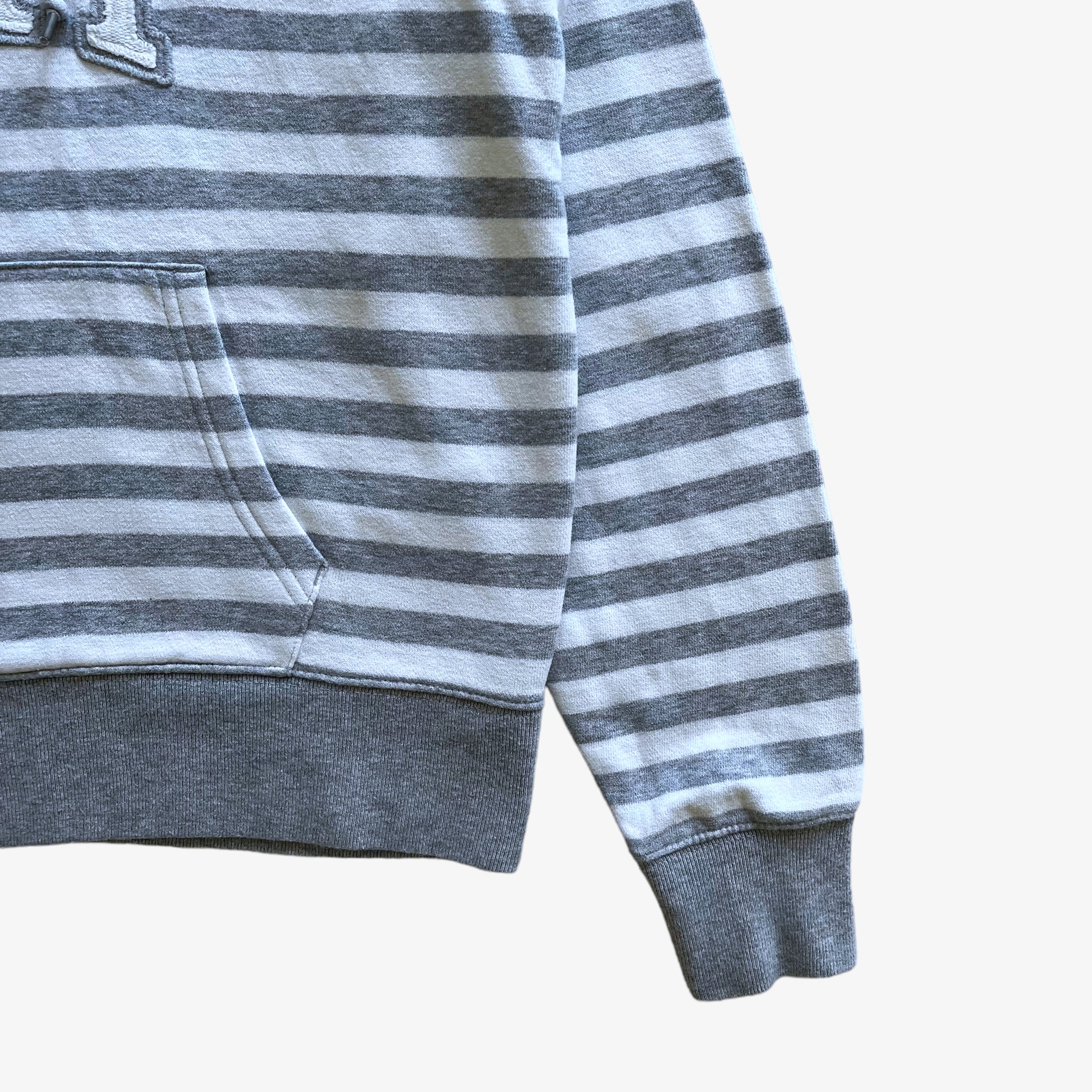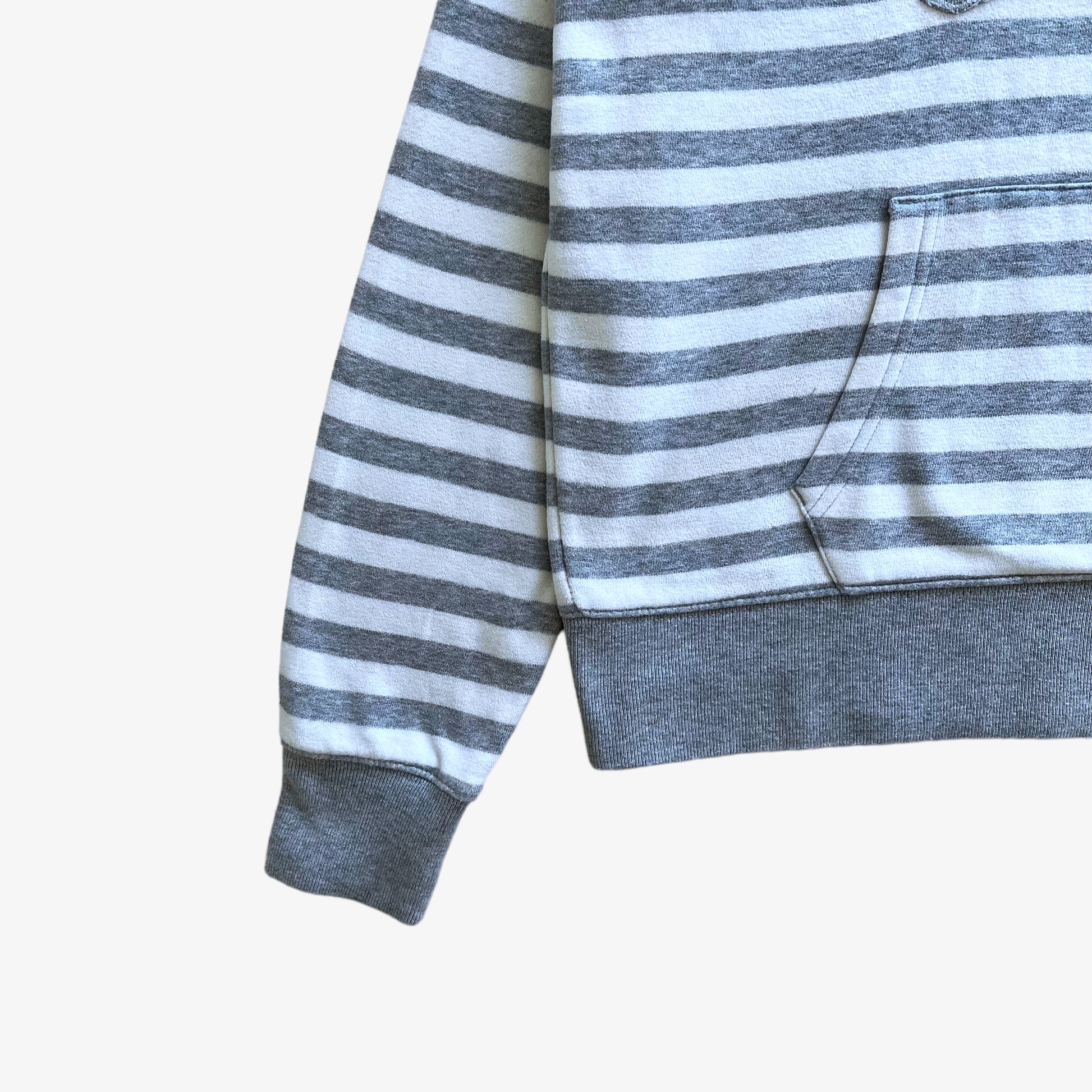 Vintage Y2K Women's GAP White And Grey Striped Spell Out Hoodie.