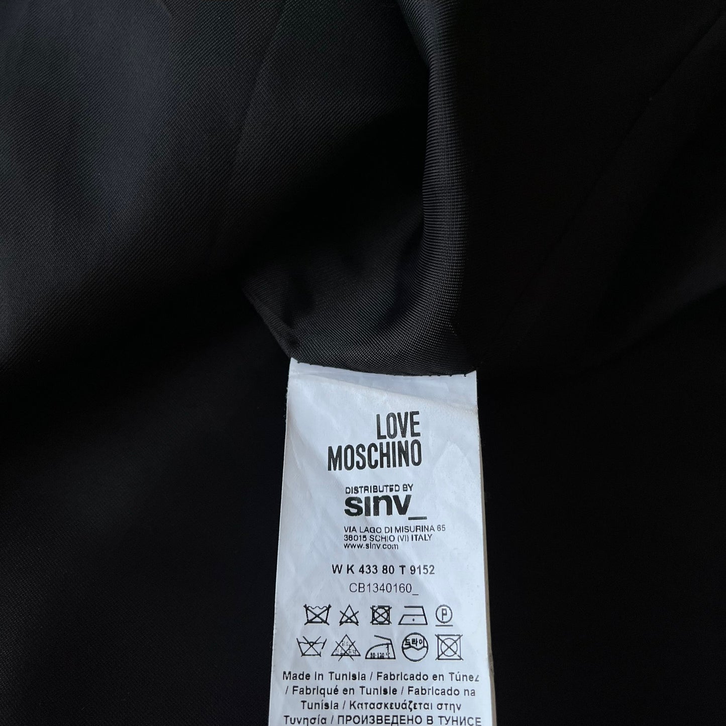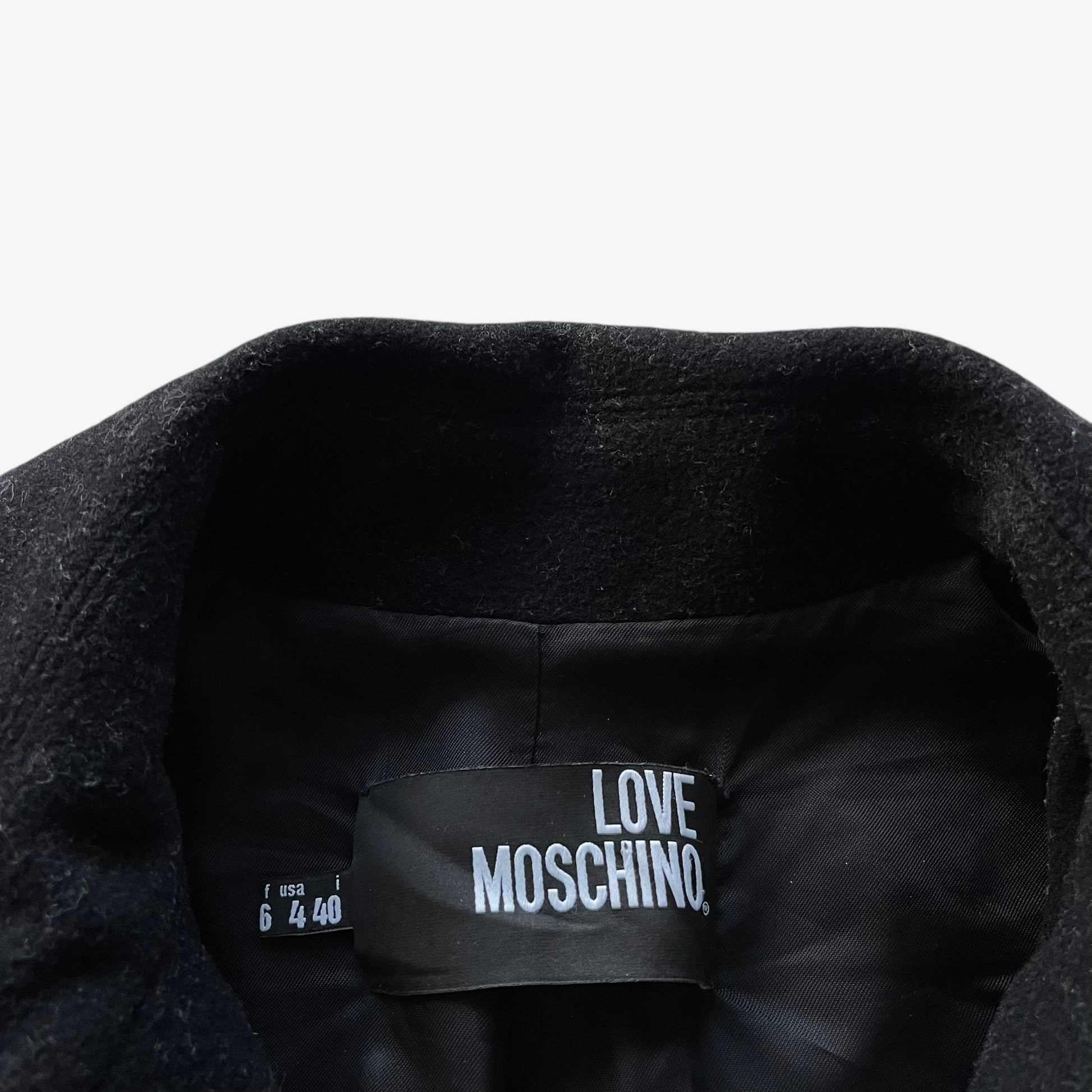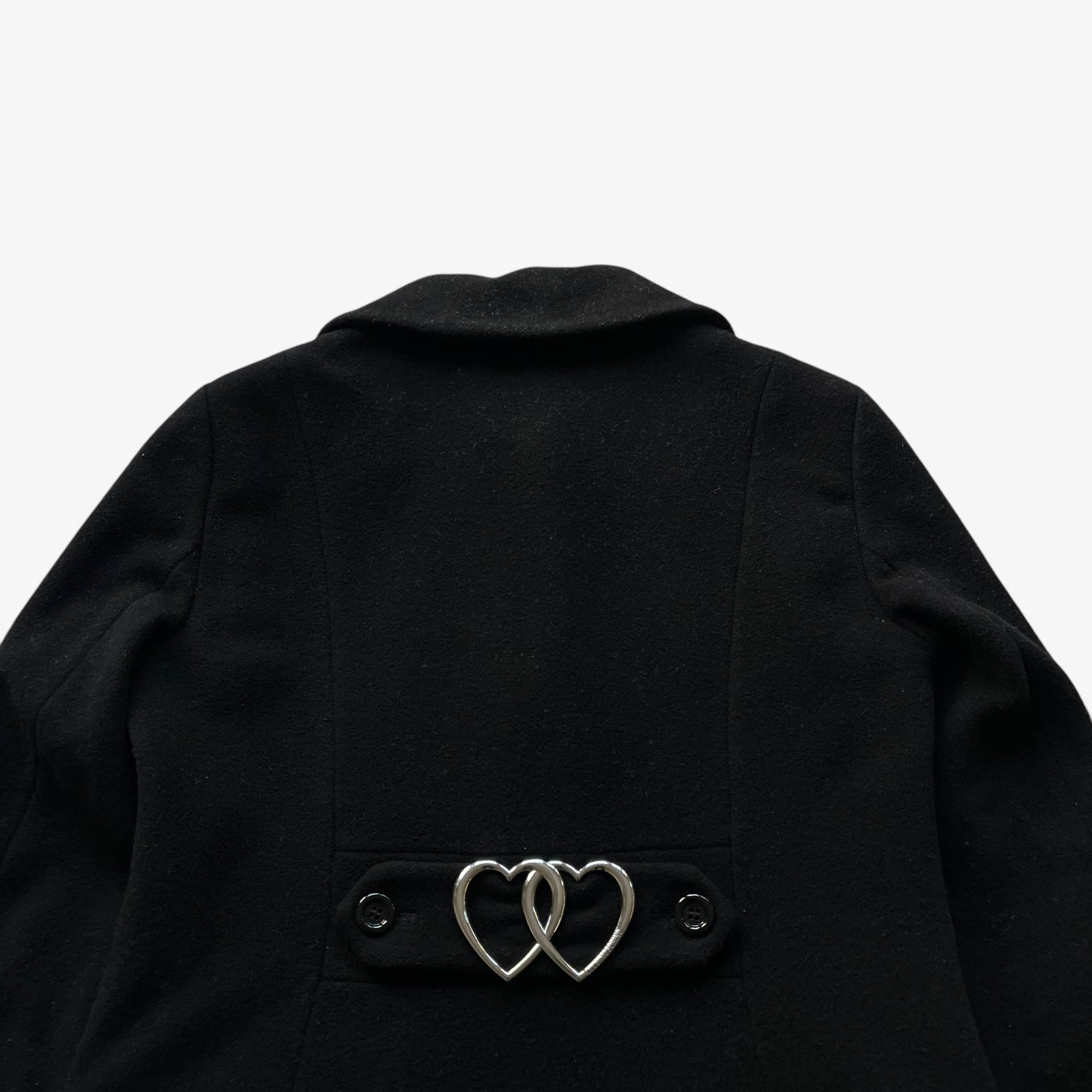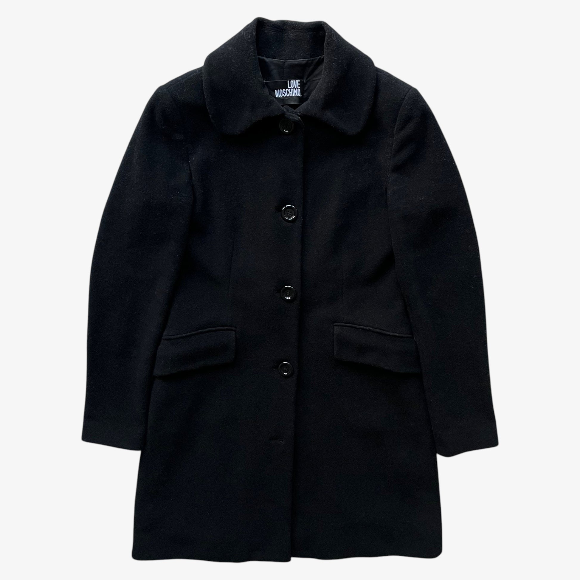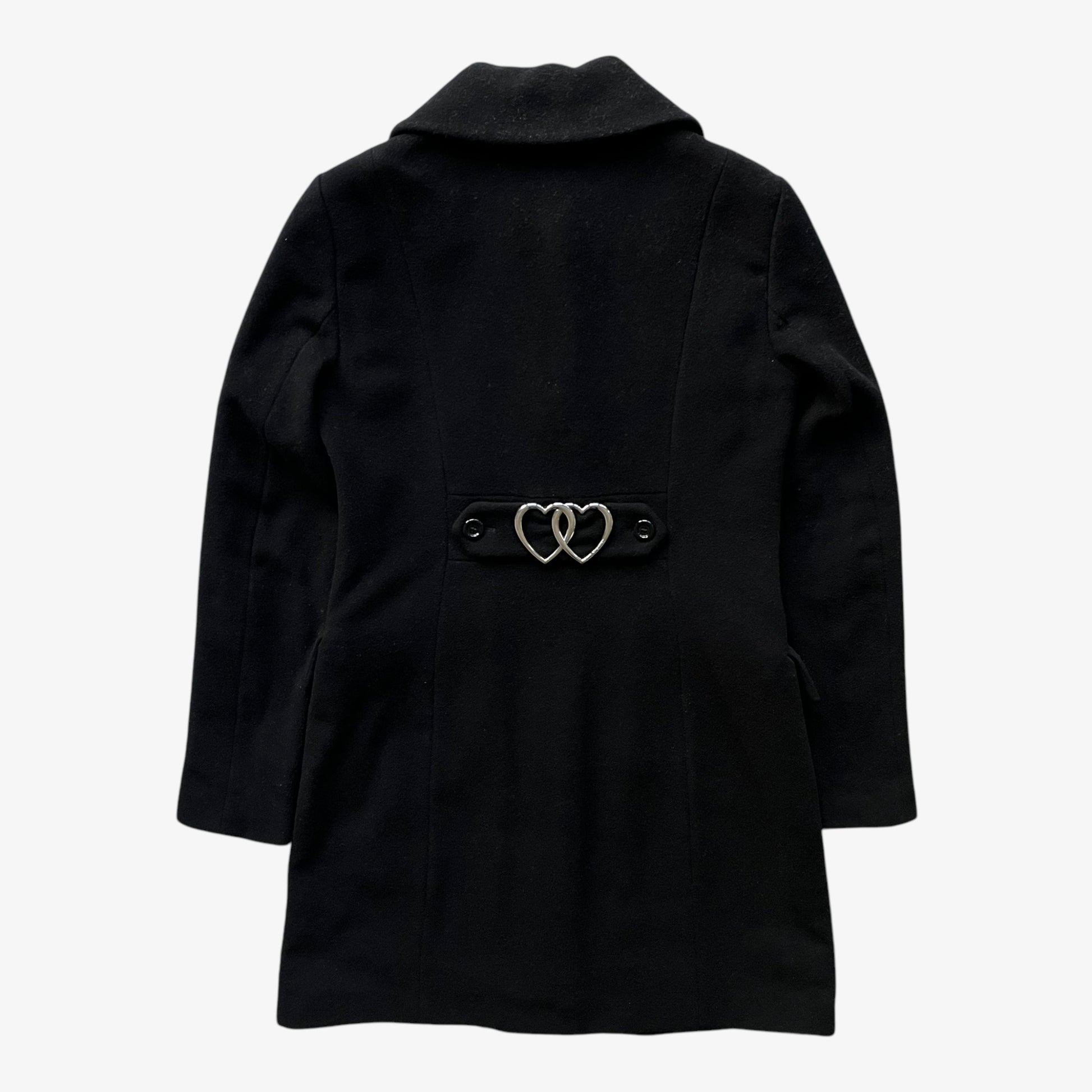 Vintage Y2K Women's Love Moschino Black Wool And Cashmere Blend Coat With Back Heart Strap.
